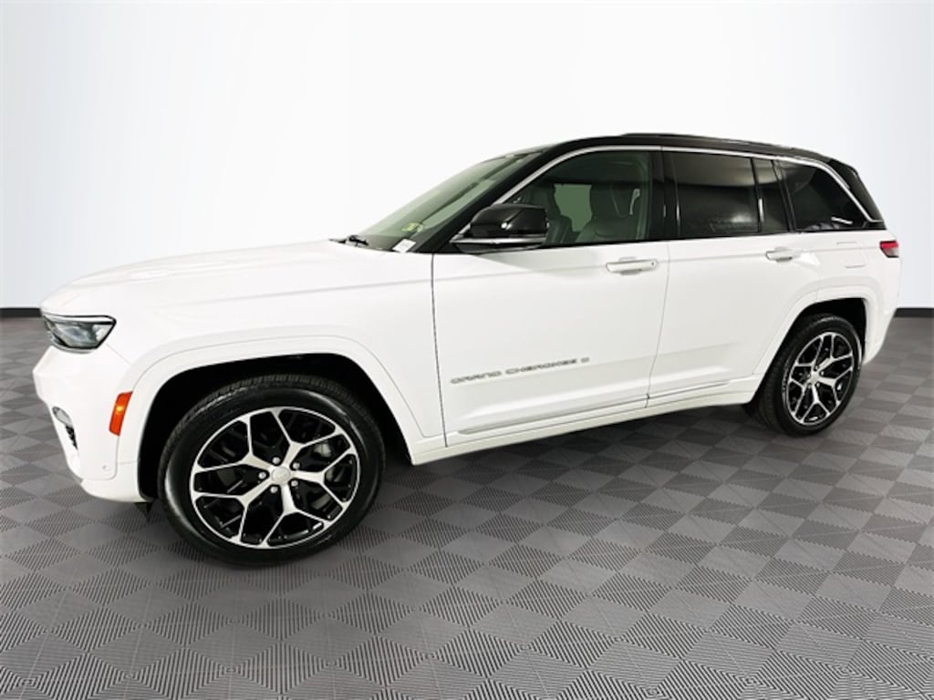 Grand Cherokee Summit, FCA US LLC Certified Pre-Owned Certified, 3.6L V6 24V VVT, 4WD, Bright White Clearcoat, Global Black Leather, 19 Speakers High Performance Audio, 2nd-Row Manual Window Shades, 950 Watt Amplifier, Active Noise Control System, Deluxe Headliner, Front Passenger Interactive Display, Luxury Tech Group V, Navigation System, Palermo Leather Door Trim, Palermo Leather Seats, Quick Order Package 23U Summit Reserve, Summit Reserve, Summit Reserve Badge, Ventilated Rear Seats, Wheels: 21" x 9" Machined Face/Painted Aluminum, Wireless Charging Pad, 10 Speakers, 3.45 Rear Axle Ratio, 4-Wheel Disc Brakes, ABS brakes, Adaptive suspension, Air Conditioning, Alloy wheels, AM/FM radio: SiriusXM with 360L, Anti-whiplash front head restraints, Audio memory, Auto High-beam Headlights, Auto-dimming door mirrors, Auto-dimming Rear-View mirror, Auto-leveling suspension, Automatic temperature control, Auxiliary Battery, Brake assist, Bumpers: body-color, Compass, Delay-off headlights, Driver door bin, Driver vanity mirror, Dual front impact airbags, Dual front side impact airbags, Electronic Stability Control, Emergency communication system, Four wheel independent suspension, Front anti-roll bar, Front Bucket Seats, Front Center Armrest w/Storage, Front dual zone A/C, Front fog lights, Front License Plate Bracket, Front reading lights, Fully automatic headlights, Garage door transmitter, Genuine wood dashboard insert, Genuine wood door panel insert, Heated door mirrors, Heated front seats, Heated rear seats, Heated steering wheel, Illuminated entry, Knee airbag, Leather steering wheel, Low tire pressure warning, Memory seat, Nappa Leather Seats, Normal Duty Suspension, Occupant sensing airbag, Outside temperature display, Overhead airbag, Overhead console, Panic alarm, Passenger door bin, Passenger vanity mirror, Power door mirrors, Power driver seat, Power Liftgate, Power moonroof, Power passenger seat, Power steering, Power windows, Radio data system, Radio: Uconnect 5 Nav w/10.1" Display, Rain sensing wipers, Rear air conditioning, Rear anti-roll bar, Rear dual zone A/C, Rear reading lights, Rear seat center armrest, Rear window defroster, Rear window wiper, Remote keyless entry, Security system, Speed control, Speed-Sensitive Wipers, Split folding rear seat, Spoiler, Steering wheel memory, Steering wheel mounted audio controls, Tachometer, Telescoping steering wh