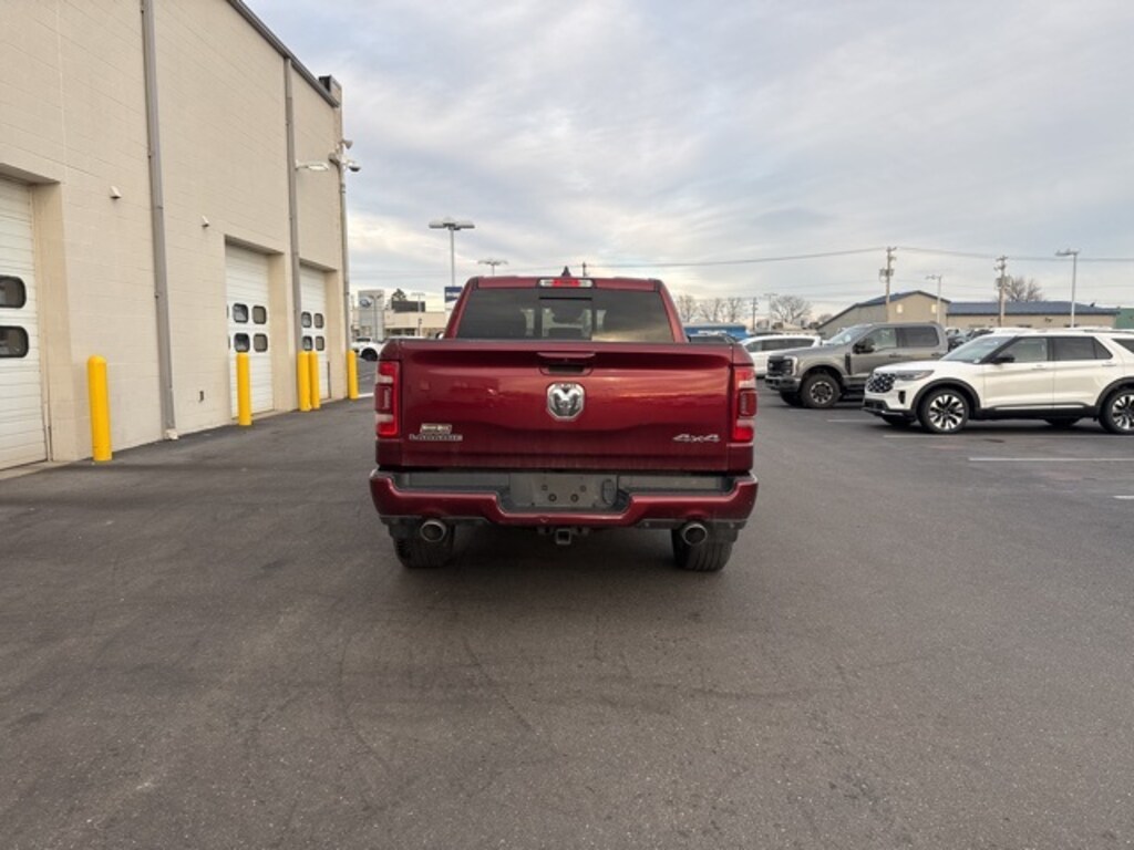 1500 Laramie, FCA US LLC Certified Pre-Owned Certified, 4D Crew Cab, HEMI 5.7L V8 Multi Displacement VVT, 4WD, Delmonico Red Pearlcoat, Black Leather, #1 Seat Foam Cushion, 10 Speakers, 2nd Row In Floor Storage Bins, 3 Rear Seat Head Restraints, 3.21 Rear Axle Ratio, 4 Way Front Headrests, 4-Wheel Disc Brakes, 48V Belt Starter Generator, 4G LTE Wi-Fi Hot Spot, 8.4" Touchscreen Display, ABS brakes, Adjustable pedals, Air Conditioning, All Plant-Installed Decals, Alloy wheels, AM/FM radio: SiriusXM, Apple CarPlay, Apple CarPlay/Android Auto, Audio memory, Auto High Beam Headlamp Control, Auto-dimming door mirrors, Auto-Dimming Exterior Driver Mirror, Auto-dimming Rear-View mirror, Automatic temperature control, Black Interior Accents, Blind Spot & Cross Path Detection, Body Color Door Handles, Body Color Exterior Mirrors, Body Color Front Bumper, Body Color Premium Power Mirrors, Body Color Rear Bumper w/Step Pads, Brake assist, Bucket Seats, Bumpers: chrome, Chrome Exterior Mirrors, Compass, Connectivity - US/Canada, Convex Wide-Angle Mirror Insert, Delay-off headlights, Delete LED Lamp - Floor Console Bin, Driver door bin, Driver Seat Memory, Driver vanity mirror, Dual front impact airbags, Dual front side impact airbags, Electronic Stability Control, Exterior Mirrors Courtesy Lamps, Exterior Mirrors w/Heating Element, Exterior Mirrors w/Memory, Exterior Mirrors w/Supplemental Signals, Foam Bottle Insert (Door Trim Panel), For Details, Visit DriveUconnect.com, Front anti-roll bar, Front Center Armrest w/Storage, Front dual zone A/C, Front fog lights, Front reading lights, Front Seat Back Map Pockets, Front wheel independent suspension, Full Length Upgraded Floor Console, Fully automatic headlights, Garage door transmitter, Global Telematics Box Module (TBM), Google Android Auto, GPS Antenna Input, Grille Surround 3 Body Color Tex 2 Black, Heated door mirrors, Heated Front Seats, Heated front seats, Heated Steering Wheel, Heated steering wheel, Illuminated entry, Integrated Center Stack Radio, Laramie Level I Equipment Group, Leather steering wheel, Leather Trim 40/20/40 Bench Seat, Leather Trimmed Bucket Seats, Low tire pressure warning, Memory seat, MOPAR Front & Rear Rubber Floor Mats, Occupant sensing airbag, Outside temperature display, Overhead airbag, Overhead console, Panic alarm, ParkSense Front/Rear Park Assist w/Stop, ParkView Rear Back-Up Camera, Passenger door bin, Passenger vanity mirror, Pedal memory,