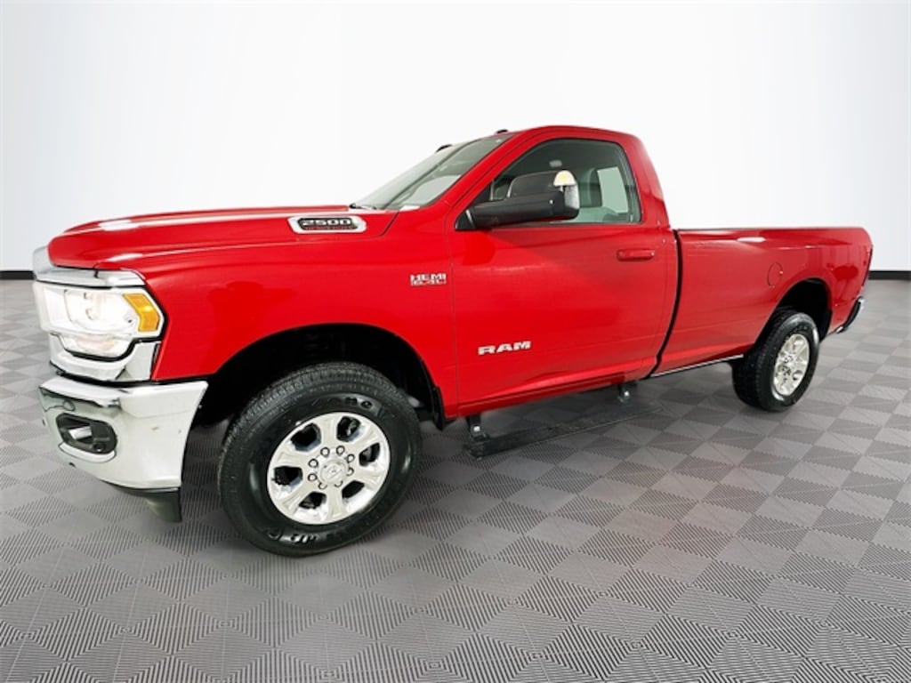 2500 Big Horn, FCA US LLC Certified Pre-Owned Certified, 2D Standard Cab, 6.4L V8, 4WD, Flame Red Clearcoat, Black Cloth, 4 Way Front Headrests, 40/20/40 Split Bench Seat, Auto-Dimming Rear-View Mirror, Center Hub, Center Stack Storage Drawer, Cloth 40/20/40 Premium Bench Seat, Dual Glove Boxes, Foam Bottle Insert (Door Trim Panel), Footwell Courtesy Lamp, Front Armrest w/Cupholders, Front Center Seat Cushion Storage, Front Fog Lamps, Glove Box Lamp, GPS Navigation, Heated Front Seats, Heated Seats & Wheel Group, Heated Steering Wheel, Leather Wrapped Steering Wheel, Level A Equipment Group, Locking Lower Glove Box, Manual Adjust 4-Way Front Passenger Seat, Power 2-Way Driver Lumbar Adjust, Power Adjust 8-Way Driver Seat, Power Adjustable Pedals, Protection Group, Quick Order Package 2GZ Big Horn, Rear Dome w/On/Off Switch Lamp, Rear Sliding Window, Steering Wheel Mounted Audio Controls, Sun Visors w/Illuminated Vanity Mirrors, Universal Garage Door Opener, Wheels: 18" x 8.0" Polished Aluminum, 115V Auxiliary Front Power Outlet, 3.73 Axle Ratio, 4-Wheel Disc Brakes, 400W Inverter, 4G LTE Wi-Fi Hot Spot, 6 Speakers, 8.4" Touchscreen Display, ABS brakes, Air Cond ATC w/Dual Zone Control, Air Conditioning, Alexa Built-In, All R1 High Radios, All Radio Equipped Vehicles, AM/FM radio: SiriusXM, Anti-Spin Differential Rear Axle, Apple CarPlay, Apple CarPlay/Android Auto, Brake assist, Bumpers: chrome, Cloth 40/20/40 Bench Seat, Cluster 7.0" TFT Color Display, Compass, Connected Travel & Traffic Services, Connectivity - US/Canada, Delay-off headlights, Disassociated Touchscreen Display, Driver door bin, Dual front impact airbags, Dual front side impact airbags, Electronic Stability Control, Electronically Controlled Throttle, Exterior 115V AC Outlet, For Details, Visit DriveUconnect.com, For More Info, Call 800-643-2112, Front anti-roll bar, Front Center Armrest w/Storage, Front reading lights, Fully automatic headlights, Global Telematics Box Module (TBM), Google Android Auto, GPS Antenna Input, HD Radio, Heated door mirrors, Illuminated entry, Integrated Center Stack Radio, Integrated Voice Command w/Bluetooth, Low tire pressure warning, Manual Adjust 4-Way Driver Seat, Occupant sensing airbag, Off-Road Info Pages, Outside temperature display, Overhead airbag, Overhead console, Panic alarm, ParkSense Front/Rear Park Assist System, ParkView Rear Back-Up Camera, Passenger door bin, Passenger vanity mirror, Power door mirrors, Power steer