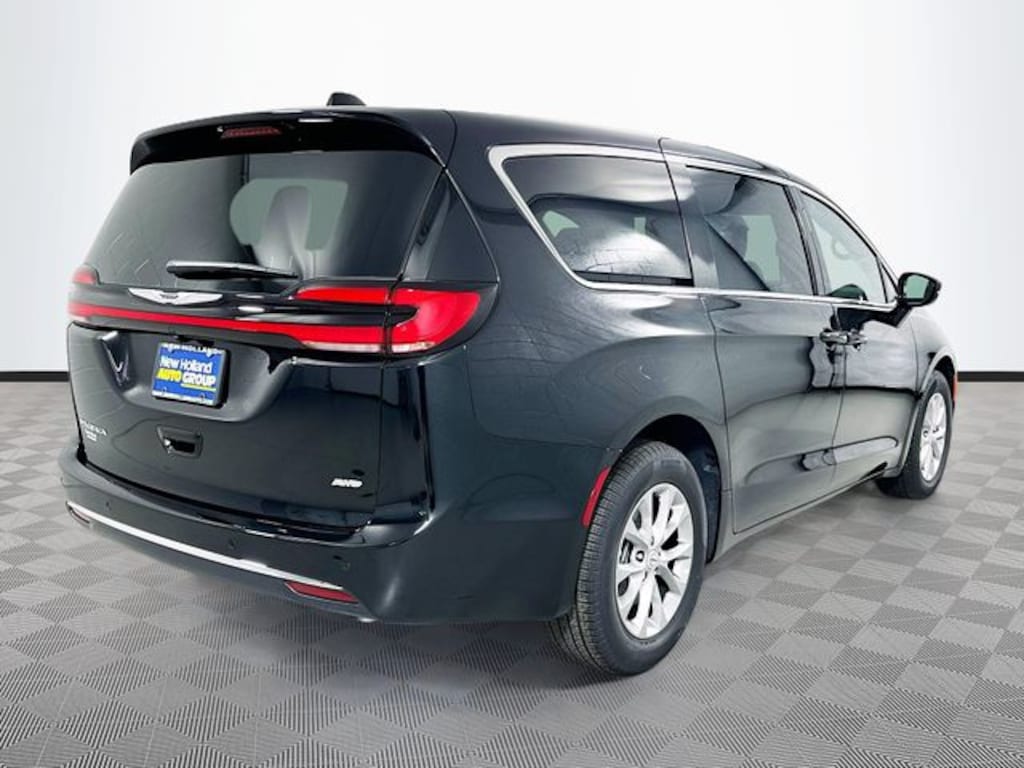 Diamond Black Crystal Pearlcoat 2026 Chrysler Pacifica Select AWD 3.6L V6 24V VVT 4D Passenger Van 9-Speed 948TE Automatic 10.1" Touchscreen Display, 18" x 7.5" Painted Aluminum Wheels, 3.73 Axle Ratio, 360 Surround View Camera System, 3rd row seats: split-bench, 4-Wheel Disc Brakes, 4G LTE Wi-Fi Hot Spot, 6 Speakers, ABS brakes, Air Conditioning, Alloy wheels, AM/FM radio: SiriusXM, Apple CarPlay, Apple CarPlay/Android Auto, Auto-dimming Rear-View mirror, Automatic temperature control, AWD Suspension, Black Seats, Brake assist, Bumpers: body-color, Caprice Leatherette Bucket Seats, Compass, Connectivity - US/Canada, Delay-off headlights, Disassociated Touchscreen Display, Driver door bin, Driver vanity mirror, Driver's Seat Mounted Armrest, Dual front impact airbags, Dual front side impact airbags, Electronic Stability Control, Emergency communication system: Chrysler Connect, For Details, Visit DriveUconnect.com, Four wheel independent suspension, Front anti-roll bar, Front Bucket Seats, Front dual zone A/C, Front fog lights, Front reading lights, Fully automatic headlights, Garage door transmitter, Google Android Auto, GPS Antenna Input, Heated door mirrors, Heated front seats, Heated steering wheel, Illuminated entry, Integrated Active Noise Cancellation, Integrated Center Stack Radio, Knee airbag, Low tire pressure warning, Memory seat, Occupant sensing airbag, Outside temperature display, Overhead airbag, Overhead console, Panic alarm, ParkSense Front/Rear Park Assist with Stop, ParkView Rear Back-Up Camera, Passenger door bin, Passenger seat mounted armrest, Passenger vanity mirror, Power door mirrors, Power driver seat, Power Liftgate, Power steering, Power windows, Quick Order Package 27L, Radio data system, Radio: Uconnect 5 with 10.1" Display, Rain sensing wipers, Rear air conditioning, Rear reading lights, Rear window defroster, Rear window wiper, Reclining 3rd row seat, Remote keyless entry, Safety Sphere, Security system, Speed control, Split folding rear seat, Spoiler, Steering wheel mounted audio controls, Tachometer, Telescoping steering wheel, Tilt steering wheel, Traction control, Trip computer, Turn signal indicator mirrors, USB Host Flip, Variably intermittent wipers, Voltmeter.