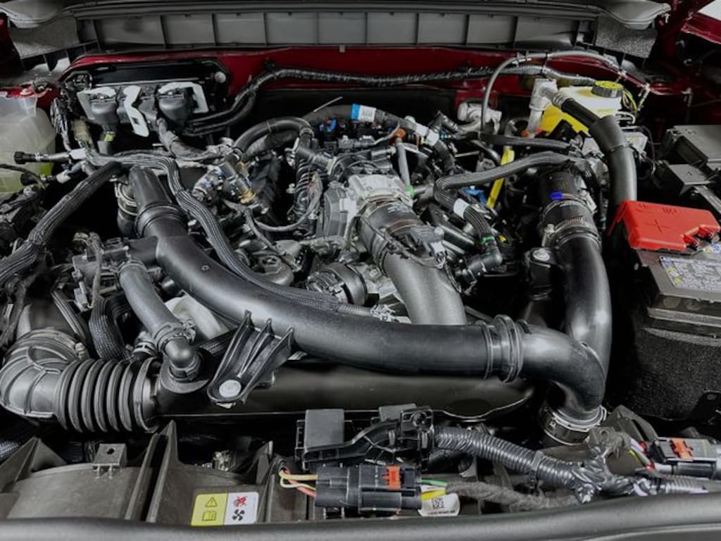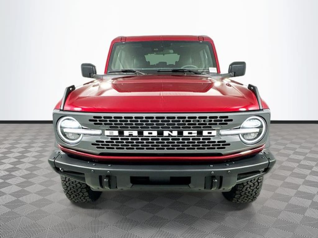 Ruby Red Metallic Tinted Clearcoat 2025 Ford Bronco Badlands 4WD 2.7L EcoBoost V6 4D Sport Utility 10-Speed Automatic 2-Door Intelligent Access w/Lock/Unlock, Ambient Footwell Lighting, Connected Navigation, Dr & Pass Illuminated Sliding Visor Vanity Mirrors, Dual Smart Charging USB Ports, Dual-Zone Electronic Automatic Temperature Control, Equipment Group 332A Mid Package, Front Row Heated Seats, Power Outlet - Back Side of Center Floor Console, Rear Parking Sensors, 4-Wheel Disc Brakes, 4.7 Axle Ratio, 7 Speakers, ABS brakes, Air Conditioning, Alloy wheels, AM/FM radio: SiriusXM with 360L, AM/FM Stereo, Auto High-Beam Headlamps, Auto High-beam Headlights, Auto-dimming Rear-View mirror, BLIS Blind Spot Information System, Brake assist, Carbonized Gray Molded-In-Color Hard Top, Compass, Delay-off headlights, Door Storage Bags, Driver door bin, Driver vanity mirror, Dual front impact airbags, Dual front side impact airbags, Electronic Stability Control, Emergency communication system: 911 Assist, Exterior Parking Camera Rear, Ford Performance Heavy-Duty Modular Front Bumper, Front anti-roll bar, Front Bucket Seats, Front Center Armrest, Front fog lights, Front reading lights, Front wheel independent suspension, Fully automatic headlights, Heated door mirrors, Heated front seats, Heated steering wheel, Illuminated entry, Integrated roll-over protection, Internet access capable: FordPass Connect, Lane-Keeping System, Leather Shift Knob, Leather-Trimmed/Vinyl Bucket Seats, Low tire pressure warning, Marine Grade Vinyl Heated Bucket Seats, Occupant sensing airbag, Outside temperature display, Overhead airbag, Overhead console, Panic alarm, Passenger door bin, Passenger vanity mirror, Power door mirrors, Power steering, Power windows, Pre-Collision Assist w/Automatic Emergency Braking, Radio data system, Rear-View Camera, Rear-Window Defroster & Washer, Remote keyless entry, Security system, SiriusXM w/360L, Speed control, Split folding rear seat, Steering wheel mounted audio controls, SYNC 4, Tachometer, Telescoping steering wheel, Tilt steering wheel, Traction control, Trip computer, Upgraded Carpet Floor Mats, Variably intermittent wipers, Voltmeter, Wheels: 17" Carbonized Gray-Painted Aluminum, 2-Door Intelligent Access w/Lock/Unlock, Ambient Footwell Lighting, Connected Navigation, Dr & Pass Illuminated Sliding Visor Vanity Mirrors, Dual Smart Charging USB Ports, Dual-Zone Electronic Automatic Temperature Control, Equipment Group 332A Mid Package, Front Row Heated Seats, Power Outlet - Back Side of Center Floor Console, Rear Parking Sensors.