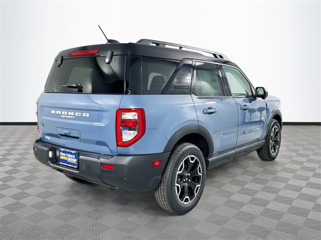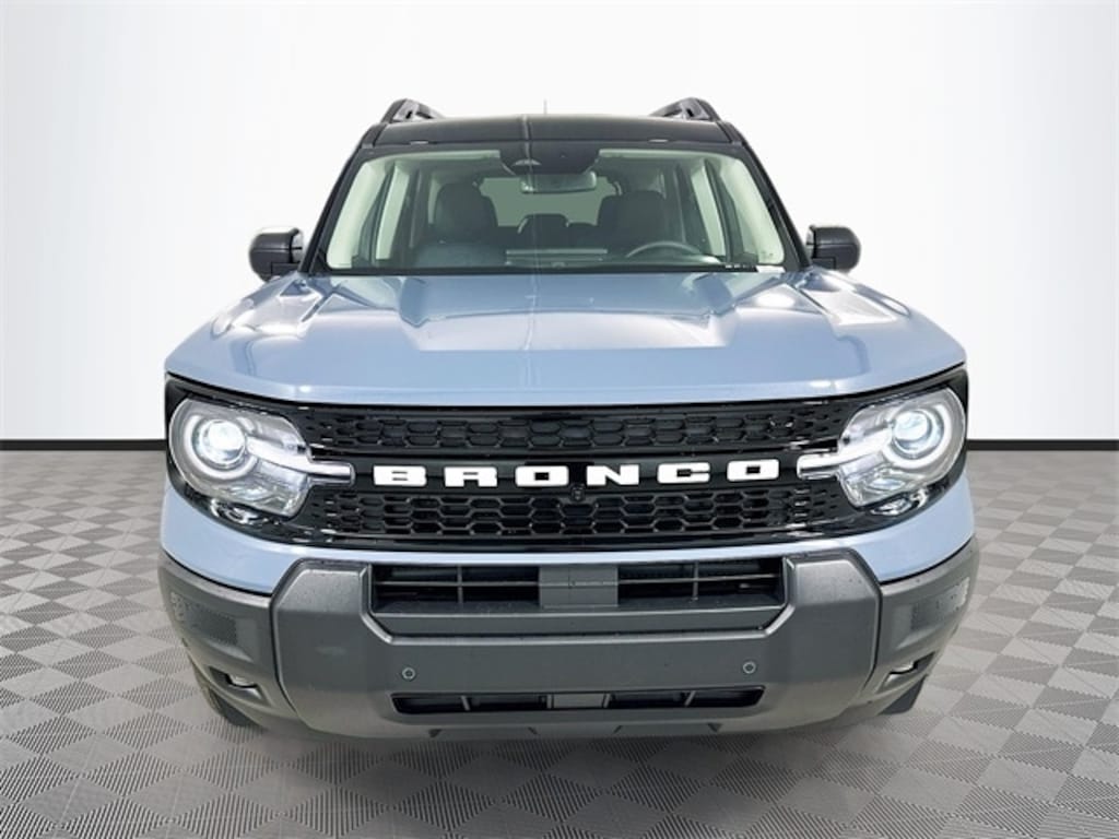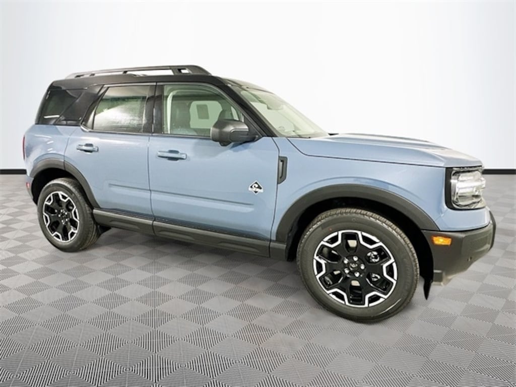 Azure 2025 Ford Bronco Sport Outer Banks 4WD 1.5L EcoBoost 4D Sport Utility 8-Speed Automatic 360-Degree Camera w/Trail & Split View, 4-Wheel Disc Brakes, 6 Speakers, ABS brakes, Air Conditioning, Alloy wheels, AM/FM radio: SiriusXM, AM/FM Stereo, Auto High-beam Headlights, Auto-dimming Rear-View mirror, Automatic temperature control, B&O Sound System by Bang & Olufsen, Brake assist, Cargo Mat, Compass, Connected Navigation, Delay-off headlights, Driver door bin, Driver vanity mirror, Dual front impact airbags, Dual front side impact airbags, Electronic Stability Control, Emergency communication system: SYNC 4 911 Assist, Equipment Group 300A, Four wheel independent suspension, Front & Rear Floor Liners w/o Carpet Mats, Front anti-roll bar, Front Bucket Seats, Front Center Armrest, Front Driver/Passenger Seat Back Map Pockets, Front dual zone A/C, Front fog lights, Front Parking Sensors, Front reading lights, Fully automatic headlights, Garage door transmitter, HD Radio, Heated door mirrors, Heated front seats, Heated steering wheel, Illuminated entry, Keyless Entry Keypad (DIO), Knee airbag, Low tire pressure warning, Memory seat, Occupant sensing airbag, Outer Banks Tech Package+, Outside temperature display, Overhead airbag, Overhead console, Panic alarm, Passenger door bin, Passenger vanity mirror, Power door mirrors, Power driver seat, Power passenger seat, Power steering, Power windows, Premium Trimmed Front Bucket Seats w/Ebony/Roast, Radio data system, Rain sensing wipers, Rear anti-roll bar, Rear Parking Sensors, Rear reading lights, Rear seat center armrest, Rear window defroster, Rear window wiper, Remote keyless entry, Reverse Brake Assist, Security system, SiriusXM, Speed control, Speed-sensing steering, Speed-Sensitive Wipers, Split folding rear seat, Steering wheel mounted audio controls, SYNC 4 w/Enhanced Voice Recognition, Tachometer, Telescoping steering wheel, Tilt steering wheel, Traction control, Trip computer, Variably intermittent wipers, Wheels: 18" Ebony Black-Painted Aluminum.
