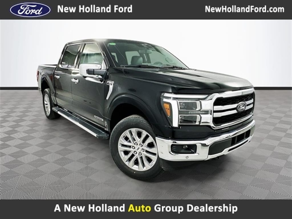Agate Black Metallic 2025 Ford F-150 Lariat 4WD 3.5L PowerBoost Full-Hybrid V6 4D SuperCrew 10-Speed Automatic 3.5L PowerBoost Full-Hybrid V6, 4WD, 6" Extended Running Boards, Bed Utility Package, LED Box Lighting, Navigation system: Connected Navigation, Power Tailgate, Pro Access Tailgate, Twin Panel Moonroof, 3.31 Axle Ratio, 4-Wheel Disc Brakes, 8 Speakers, ABS brakes, ActiveX Trimmed Bucket Seats, Adjustable pedals, Air Conditioning, Alloy wheels, AM/FM radio: SiriusXM with 360L, Auto High-beam Headlights, Auto-dimming door mirrors, Auto-dimming Rear-View mirror, Automatic temperature control, Brake assist, Bumpers: chrome, Chrome wheels, Compass, Delay-off headlights, Driver door bin, Driver vanity mirror, Dual front impact airbags, Dual front side impact airbags, Electronic Locking w/3.73 Axle Ratio, Electronic Stability Control, Emergency communication system: SYNC 4 911 Assist, Front anti-roll bar, Front Bucket Seats, Front dual zone A/C, Front fog lights, Front License Plate Bracket, Front reading lights, Front wheel independent suspension, Fully automatic headlights, FX4 Off-Road Package, Garage door transmitter, Heated door mirrors, Heated front seats, Heated steering wheel, Hill Descent Control, Illuminated entry, Low tire pressure warning, Memory seat, Monotube Rear Shocks, Occupant sensing airbag, Off-Road Tuned Front Shock Absorbers, Outside temperature display, Overhead airbag, Overhead console, Panic alarm, Passenger door bin, Passenger vanity mirror, Pedal memory, Power door mirrors, Power driver seat, Power passenger seat, Power steering, Power windows, Radio data system, Radio: B&O Sound System by Bang & Olufsen, Rain sensing wipers, Rear reading lights, Rear step bumper, Rear window defroster, Remote keyless entry, Rock Crawl Mode, Security system, Speed control, Split folding rear seat, Steering wheel mounted audio controls, SYNC 4 w/Enhanced Voice Recognition, Tachometer, Telescoping steering wheel, Tilt steering wheel, Tow/Haul Package, Traction control, Trip computer, Turn signal indicator mirrors, Variably intermittent wipers, Ventilated front seats, Voltmeter, Wheel Well Liner, Wheels: 20" Chrome-Like PVD, 3.5L PowerBoost Full-Hybrid V6, 4WD, 6" Extended Running Boards, Bed Utility Package, LED Box Lighting, Navigation system: Connected Navigation, Power Tailgate, Pro Access Tailgate, Twin Panel Moonroof.