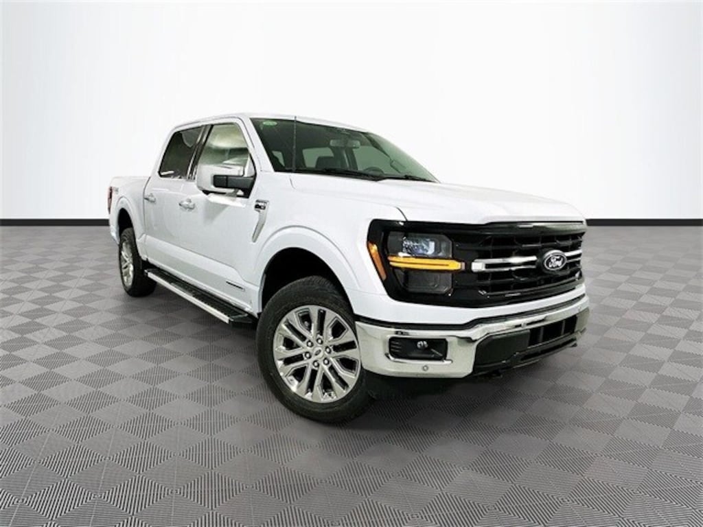 Space White Metallic 2025 Ford F-150 XLT 4WD 3.5L PowerBoost Full-Hybrid V6 4D SuperCrew 10-Speed Automatic 3.5L PowerBoost Full-Hybrid V6, 4WD, 3.31 Axle Ratio, 4 Pickup Box Tie-Down Plates, 4-Wheel Disc Brakes, 6 Speakers, ABS brakes, Air Conditioning, Alloy wheels, AM/FM radio: SiriusXM with 360L, Auto High-beam Headlights, Bed Utility Package, Black Tailgate Decal, Brake assist, Bumpers: chrome, Chrome wheels, Cloth 40/20/40 Front Seat, Cloth 40/Console/40 Front Seats, Compass, Console Worksurface, Delay-off headlights, Driver door bin, Driver vanity mirror, Dual front impact airbags, Dual front side impact airbags, Electronic Stability Control, Emergency communication system: SYNC 4 911 Assist, Equipment Group 302A Mid, Front anti-roll bar, Front Center Armrest, Front fog lights, Front License Plate Bracket, Front reading lights, Front wheel independent suspension, Fully automatic headlights, FX4 Off-Road Package, Heated door mirrors, Illuminated entry, LED Box Lighting, Low tire pressure warning, Mobile Office Package, Occupant sensing airbag, Outside temperature display, Overhead airbag, Overhead console, Panic alarm, Partitioned Lockable Rear Storage, Passenger door bin, Passenger vanity mirror, Power door mirrors, Power steering, Power windows, Radio data system, Radio: AM/FM Stereo w/SiriusXM 360L, Rear Parking Sensors, Rear reading lights, Rear step bumper, Rear window defroster, Remote keyless entry, SecuriCode Keyless-Entry Keypad, Security system, Speed control, Split folding rear seat, Steering wheel mounted audio controls, SYNC 4 w/Enhanced Voice Recognition, Tachometer, Tailgate Step w/Tailgate Work Surface, Telescoping steering wheel, Tilt steering wheel, Tow/Haul Package, Traction control, Trip computer, Variably intermittent wipers, Voltmeter, Wheel Well Liner, Wheels: 18" Chrome-Like PVD, Wheels: 20" Chrome-Like PVD, 3.5L PowerBoost Full-Hybrid V6, 4WD.
