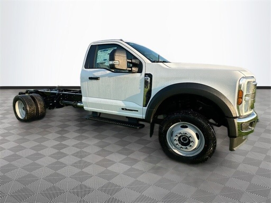 Oxford White 2025 Ford F-550SD XL DRW 4WD Power Stroke 6.7L V8 DI 32V OHV Turbodiesel 10-Speed Automatic 4WD, 120V/400W Outlet, 190 Amp Alternator, 350 Amp Dual Alternators, 4 Speakers, 4-Wheel Disc Brakes, 6-Ton Hydraulic Jack, ABS brakes, Air Conditioning, AM/FM radio, AM/FM Stereo w/MP3 Player, Brake assist, Compass, Delay-off headlights, Dual 68 AH/65 AGM Battery, Dual front impact airbags, Dual front side impact airbags, Dual rear wheels, Emergency communication system: SYNC 4 911 Assist, Engine Block Heater, Front anti-roll bar, Front Center Armrest w/Storage, Front License Plate Bracket, Front reading lights, Fully automatic headlights, GVWR: 18,000 lbs Payload Package, GVWR: 19,550 lb Payload Plus Upgrade Package 2, HD Vinyl 40/20/40 Split Bench Seat, Heated door mirrors, High Capacity Trailer Tow Package, Illuminated entry, Order Code 660A, Outside temperature display, Overhead airbag, Overhead console, Panic alarm, Passenger cancellable airbag, Passenger vanity mirror, Platform Running Boards, Power door mirrors, Power steering, Power windows, Rear anti-roll bar, Rear View Camera & Prep Kit, Remote keyless entry, Security system, Snow Plow Prep Package, Speed control, Steering wheel mounted audio controls, SYNC 4 Communication & Entertainment System, Tachometer, Telescoping steering wheel, Tilt steering wheel, Traction control, Trailer Brake Controller, Trip computer, Turn signal indicator mirrors, Variably intermittent wipers, Wheels: 19.5" x 6" Argent Painted Steel, XL Chrome Package, 4WD.
