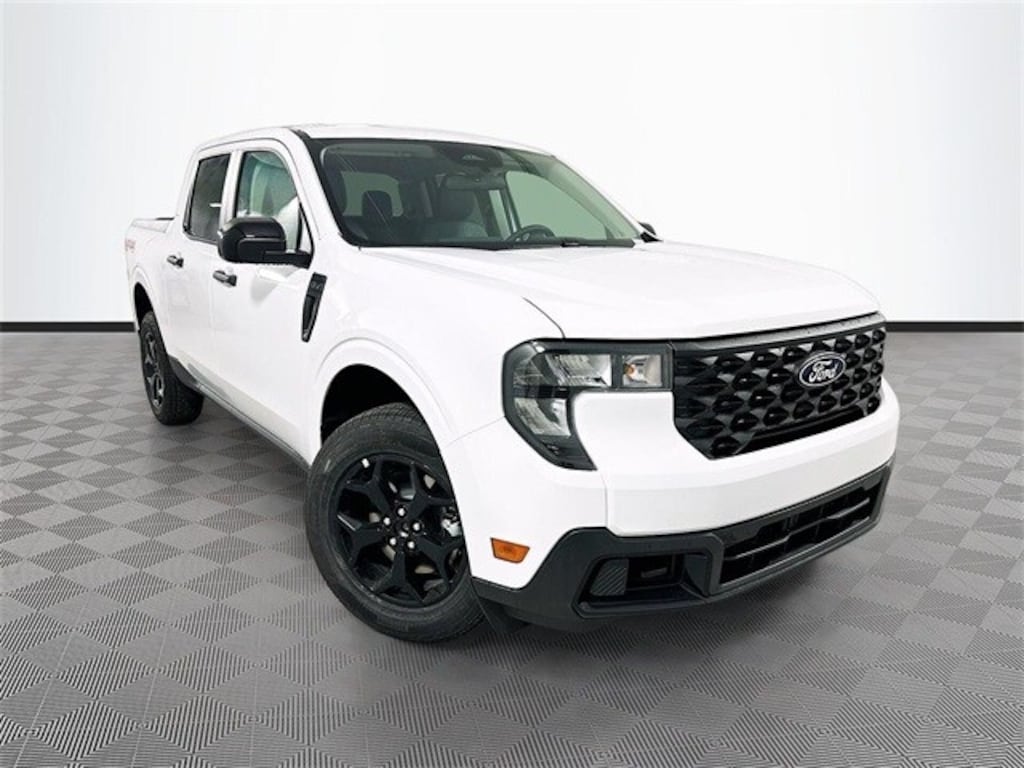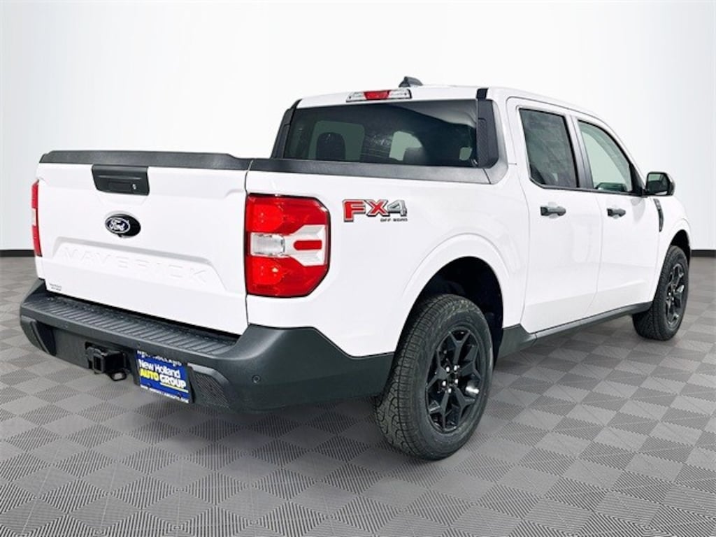 Oxford White 2025 Ford Maverick XLT AWD EcoBoost 2.0L I4 GTDi DOHC Turbocharged VCT 4D Crew Cab 8-Speed Automatic 2.91 Axle Ratio, 4-Wheel Disc Brakes, 400W Inverter w/USB Console Rear, 4K Tow Package, 6 Speakers, ABS brakes, Air Conditioning, Alloy wheels, AM/FM radio: SiriusXM with 360L, Apple CarPlay/Android Auto, Auto High Beams, Auto High-beam Headlights, Automatic temperature control, BLIS w/Cross-Traffic Alert, Brake assist, Bumpers: body-color, Compass, Cross Traffic Brake Assist, Delay-off headlights, Driver door bin, Driver vanity mirror, Dual front impact airbags, Dual front side impact airbags, Electronic Stability Control, Emergency communication system: SYNC 4 911 Assist, Equipment Group 302A, Evasive Steering Assist, Exposed Front Tow Hooks, Exterior Parking Camera Rear, Ford Co-Pilot360 1.0, Four wheel independent suspension, Front & Rear Floor Liners w/o Carpet Mats, Front anti-roll bar, Front Bucket Seats, Front Center Armrest, Front reading lights, Fully automatic headlights, FX4 Off-Road Package, Heated Mirror w/Painted Black Skull Caps, Heated Seats, Higher Capacity Radiator, Hill Descent Control, Illuminated entry, Intersection Assist, Keyless-Entry Keypad (Wireless) - MIC, Knee airbag, Lane-Keeping System, LED Box Lighting, Low tire pressure warning, Occupant sensing airbag, Outside temperature display, Overhead airbag, Overhead console, Panic alarm, Passenger door bin, Passenger vanity mirror, Performance Suspension, Power door mirrors, Power Glass Manual-Folding Mirrors, Power steering, Power windows, Pre-Collision Assist w/Automatic Emergency Braking, Radio data system, Radio: AM/FM Stereo w/6 Speakers, Rear anti-roll bar, Rear Parking Sensors, Rear seat center armrest, Rear step bumper, Rear-View Camera, Remote keyless entry, Remote Start System, Security system, SiriusXM w/360L, Soft Vinyl Wrapped Heated Steering Wheel, Speed control, Speed-sensing steering, Steering wheel mounted audio controls, SYNC 4 w/Enhanced Voice Recognition, Telescoping steering wheel, Tilt steering wheel, Traction control, Trailer Brake Controller, Trailer Hitch (Class III) 2" Receiver, Transmission Oil Cooler, Trip computer, Unique Cloth Front Bucket Seats, Upgraded Cooling Fan, Wheels: 17" Carbonized Gray Painted Aluminum, Wheels: 17" Unique Ebony Painted Aluminum, XLT Luxury Package.