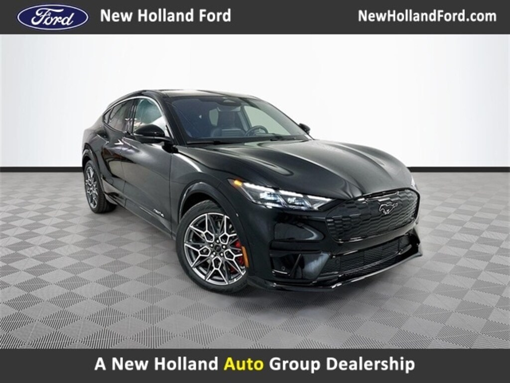 Shadow Black 2025 Ford Mustang Mach-E GT AWD Electric Motor 4D Sport Utility Single-Speed Automatic 10 Speakers, 1st & 2nd Row Floor Liners w/o Carpet Mats, 4-Wheel Disc Brakes, ABS brakes, Adaptive suspension, Air Conditioning, Alloy wheels, AM/FM radio: SiriusXM with 360L, Apple CarPlay/Android Auto, Auto High-beam Headlights, Auto-dimming Rear-View mirror, Automatic temperature control, Brake assist, Bumpers: body-color, Cargo Area Cover, Cargo Floor Liner, Compass, Delay-off headlights, Driver door bin, Driver vanity mirror, Dual front impact airbags, Dual front side impact airbags, Electronic Stability Control, Emergency communication system: 911 Assist, Equipment Group 400A Standard Package, Exterior Parking Camera Rear, Four wheel independent suspension, Front anti-roll bar, Front Bucket Seats, Front Center Armrest, Front dual zone A/C, Front reading lights, Fully automatic headlights, Garage door transmitter, Heated door mirrors, Heated front seats, Heated Perforated ActiveX Performance Seats, Heated steering wheel, Hood & Decklid Stripe/Door Graphics Delete, Illuminated entry, Interior Protection Package, Knee airbag, Low tire pressure warning, Memory seat, Mobile Power Cord (120V/240V), Mustang Mach-E GT Performance Upgrade, NACS Fast Charging Adapter, Navigation system: Connected Navigation, Occupant sensing airbag, Outside temperature display, Overhead airbag, Overhead console, Panic alarm, Panoramic Fixed-Glass Roof, Passenger door bin, Passenger vanity mirror, Power door mirrors, Power driver seat, Power Liftgate, Power passenger seat, Power steering, Power windows, Radio data system, Radio: B&O Sound System by Bang & Olufsen, Rain sensing wipers, Rear anti-roll bar, Rear seat center armrest, Rear side impact airbag, Rear window defroster, Rear window wiper, Remote keyless entry, Security system, SiriusXM w/360L, Speed control, Speed-sensing steering, Speed-Sensitive Wipers, Split folding rear seat, Spoiler, Steering wheel mounted audio controls, SYNC 4A w/Enhanced Voice Recognition, Telescoping steering wheel, Tilt steering wheel, Traction control, Trip computer, Turn signal indicator mirrors, Variably intermittent wipers, Wheels: 20" Machined Face Aluminum, Wheels: 20" Monochromatic High Gloss Black-Painted.