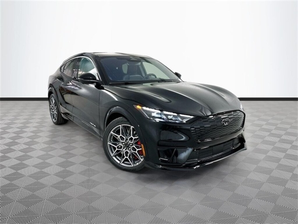 Shadow 2025 Ford Mustang Mach-E GT AWD Dual Electric Motor 4D Sport Utility Single-Speed Automatic 10 Speakers, 1st & 2nd Row Floor Liners w/o Carpet Mats, 4-Wheel Disc Brakes, ABS brakes, Adaptive suspension, Air Conditioning, Alloy wheels, AM/FM radio: SiriusXM with 360L, Apple CarPlay/Android Auto, Auto High-beam Headlights, Auto-dimming Rear-View mirror, Automatic temperature control, Brake assist, Bumpers: body-color, Cargo Area Cover, Cargo Floor Liner, Compass, Delay-off headlights, Driver door bin, Driver vanity mirror, Dual front impact airbags, Dual front side impact airbags, Electronic Stability Control, Emergency communication system: 911 Assist, Equipment Group 400A Standard Package, Exterior Parking Camera Rear, Four wheel independent suspension, Front anti-roll bar, Front Bucket Seats, Front Center Armrest, Front dual zone A/C, Front reading lights, Fully automatic headlights, Garage door transmitter, Heated door mirrors, Heated front seats, Heated Perforated ActiveX Performance Seats, Heated steering wheel, Hood & Decklid Stripe/Door Graphics Delete, Illuminated entry, Interior Protection Package, Knee airbag, Low tire pressure warning, Memory seat, Mobile Power Cord (120V/240V), Mustang Mach-E GT Performance Upgrade, NACS Fast Charging Adapter, Navigation system: Connected Navigation, Occupant sensing airbag, Outside temperature display, Overhead airbag, Overhead console, Panic alarm, Panoramic Fixed-Glass Roof, Passenger door bin, Passenger vanity mirror, Power door mirrors, Power driver seat, Power Liftgate, Power passenger seat, Power steering, Power windows, Radio data system, Radio: B&O Sound System by Bang & Olufsen, Rain sensing wipers, Rear anti-roll bar, Rear seat center armrest, Rear side impact airbag, Rear window defroster, Rear window wiper, Remote keyless entry, Security system, SiriusXM w/360L, Speed control, Speed-sensing steering, Speed-Sensitive Wipers, Split folding rear seat, Spoiler, Steering wheel mounted audio controls, SYNC 4A w/Enhanced Voice Recognition, Telescoping steering wheel, Tilt steering wheel, Traction control, Trip computer, Turn signal indicator mirrors, Variably intermittent wipers, Wheels: 20" Machined Face Aluminum, Wheels: 20" Monochromatic High Gloss Black-Painted.