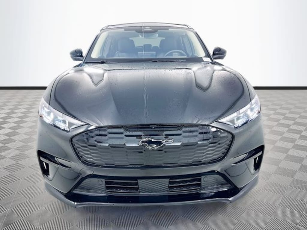Shadow Black 2025 Ford Mustang Mach-E Premium AWD Dual Electric Motor 4D Sport Utility Single-Speed Automatic 10 Speakers, 1st & 2nd Row Floor Liners w/o Carpet Mats, 4-Wheel Disc Brakes, ABS brakes, Air Conditioning, Alloy wheels, AM/FM radio: SiriusXM with 360L, Apple CarPlay/Android Auto, Auto High-beam Headlights, Auto-dimming Rear-View mirror, Automatic temperature control, Brake assist, Brembo Branded Front Brakes, Bumpers: body-color, Cargo Area Cover, Cargo Floor Liner, Compass, Delay-off headlights, Driver door bin, Driver vanity mirror, Dual front impact airbags, Dual front side impact airbags, Electronic Stability Control, Emergency communication system: 911 Assist, Equipment Group 300A Standard Package, Exterior Parking Camera Rear, Four wheel independent suspension, Front anti-roll bar, Front Bucket Seats, Front Center Armrest, Front dual zone A/C, Front reading lights, Fully automatic headlights, Garage door transmitter, Heated door mirrors, Heated front seats, Heated steering wheel, Heated/Ventilated Perforated ActiveX Bucket Seats, Illuminated entry, Interior Protection Package, Internet access capable: FordPass Connect, Knee airbag, Low tire pressure warning, Memory seat, Mobile Power Cord (120V/240V), NACS Fast Charging Adapter, Navigation system: Connected Navigation, Occupant sensing airbag, Outside temperature display, Overhead airbag, Overhead console, Panic alarm, Panoramic Fixed-Glass Roof, Passenger door bin, Passenger vanity mirror, Power door mirrors, Power driver seat, Power Liftgate, Power passenger seat, Power steering, Power windows, Radio data system, Radio: B&O Sound System by Bang & Olufsen, Rain sensing wipers, Rear anti-roll bar, Rear seat center armrest, Rear side impact airbag, Rear window defroster, Rear window wiper, Red Painted Front & Rear Brake Calipers, Remote keyless entry, Security system, SiriusXM w/360L, Speed control, Speed-sensing steering, Speed-Sensitive Wipers, Split folding rear seat, Spoiler, Sport Appearance Package, Sport Pedals, Steering wheel mounted audio controls, SYNC 4A w/Enhanced Voice Recognition, Telescoping steering wheel, Tilt steering wheel, Tire Inflator & Sealant Kit, Traction control, Trip computer, Turn signal indicator mirrors, Unique Front Fascia, Variably intermittent wipers, Ventilated front seats, Wheels: 19" Bright Machined-Face Aluminum, Wheels: 19" Monochromatic High Gloss Black-Painted.