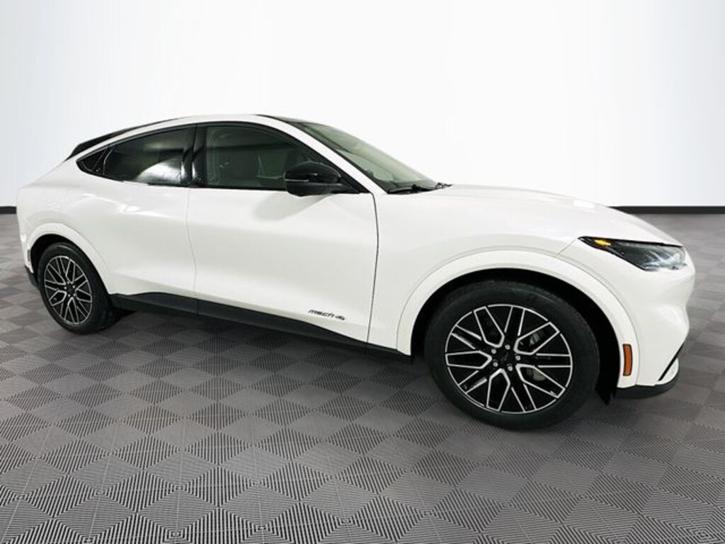 Star White Metallic Tri-Coat 2025 Ford Mustang Mach-E Premium AWD Dual Electric Motor 4D Sport Utility Single-Speed Automatic 1st & 2nd Row Floor Liners w/o Carpet Mats, Cargo Area Cover, Cargo Floor Liner, Equipment Group 300A Standard Package, Heated front seats, Heated/Ventilated Perforated ActiveX Bucket Seats, Interior Protection Package, Navigation system: Connected Navigation, Radio: B&O Sound System by Bang & Olufsen, SiriusXM w/360L, SYNC 4A w/Enhanced Voice Recognition, 10 Speakers, 4-Wheel Disc Brakes, ABS brakes, Air Conditioning, Alloy wheels, AM/FM radio: SiriusXM with 360L, Apple CarPlay/Android Auto, Auto High-beam Headlights, Auto-dimming Rear-View mirror, Automatic temperature control, BlueCruise Equipped (1-Year Plan), Brake assist, Bumpers: body-color, Compass, Delay-off headlights, Driver door bin, Driver vanity mirror, Dual front impact airbags, Dual front side impact airbags, Electronic Stability Control, Emergency communication system: 911 Assist, Exterior Parking Camera Rear, Four wheel independent suspension, Front anti-roll bar, Front Bucket Seats, Front Center Armrest, Front dual zone A/C, Front reading lights, Fully automatic headlights, Garage door transmitter, Heated door mirrors, Heated steering wheel, Illuminated entry, Knee airbag, Low tire pressure warning, Memory seat, Mobile Power Cord (120V/240V), Occupant sensing airbag, Outside temperature display, Overhead airbag, Overhead console, Panic alarm, Panoramic Fixed-Glass Roof, Passenger door bin, Passenger vanity mirror, Power door mirrors, Power driver seat, Power Liftgate, Power passenger seat, Power steering, Power windows, Radio data system, Rain sensing wipers, Rear anti-roll bar, Rear seat center armrest, Rear side impact airbag, Rear window defroster, Rear window wiper, Remote keyless entry, Security system, Speed control, Speed-sensing steering, Speed-Sensitive Wipers, Split folding rear seat, Spoiler, Steering wheel mounted audio controls, Telescoping steering wheel, Tilt steering wheel, Tire Inflator & Sealant Kit, Traction control, Trip computer, Turn signal indicator mirrors, Variably intermittent wipers, Ventilated front seats, Wheels: 19" Bright Machined-Face Aluminum, 1st & 2nd Row Floor Liners w/o Carpet Mats, Cargo Area Cover, Cargo Floor Liner, Equipment Group 300A Standard Package, Heated front seats, Heated/Ventilated Perforated ActiveX Bucket Seats, Interior Protection Package, Navigation system: Connected Navigation, Radio: B&O Sound System by Bang & Olufsen, SiriusXM w/360L, SYNC 4A w/Enhanced Voice Recognition.