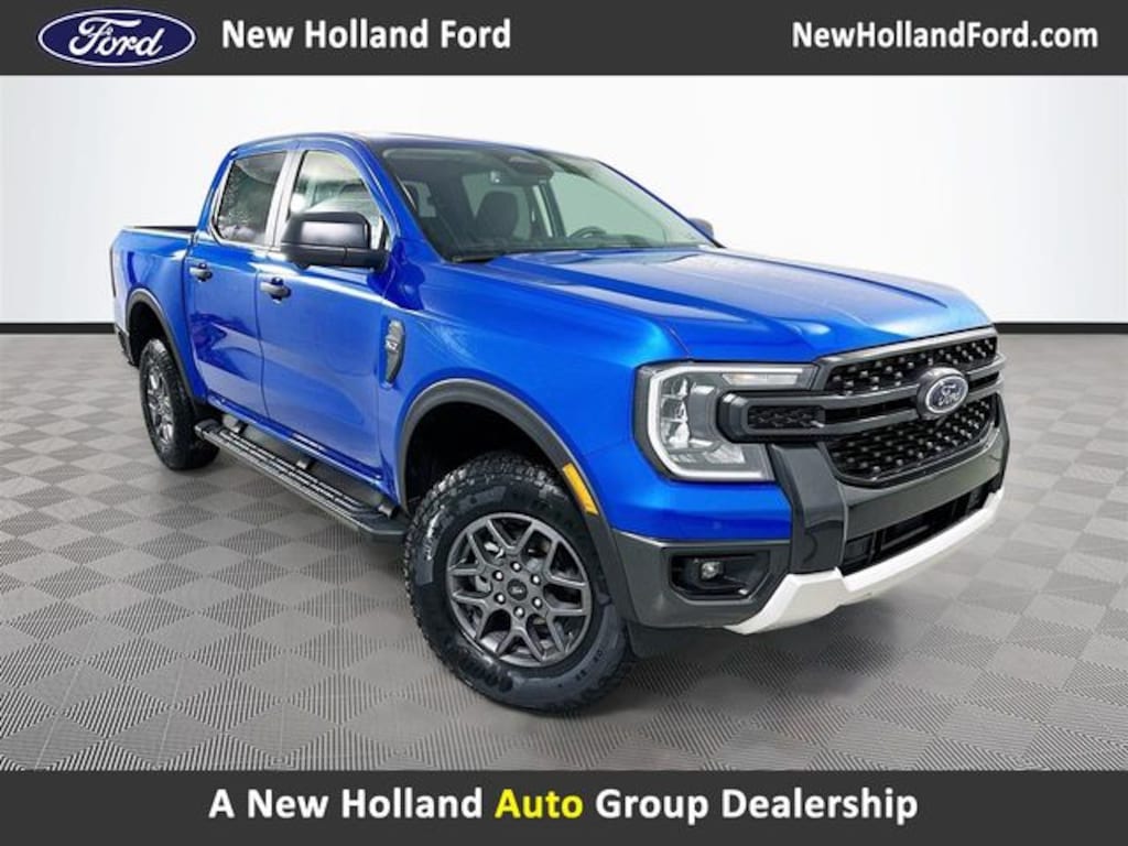 Blue Metallic 2025 Ford Ranger XLT 4WD EcoBoost 2.3L I4 GTDi DOHC Turbocharged VCT 4D Crew Cab 10-Speed Automatic 4WD, 12" Display in Center Stack, 120V/400W In-Cab & In-Bed Power Outlets, 360-Degree Camera, 4-Wheel Disc Brakes, 6 Speakers, ABS brakes, Adaptive Cruise Control, Air Conditioning, Alloy wheels, AM/FM radio: SiriusXM, AM/FM Stereo, Auto High-beam Headlights, Auto-dimming Rear-View mirror, Black Running Boards, Brake assist, Class IV Trailer Hitch Receiver, Cloth Front Bucket Seats, Compass, Convenience Package, Delay-off headlights, Driver door bin, Driver vanity mirror, Dual front impact airbags, Dual front side impact airbags, Dual-Zone Electronic Climate Control (DEATC), Electronic Stability Control, Emergency communication system: SYNC 4 911 Assist, Equipment Group 301A High, Front anti-roll bar, Front Bucket Seats, Front Center Armrest, Front fog lights, Front Parking Sensors, Front reading lights, Front wheel independent suspension, Fully automatic headlights, FX4 Off-Road Box Decal, FX4 Off-Road Package, FX4 Selectable Drive Modes, Gray Painted Center Bar & Grille Surround, Gray Painted Front Fascia & Rear Bumper, Illuminated entry, Integrated Box Side Step, Internet access capable: FordPass Connect 4G, Leather Shift Knob, Low tire pressure warning, Navigation system: Connected Navigation, Occupant sensing airbag, Off-Road Screen in Center Stack, Off-Road Tuned Shocks, Outside temperature display, Overhead airbag, Overhead console, Panic alarm, Passenger door bin, Passenger vanity mirror, Power door mirrors, Power steering, Power windows, Power-Sliding Rear Window, Rear reading lights, Rear seat center armrest, Rear step bumper, Rear window defroster, Remote keyless entry, Security system, SiriusXM Satellite Radio, Speed control, Speed-sensing steering, Sport Appearance Package, Sport Box Decal, Steering wheel mounted audio controls, SYNC 4A w/Connected Navigation, Technology Package, Telescoping steering wheel, Tilt steering wheel, Traction control, Trail Control, Trailer Tow Package, Tray Style Floor Liner, Trip computer, Variably intermittent wipers, Voltmeter, Wheels: 17" Gray-Painted Aluminum, Wireless Charging Pad, 4WD.