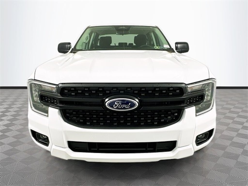 Oxford White 2025 Ford Ranger XL 4WD EcoBoost 2.3L I4 GTDi DOHC Turbocharged VCT 4D Crew Cab 10-Speed Automatic 4WD, 3.73 Axle Ratio, 4-Wheel Disc Brakes, 6 Speakers, ABS brakes, Air Conditioning, Alloy wheels, AM/FM radio, AM/FM Stereo, Auto High-beam Headlights, Black Running Boards, Brake assist, Bumpers: body-color, Carpet Floor Covering w/Carpet Floor Mats, Class IV Trailer Hitch Receiver, Cloth Front Bucket Seats, Compass, Delay-off headlights, Driver door bin, Dual front impact airbags, Dual front side impact airbags, Electronic Stability Control, Emergency communication system: SYNC 4 911 Assist, Equipment Group 100A Standard, Front anti-roll bar, Front Bucket Seats, Front Center Armrest, Front fog lights, Front reading lights, Front wheel independent suspension, Fully automatic headlights, Halogen Fog Lamps, Illuminated entry, LED Reflector Headlamps, Low tire pressure warning, Occupant sensing airbag, Outside temperature display, Overhead airbag, Overhead console, Panic alarm, Passenger door bin, Power door mirrors, Power steering, Power windows, Rear reading lights, Rear seat center armrest, Rear step bumper, Remote keyless entry, Security system, Speed control, Speed-sensing steering, Steering wheel mounted audio controls, STX Appearance Package, STX Fender Badge, SYNC 4A, Telescoping steering wheel, Tilt steering wheel, Traction control, Trailer Tow Package, Tray Style Floor Liner w/Carpet Floor Mats, Trip computer, Variably intermittent wipers, Voltmeter, Wheels: 17" Silver-Painted Aluminum, 4WD.