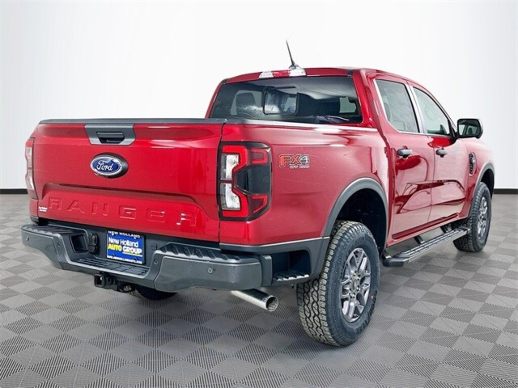 Ruby Red 2025 Ford Ranger XLT 4WD EcoBoost 2.3L I4 GTDi DOHC Turbocharged VCT 4D Crew Cab 10-Speed Automatic 4WD, 12" Display in Center Stack, 120V/400W In-Cab & In-Bed Power Outlets, 360-Degree Camera, 4-Wheel Disc Brakes, 6 Speakers, ABS brakes, Adaptive Cruise Control, Air Conditioning, Alloy wheels, AM/FM radio: SiriusXM, AM/FM Stereo, Auto High-beam Headlights, Auto-dimming Rear-View mirror, Black Running Boards, Blk SecuriCode Wireless Keyless Entry Keypad (DIO), Brake assist, Class IV Trailer Hitch Receiver, Cloth Front Bucket Seats, Compass, Convenience Package, Delay-off headlights, Driver door bin, Driver vanity mirror, Dual front impact airbags, Dual front side impact airbags, Dual-Zone Electronic Climate Control (DEATC), Electronic Stability Control, Emergency communication system: SYNC 4 911 Assist, Equipment Group 301A High, Front anti-roll bar, Front Bucket Seats, Front Center Armrest, Front fog lights, Front Parking Sensors, Front reading lights, Front wheel independent suspension, Fully automatic headlights, FX4 Off-Road Box Decal, FX4 Off-Road Package, FX4 Selectable Drive Modes, Gray Painted Center Bar & Grille Surround, Gray Painted Front Fascia & Rear Bumper, Illuminated entry, Integrated Box Side Step, Internet access capable: FordPass Connect 4G, Leather Shift Knob, Low tire pressure warning, Navigation system: Connected Navigation, Occupant sensing airbag, Off-Road Screen in Center Stack, Off-Road Tuned Shocks, Outside temperature display, Overhead airbag, Overhead console, Panic alarm, Passenger door bin, Passenger vanity mirror, Power door mirrors, Power steering, Power windows, Power-Sliding Rear Window, Rear reading lights, Rear seat center armrest, Rear step bumper, Rear window defroster, Remote keyless entry, Security system, SiriusXM Satellite Radio, Speed control, Speed-sensing steering, Sport Appearance Package, Sport Box Decal, Steering wheel mounted audio controls, SYNC 4A w/Connected Navigation, Technology Package, Telescoping steering wheel, Tilt steering wheel, Traction control, Trail Control, Trailer Tow Package, Tray Style Floor Liner, Trip computer, Variably intermittent wipers, Voltmeter, Wheels: 17" Gray-Painted Aluminum, Wireless Charging Pad, 4WD.