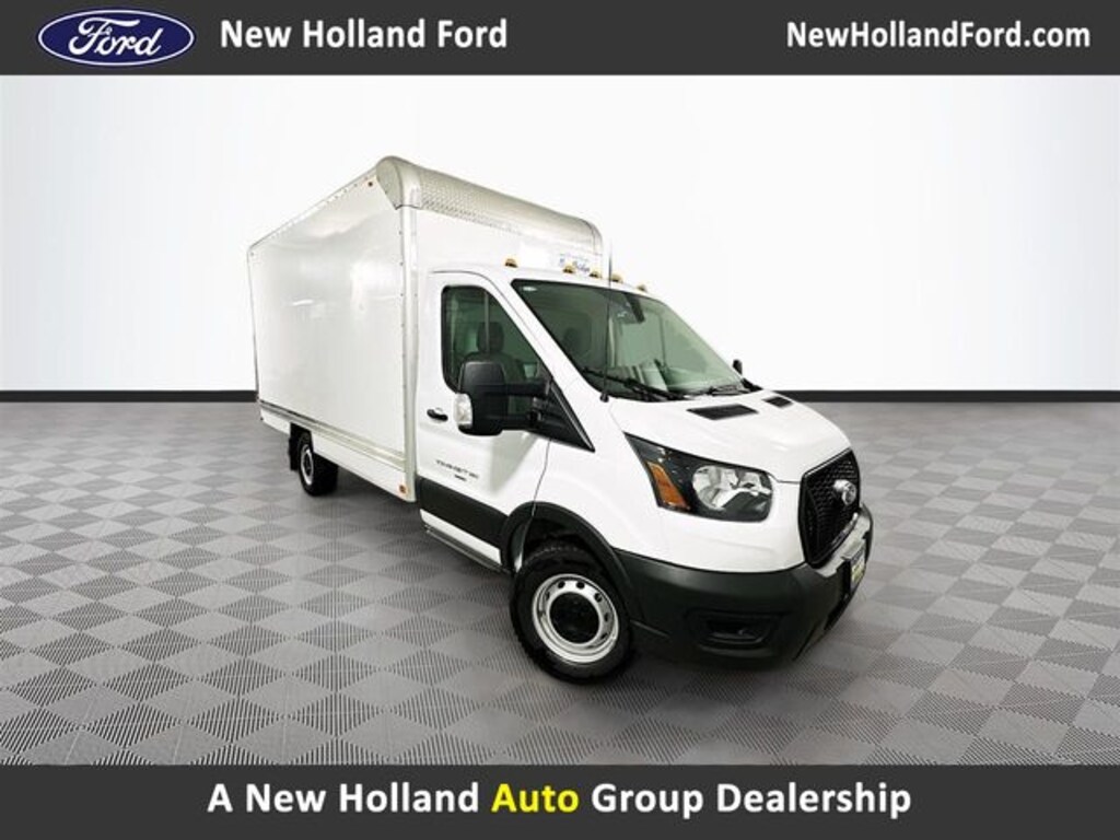 Oxford White 2025 Ford Transit-350 RWD EcoBoost 3.5L V6 GTDi DOHC 24V Twin Turbocharged 10-Speed Automatic with Overdrive 2 Additional Keys (4 Total), 4 Speakers, 4-Wheel Disc Brakes, ABS brakes, Air Conditioning, AM/FM radio, AM/FM Stereo, Auto High-beam Headlights, Auxiliary Fuse Panel, Brake assist, Dark Palazzo Gray Cloth Bucket Seats, Dark Palazzo Gray Vinyl Bucket Seats, Driver door bin, Driver's Seat Mounted Armrest, Dual AGM Batteries (70 Amp-hr Each), Dual front impact airbags, Dual front side impact airbags, Electronic Stability Control, Front anti-roll bar, Front Bucket Seats, Front reading lights, Front wheel independent suspension, Fully automatic headlights, Illuminated entry, Illuminated Vinyl-Trimmed Sun Visors, Interior Upgrade Package, Internet access capable: FordPass Connect 4G, Large Center Console, Long-Arm Manual-Folding Heated Power Adjust Mirrors, Low tire pressure warning, Modified Vehicle Wiring System, Occupant sensing airbag, Order Code 701A, Overhead airbag, Panic alarm, Passenger cancellable airbag, Passenger door bin, Power steering, Power windows, Radio: AM/FM Stereo w/SYNC 3, Rain sensing wipers, Rear Video Camera & Prep Kit, Remote keyless entry, Speed control, Steering wheel mounted audio controls, Tachometer, Telescoping steering wheel, Tilt steering wheel, Upfitter Package, Variably intermittent wipers, Vinyl Front Bucket Seats, Wheels: 16" Silver Steel w/Black Hubcaps, 14' BAY BRIDGE ENCLOSED SERVICE BODY, LED LIGHTING, ROLL UP REAR DOOR, TIE DOWN RINGS(10) TOMMYGATE 1300 LB LIFTGATE.