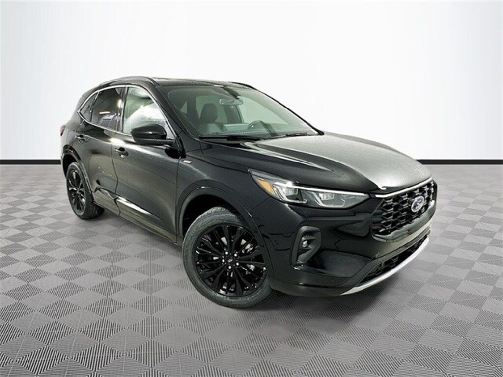 Agate Black Metallic 2026 Ford Escape ST-Line Elite AWD EcoBoost 2.0L I4 GTDi DOHC Turbocharged VCT 4D Sport Utility 8-Speed Automatic AWD, 10-Way Power Driver's Seat w/Memory, 3.47 Axle Ratio, 360-Degree Camera with Split View, 6-Way Power Front Passenger Seat, ActiveX Trimmed Heated Front Sport Contour Bucket Seats with Quilting Design, B&O Sound System by Bang & Olufsen, Class II Trailer Tow Package, Connected Navigation (1-Year Included), Equipment Group 501A, Ford App, Front Parking Sensors, HD Radio, Head-Up Display, Partial Vinyl/Cloth Heated Front Sport Contour Bucket Seats with Red Stitching, Premium Technology Package, Radio: AM/FM Stereo with SiriusXM 360L, Reverse Brake Assist, SYNC 4 with Enhanced Voice Recognition, Wheels: 19" Machined-Face Ebony-Painted Aluminum, 4-Wheel Disc Brakes, 6 Speakers, ABS brakes, Air Conditioning, Alloy wheels, AM/FM radio: SiriusXM 360L, Auto High-beam Headlights, Auto-dimming Rear-View mirror, Automatic temperature control, Black Roof-Rack Side Rails, Brake assist, Bumpers: body-color, Cargo Mat, Compass, Delay-off headlights, Driver door bin, Driver vanity mirror, Dual front impact airbags, Dual front side impact airbags, Electronic Fuel Door Release, Electronic Stability Control, Emergency communication system: SYNC 4 911 Assist, Four wheel independent suspension, Front and Rear Floor Liners with Carpet Mats, Front anti-roll bar, Front Bucket Seats, Front Center Armrest, Front dual zone A/C, Front fog lights, Front reading lights, Fully automatic headlights, Heated door mirrors, Heated front seats, Heated steering wheel, Illuminated entry, Knee airbag, Low tire pressure warning, Memory seat, Navigation system: Connected Navigation, Neutral Towing Capability, Occupant sensing airbag, Outside temperature display, Overhead airbag, Overhead console, Panic alarm, Panoramic Vista Roof, Passenger door bin, Passenger vanity mirror, Pedestrian Alert Sounder, Power door mirrors, Power driver seat, Power Liftgate, Power passenger seat, Power steering, Power windows, Radio data system, Rear anti-roll bar, Rear Parking Sensors, Rear reading lights, Rear seat center armrest, Rear window defroster, Rear window wiper, Remote keyless entry, SecuriCode Illuminated Door Entry Keypad, Security system, Speed control, Speed-sensing steering, Speed-Sensitive Wipers, Split folding rear seat, Spoiler, Sport steering wheel, Steering wheel mounted audio controls, Tachometer, Telescoping steering wheel, Tilt steering wheel, Traction control, Trip computer, Variably intermittent wipers, Wheels: 19" Ebony-Painted Aluminum, AWD, 10-Way Power Driver's Seat w/Memory, 3.47 Axle Ratio, 360-Degree Camera with Split View, 6-Way Power Front Passenger Seat, ActiveX Trimmed Heated Front Sport Contour Bucket Seats with Quilting Design, B&O Sound System by Bang & Olufsen, Class II Trailer Tow Package, Connected Navigation (1-Year Included), Equipment Group 501A, Ford App, Front Parking Sensors, HD Radio, Head-Up Display, Partial Vinyl/Cloth Heated Front Sport Contour Bucket Seats with Red Stitching, Premium Technology Package, Radio: AM/FM Stereo with SiriusXM 360L, Reverse Brake Assist, SYNC 4 with Enhanced Voice Recognition, Wheels: 19" Machined-Face Ebony-Painted Aluminum.