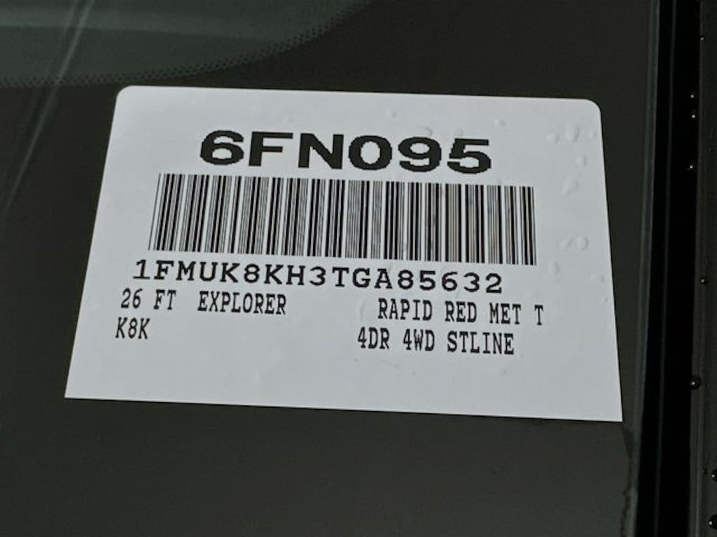 Rapid Red Metallic Tinted Clearcoat 2026 Ford Explorer ST-Line 4WD 2.3L EcoBoost I-4 4D Sport Utility 10-Speed Automatic 4WD, 110V/150W AC Power Outlet, 2nd Row Heated Seats, Ambient Lighting, Auto-Dimming Interior Rear-View Mirror, Equipment Group 300A Standard Package, Heated Unique Cloth Captain's Chairs, Manual-Folding Sideview Mirrors, Memory Driver's Seat, Premium Package, Radio: B&O Sound System by Bang and Olufsen, Rain-Sensing Wipers (front Only), Wheels: 20" Ebony-Painted Machined Aluminum, 10 Speakers, 3rd row seats: bench, 4-Wheel Disc Brakes, ABS brakes, Air Conditioning, Alloy wheels, AM/FM radio: SiriusXM with 360L, Apple CarPlay/Android Auto, Auto High-beam Headlights, Automatic temperature control, Brake assist, Bumpers: body-color, Compass, Delay-off headlights, Driver door bin, Driver vanity mirror, Dual front impact airbags, Dual front side impact airbags, Electronic Stability Control, Emergency communication system: 911 Assist, Exterior Parking Camera Rear, Four wheel independent suspension, Front anti-roll bar, Front Bucket Seats, Front Center Armrest, Front dual zone A/C, Front fog lights, Front reading lights, Fully automatic headlights, Garage door transmitter, Heated door mirrors, Heated front seats, Heated steering wheel, Illuminated entry, Knee airbag, Leather steering wheel, Low tire pressure warning, Navigation System, Occupant sensing airbag, Outside temperature display, Overhead airbag, Overhead console, Panic alarm, Passenger door bin, Passenger vanity mirror, Power door mirrors, Power driver seat, Power Liftgate, Power passenger seat, Power steering, Power windows, Rear air conditioning, Rear anti-roll bar, Rear reading lights, Rear window defroster, Rear window wiper, Remote keyless entry, Security system, Speed control, Speed-sensing steering, Speed-Sensitive Wipers, Split folding rear seat, Spoiler, Steering wheel mounted audio controls, Tachometer, Telescoping steering wheel, Tilt steering wheel, Traction control, Trip computer, Variably intermittent wipers, 4WD, 110V/150W AC Power Outlet, 2nd Row Heated Seats, Ambient Lighting, Auto-Dimming Interior Rear-View Mirror, Equipment Group 300A Standard Package, Heated Unique Cloth Captain's Chairs, Manual-Folding Sideview Mirrors, Memory Driver's Seat, Premium Package, Radio: B&O Sound System by Bang and Olufsen, Rain-Sensing Wipers (front Only), Wheels: 20" Ebony-Painted Machined Aluminum.