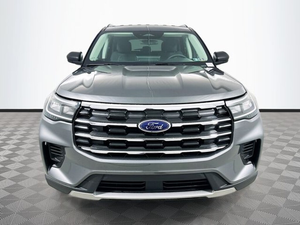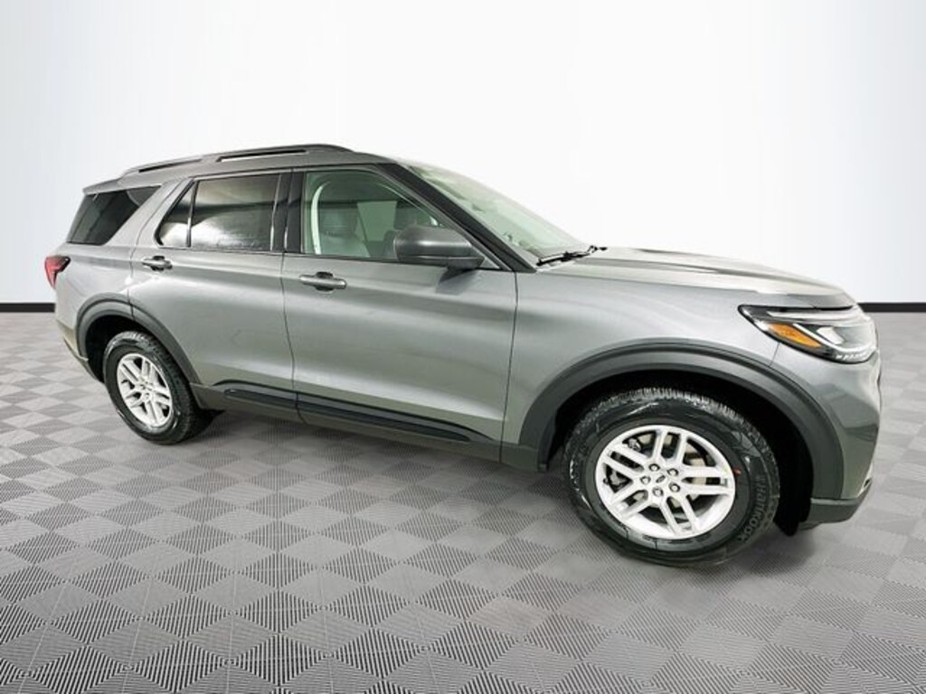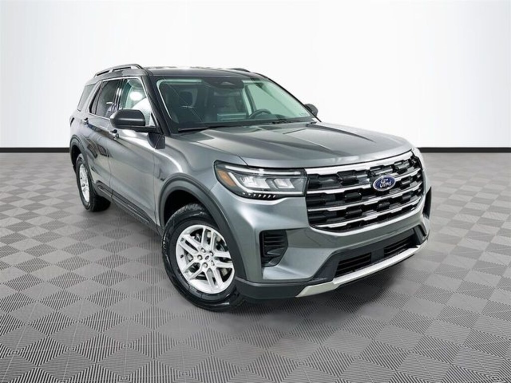 Gray 2026 Ford Explorer Active 4WD 2.3L EcoBoost I-4 4D Sport Utility 10-Speed Automatic 4WD, 3rd row seats: bench, 4-Wheel Disc Brakes, 6 Speakers, ABS brakes, Air Conditioning, Alloy wheels, AM/FM radio: SiriusXM with 360L, AM/FM Stereo, Apple CarPlay/Android Auto, Auto High-beam Headlights, Automatic temperature control, Brake assist, Bumpers: body-color, Compass, Delay-off headlights, Driver door bin, Driver vanity mirror, Dual front impact airbags, Dual front side impact airbags, Electronic Stability Control, Emergency communication system: 911 Assist, Exterior Parking Camera Rear, Four wheel independent suspension, Front anti-roll bar, Front Bucket Seats, Front Center Armrest, Front dual zone A/C, Front reading lights, Fully automatic headlights, Heated door mirrors, Illuminated entry, Knee airbag, Low tire pressure warning, Navigation System, Occupant sensing airbag, Outside temperature display, Overhead airbag, Overhead console, Panic alarm, Passenger door bin, Passenger vanity mirror, Power door mirrors, Power driver seat, Power steering, Power windows, Rear air conditioning, Rear anti-roll bar, Rear reading lights, Rear window defroster, Rear window wiper, Remote keyless entry, Security system, Speed control, Speed-sensing steering, Speed-Sensitive Wipers, Split folding rear seat, Spoiler, Steering wheel mounted audio controls, Tachometer, Telescoping steering wheel, Tilt steering wheel, Traction control, Trip computer, Variably intermittent wipers, Wheels: 18" Sparkle Silver-Painted Aluminum, 4WD.
