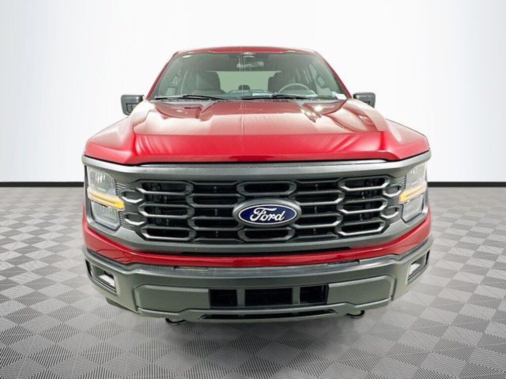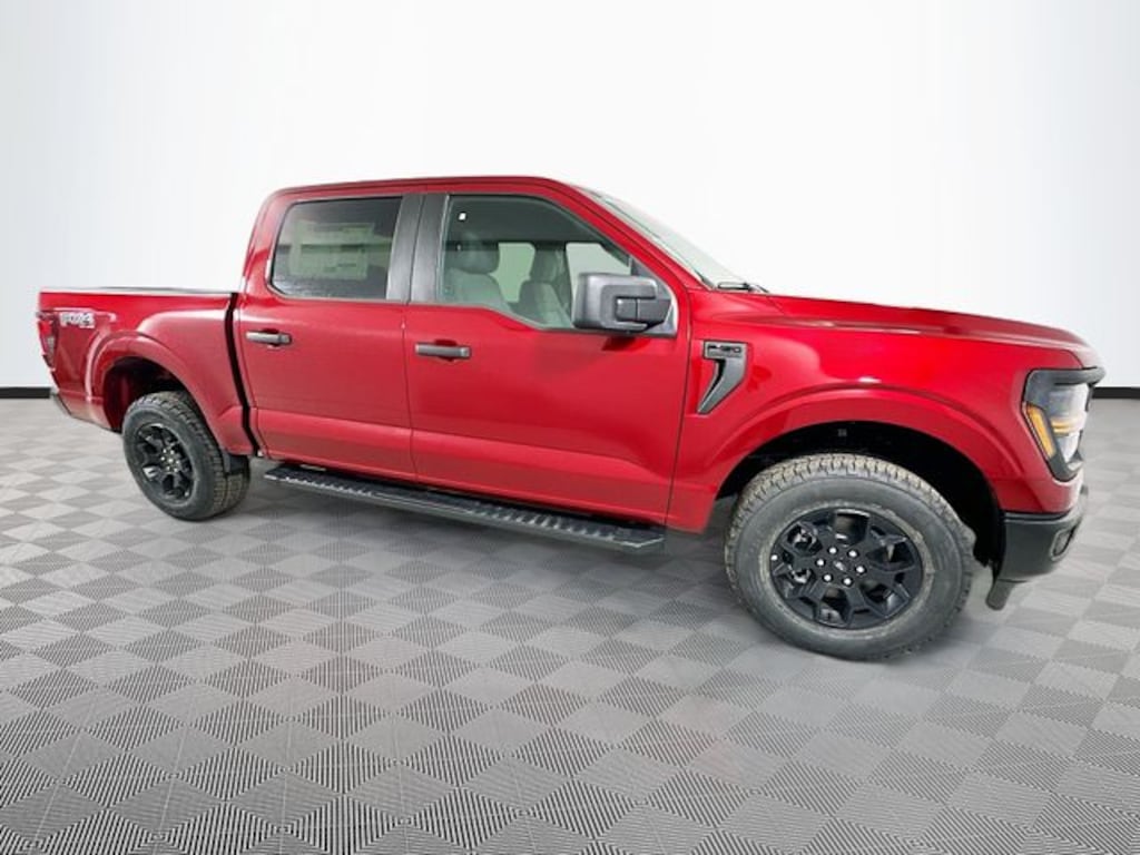 Ruby Red 2026 Ford F-150 STX 4WD 2.7L V6 EcoBoost 4D SuperCrew 10-Speed Automatic 4WD, 3.55 Axle Ratio, 4-Wheel Disc Brakes, 6 Speakers, ABS brakes, Air Conditioning, Alloy wheels, AM/FM radio: SiriusXM with 360L, Auto High-beam Headlights, Brake assist, Bumpers: body-color, Compass, Delay-off headlights, Driver door bin, Dual front impact airbags, Dual front side impact airbags, Electronic Stability Control, Emergency communication system: SYNC 4 911 Assist, Ford Connectivity Package (1-Year Included), Front anti-roll bar, Front Bucket Seats, Front Center Armrest, Front reading lights, Front wheel independent suspension, Fully automatic headlights, GVWR: 6,650 lbs Payload Package, Heated door mirrors, Illuminated entry, Internet access capable: 5G Modem - Ford Connectivity Package, Low tire pressure warning, Occupant sensing airbag, Outside temperature display, Overhead airbag, Overhead console, Panic alarm, Passenger door bin, Passenger vanity mirror, Power door mirrors, Power steering, Power windows, Radio data system, Radio: AM/FM Stereo with SiriusXM 360L, Rear step bumper, Rear window defroster, Remote keyless entry, Security system, Speed control, Split folding rear seat, Steering wheel mounted audio controls, SYNC 4 with Enhanced Voice Recognition, Tachometer, Telescoping steering wheel, Tilt steering wheel, Traction control, Trip computer, Unique Sport Cloth 40/Console/40 Front-Seats, Variably intermittent wipers, Wheels: 18" Gloss Black, 4WD.