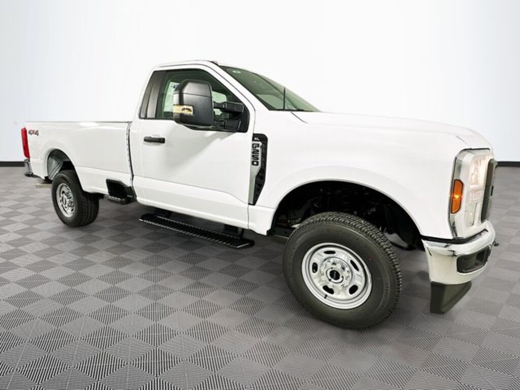 Oxford White 2026 Ford F-250SD XL 4WD 6.8L V8 2D Standard Cab 10-Speed Automatic 4WD, 17" Argent Painted Steel Wheels, 4 Speakers, 4-Wheel Disc Brakes, ABS brakes, Air Conditioning, AM/FM radio, Brake assist, Bright Chrome Hub Covers and Center Ornaments, Chrome Front Bumper, Chrome Rear Step Bumper, Cloth 40/20/40 Split Bench Seat, Compass, Delay-off headlights, Dual front impact airbags, Dual front side impact airbags, Electronic Stability Control, Emergency communication system: SYNC 4 911 Assist, Exterior Parking Camera Rear, Ford Connectivity Package (1-Year Included), Front anti-roll bar, Front Center Armrest w/Storage, Front License Plate Bracket, Front reading lights, Fully automatic headlights, GVWR: 10,000 Lb Payload Package, Halogen Fog Lamps, HD Vinyl 40/20/40 Split Bench Seat, Heated door mirrors, Illuminated entry, Internet access capable: 5G Modem - Ford Connectivity Package, LED Roof Clearance Lights, Low tire pressure warning, Order Code 600A, Outside temperature display, Overhead airbag, Overhead console, Panic alarm, Passenger cancellable airbag, Passenger vanity mirror, Platform Running Boards, Power door mirrors, Power steering, Power windows, Pro Power Onboard - 400W, Radio: AM/FM Stereo with MP3 Player, Rear step bumper, Remote keyless entry, Remote Start System, Security system, Snow Plow Prep Package, Speed control, Steering wheel mounted audio controls, SYNC 4, Tachometer, Telescoping steering wheel, Tilt steering wheel, Traction control, Trailer Brake Controller, Trip computer, Turn signal indicator mirrors, Upfitter Switches (6), Variably intermittent wipers, XL Chrome Package, 4WD.