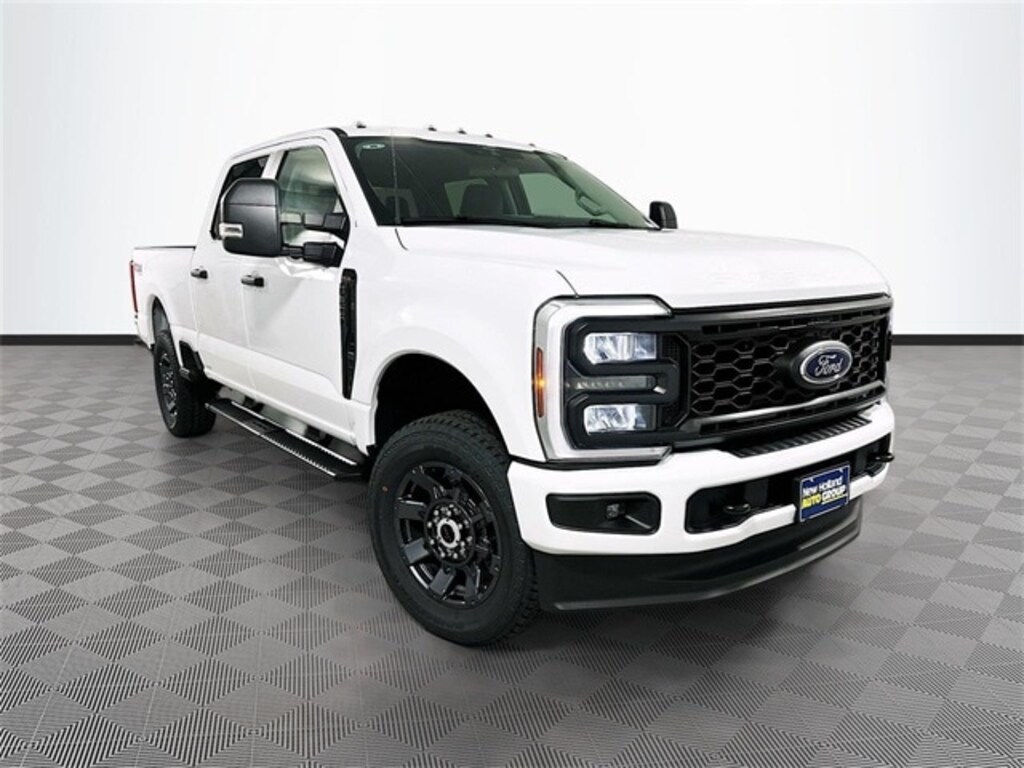 Oxford White 2026 Ford F-250SD XL 4WD 6.8L V8 4D Crew Cab 10-Speed Automatic 4WD, 4-Wheel Disc Brakes, 410 Amp Dual Alternators, ABS brakes, Air Conditioning, BLIS w/Cross-Traffic Alert, Brake assist, Compass, Delay-off headlights, Dual AGM 68 AH Battery, Dual front impact airbags, Dual front side impact airbags, Electronic Stability Control, Emergency communication system: SYNC 4 911 Assist, F-250 >10K GVWR Package, Ford Connectivity Package (1-Year Included), Front anti-roll bar, Front License Plate Bracket, Front reading lights, Fully automatic headlights, FX4 Off-Road Package, Heated door mirrors, Hill Descent Control, Illuminated entry, Internet access capable: 5G Modem - Ford Connectivity Package, LED Roof Clearance Lights, Low tire pressure warning, Off-Road Specifically Tuned Shock Absorbers, Outside temperature display, Overhead airbag, Overhead console, Panic alarm, Passenger vanity mirror, Platform Running Boards, Power door mirrors, Power steering, Power windows, Power-Sliding Rear-Window w/Defrost, Privacy Glass, Rear Parking Sensors, Rear reading lights, Rear step bumper, Remote keyless entry, Security system, Snow Plow Prep Package, Speed control, Split folding rear seat, Steering wheel mounted audio controls, Tachometer, Telescoping steering wheel, Tilt steering wheel, Traction control, Trip computer, Turn signal indicator mirrors, Unique FX4 Off-Road Box Decal, Upfitter Switches (6), Variably intermittent wipers, 4WD.