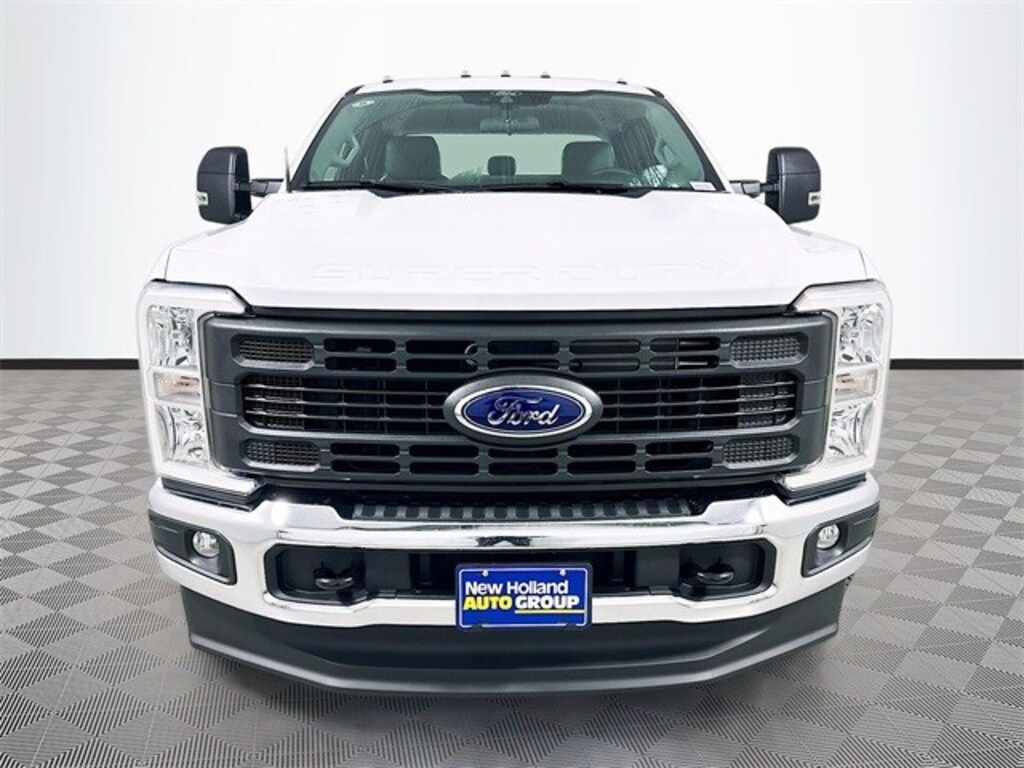 Oxford White 2026 Ford F-250SD XL 4WD 6.8L V8 4D Extended Cab 10-Speed Automatic 4WD, 17" Argent Painted Steel Wheels, 250 Amp Alternator (Gas), 4-Wheel Disc Brakes, 400W Pro Power Onboard, 6 Speakers, ABS brakes, Air Conditioning, AM/FM radio, AM/FM Stereo w/MP3 Player, Brake assist, Bright Chrome Hub Covers & Center Ornaments, Chrome Front Bumper, Chrome Rear Step Bumper, Compass, Delay-off headlights, Dual front impact airbags, Dual front side impact airbags, Electronic Stability Control, Emergency communication system: SYNC 4 911 Assist, Exterior Parking Camera Rear, Ford Connectivity Package (1-Year Included), Front anti-roll bar, Front Center Armrest w/Storage, Front License Plate Bracket, Front reading lights, Fully automatic headlights, GVWR: 10,000 lb Payload Package, Halogen Fog Lamps, HD Vinyl 40/20/40 Split Bench Seat, Heated door mirrors, Illuminated entry, Internet access capable: 5G Modem - Ford Connectivity Package, LED Roof Clearance Lights, Low tire pressure warning, Order Code 600A, Outside temperature display, Overhead airbag, Overhead console, Panic alarm, Passenger cancellable airbag, Passenger vanity mirror, Platform Running Boards, Power door mirrors, Power steering, Power windows, Rear step bumper, Remote keyless entry, Remote Start System, Security system, Snow Plow Prep Package, Speed control, Split folding rear seat, Steering wheel mounted audio controls, SYNC 4, Tachometer, Telescoping steering wheel, Tilt steering wheel, Traction control, Trailer Brake Controller, Trip computer, Turn signal indicator mirrors, Upfitter Switches (6), Variably intermittent wipers, XL Chrome Package, 4WD.
