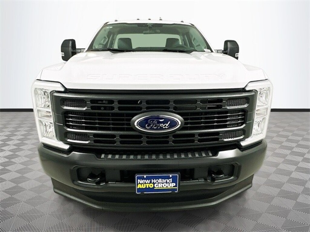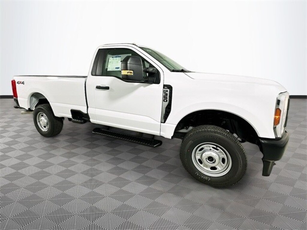 Oxford White 2026 Ford F-350SD XL 4WD 6.8L V8 2D Standard Cab Automatic 4WD, 190 Amp Alternator, 4 Speakers, 4-Wheel Disc Brakes, 410 Amp Dual Alternators, ABS brakes, Air Conditioning, AM/FM radio, AM/FM Stereo w/MP3 Player, Brake assist, Cloth 40/20/40 Split Bench Seat, Compass, Delay-off headlights, Dual AGM 68 AH Battery, Dual front impact airbags, Dual front side impact airbags, Electronic Stability Control, Emergency communication system: SYNC 4 911 Assist, Exterior Parking Camera Rear, Ford Connectivity Package (1-Year Included), Front anti-roll bar, Front Center Armrest w/Storage, Front License Plate Bracket, Front reading lights, Fully automatic headlights, GVWR: 10,900 lb Payload Package, Heated door mirrors, Illuminated entry, Internet access capable: 5G Modem - Ford Connectivity Package, LED Roof Clearance Lights, Low tire pressure warning, Outside temperature display, Overhead airbag, Overhead console, Panic alarm, Passenger cancellable airbag, Passenger vanity mirror, Platform Running Boards, Power door mirrors, Power steering, Power windows, Rear step bumper, Remote keyless entry, Security system, Snow Plow Prep Package, Speed control, Steering wheel mounted audio controls, SYNC 4, Tachometer, Telescoping steering wheel, Tilt steering wheel, Traction control, Trip computer, Turn signal indicator mirrors, Upfitter Switches (6), Variably intermittent wipers, 4WD.