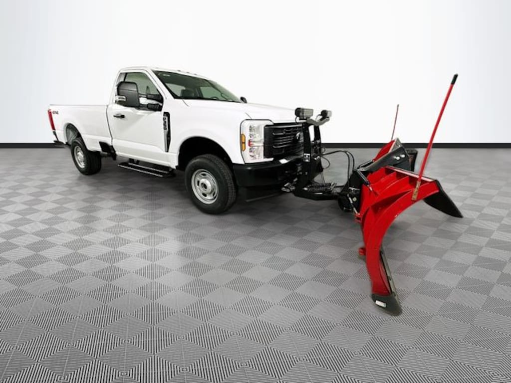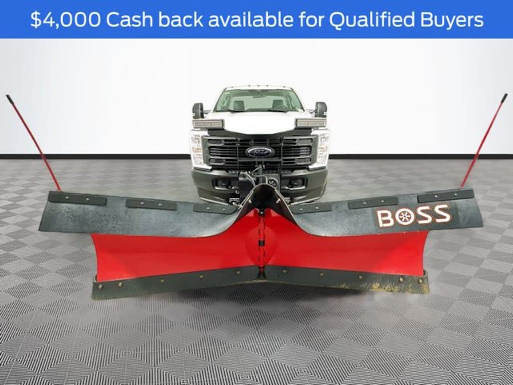Oxford White 2026 Ford F-350SD XL 4WD 6.8L V8 2D Standard Cab 10-Speed Automatic 4WD, 18" Argent Painted Steel Wheels, 190 Amp Alternator, 4 Speakers, 4-Wheel Disc Brakes, 410 Amp Dual Alternators, ABS brakes, Air Conditioning, AM/FM radio, Brake assist, Cloth 40/20/40 Split Bench Seat, Compass, Delay-off headlights, Dual AGM 68 AH Battery, Dual front impact airbags, Dual front side impact airbags, Electronic Stability Control, Emergency communication system: SYNC 4 911 Assist, Exterior Parking Camera Rear, Ford Connectivity Package (1-Year Included), Front anti-roll bar, Front Center Armrest w/Storage, Front License Plate Bracket, Front reading lights, Fully automatic headlights, GVWR: 10,900 Lb Payload Package, HD Vinyl 40/20/40 Split Bench Seat, Heated door mirrors, Illuminated entry, Internet access capable: 5G Modem - Ford Connectivity Package, LED Roof Clearance Lights, Low tire pressure warning, Order Code 610A, Outside temperature display, Overhead airbag, Overhead console, Panic alarm, Passenger cancellable airbag, Passenger vanity mirror, Platform Running Boards, Power door mirrors, Power steering, Power windows, Radio: AM/FM Stereo with MP3 Player, Rear step bumper, Remote keyless entry, Security system, Snow Plow Prep Package, Speed control, Steering wheel mounted audio controls, SYNC 4, Tachometer, Telescoping steering wheel, Tilt steering wheel, Traction control, Trip computer, Turn signal indicator mirrors, Upfitter Switches (6), Variably intermittent wipers, 9'2" BOSS V-XT V PLOW W/SNOW DEFLECTOR, 4WD.