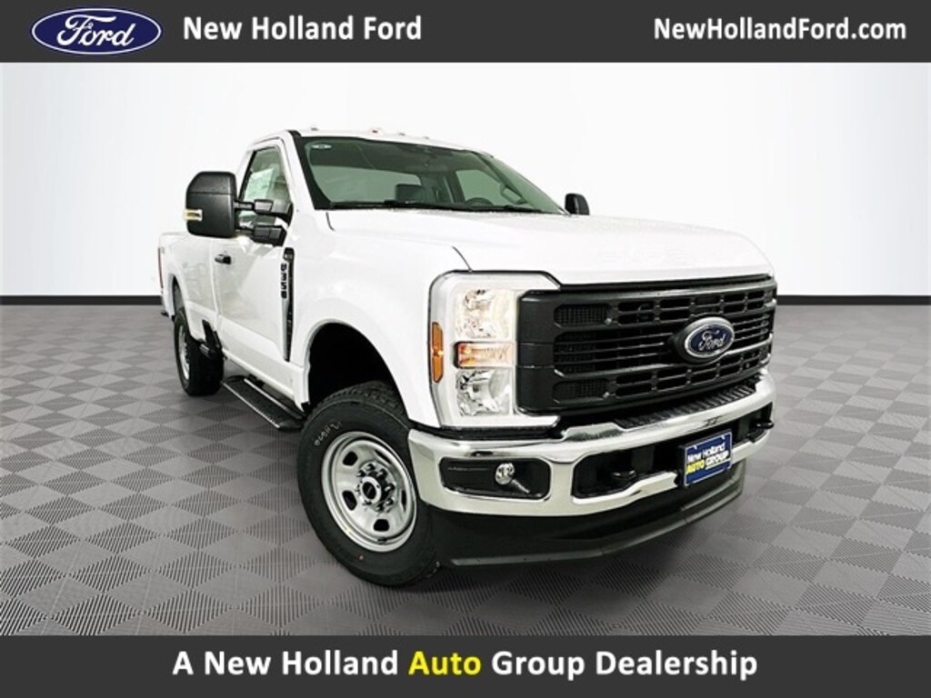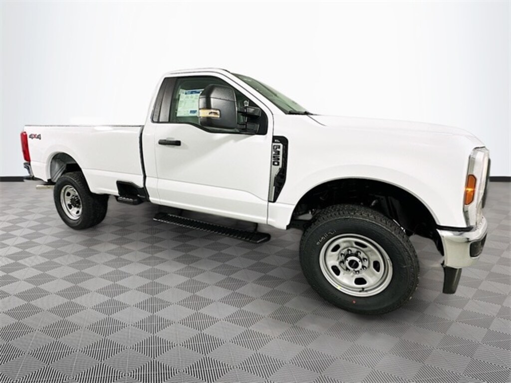 Oxford White 2026 Ford F-350SD XL 4WD 6.8L V8 2D Standard Cab 10-Speed Automatic 4WD, 18" Argent Painted Steel Wheels, 190 Amp Alternator, 250 Amp Alternator (Gas), 4 Speakers, 4-Wheel Disc Brakes, ABS brakes, Air Conditioning, AM/FM radio, AM/FM Stereo w/MP3 Player, Brake assist, Bright Chrome Hub Covers & Center Ornaments, Chrome Front Bumper, Chrome Rear Step Bumper, Cloth 40/20/40 Split Bench Seat, Compass, Delay-off headlights, Dual front impact airbags, Dual front side impact airbags, Electronic Stability Control, Emergency communication system: SYNC 4 911 Assist, Exterior Parking Camera Rear, Ford Connectivity Package (1-Year Included), Front anti-roll bar, Front Center Armrest w/Storage, Front License Plate Bracket, Front reading lights, Fully automatic headlights, GVWR: 10,900 lb Payload Package, Halogen Fog Lamps, HD Vinyl 40/20/40 Split Bench Seat, Heated door mirrors, Illuminated entry, Internet access capable: 5G Modem - Ford Connectivity Package, LED Roof Clearance Lights, Low tire pressure warning, Order Code 610A, Outside temperature display, Overhead airbag, Overhead console, Panic alarm, Passenger cancellable airbag, Passenger vanity mirror, Platform Running Boards, Power door mirrors, Power steering, Power windows, Pro Power Onboard - 400W, Rear step bumper, Remote keyless entry, Remote Start System, Security system, Snow Plow Prep Package, Speed control, Steering wheel mounted audio controls, SYNC 4, Tachometer, Telescoping steering wheel, Tilt steering wheel, Traction control, Trailer Brake Controller, Trip computer, Turn signal indicator mirrors, Upfitter Switches (6), Variably intermittent wipers, XL Chrome Package, 4WD.