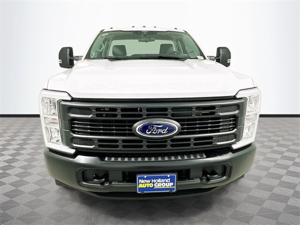 Oxford White 2026 Ford F-350SD XL RWD 6.8L V8 10-Speed Automatic 18" Argent Painted Steel Wheels, 4 Speakers, 4-Wheel Disc Brakes, ABS brakes, Air Conditioning, AM/FM radio, AM/FM Stereo w/MP3 Player, Brake assist, Cloth 40/20/40 Split Bench Seat, Compass, Delay-off headlights, Dual front impact airbags, Dual front side impact airbags, Electronic Stability Control, Emergency communication system: SYNC 4 911 Assist, Exterior Parking Camera Rear, Ford Connectivity Package (1-Year Included), Front anti-roll bar, Front Center Armrest w/Storage, Front License Plate Bracket, Front reading lights, Front wheel independent suspension, Fully automatic headlights, GVWR: 10,500 lb Payload Package, HD Vinyl 40/20/40 Split Bench Seat, Heated door mirrors, Illuminated entry, Internet access capable: 5G Modem - Ford Connectivity Package, LED Roof Clearance Lights, Low tire pressure warning, Order Code 610A, Outside temperature display, Overhead airbag, Overhead console, Panic alarm, Passenger cancellable airbag, Passenger vanity mirror, Power door mirrors, Power steering, Power windows, Rear step bumper, Remote keyless entry, Security system, Speed control, Steering wheel mounted audio controls, SYNC 4, Tachometer, Telescoping steering wheel, Tilt steering wheel, Traction control, Trailer Brake Controller, Trip computer, Turn signal indicator mirrors, Variably intermittent wipers.