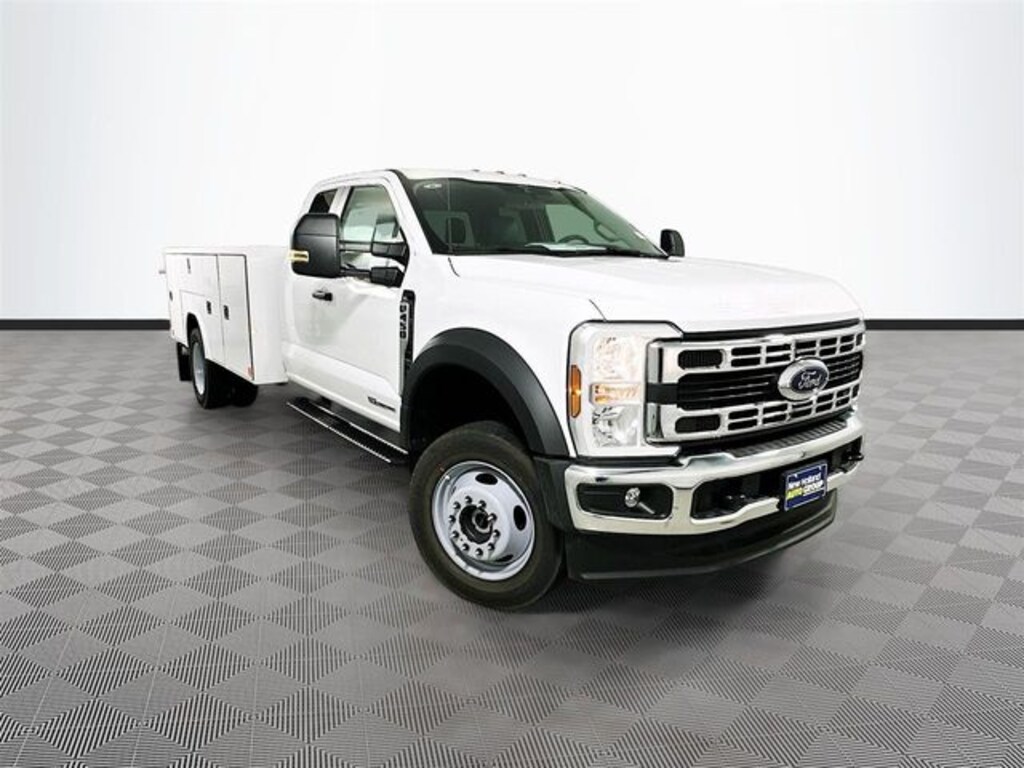 Oxford White 2026 Ford F-450SD XL DRW 4WD Power Stroke 6.7L V8 DI 32V OHV Turbodiesel Super Cab 10-Speed Automatic 4WD, 350 Amp Dual Alternators, 4-Wheel Disc Brakes, 6 Speakers, 6-Ton Hydraulic Jack, ABS brakes, Air Conditioning, AM/FM radio, Brake assist, Center High-Mounted Stop Lamp (CHMSL), Cloth 40/20/40 Split Bench Seat, Compass, Delay-off headlights, Dual front impact airbags, Dual front side impact airbags, Dual rear wheels, Emergency communication system: SYNC 4 911 Assist, Engine Block Heater, Ford Connectivity Package (1-Year Included), Front anti-roll bar, Front Center Armrest w/Storage, Front License Plate Bracket, Front reading lights, Fully automatic headlights, GVWR: 16,500 Lb Payload Package, Heated door mirrors, High Capacity Trailer Tow Package, Illuminated entry, Internet access capable: 5G Modem - Ford Connectivity Package, Low tire pressure warning, Outside temperature display, Overhead airbag, Overhead console, Panic alarm, Passenger cancellable airbag, Passenger vanity mirror, Platform Running Boards, Power door mirrors, Power steering, Power windows, Radio: AM/FM Stereo with MP3 Player, Rear anti-roll bar, Rear View Camera and Prep Kit, Remote keyless entry, Security system, Snow Plow Prep Package, Speed control, Split folding rear seat, Steering wheel mounted audio controls, SYNC 4, Tachometer, Telescoping steering wheel, Tilt steering wheel, Traction control, Trip computer, Turn signal indicator mirrors, Variably intermittent wipers, Wheels: 19.5" x 6" Argent Painted Steel, 11' READING CLASSIC II SERVICE BODY, LATCHMATIC KEYLESS ENTRY, LED COMPARTMENT LIGHTS, BACKUP CAMERA, 4WD.