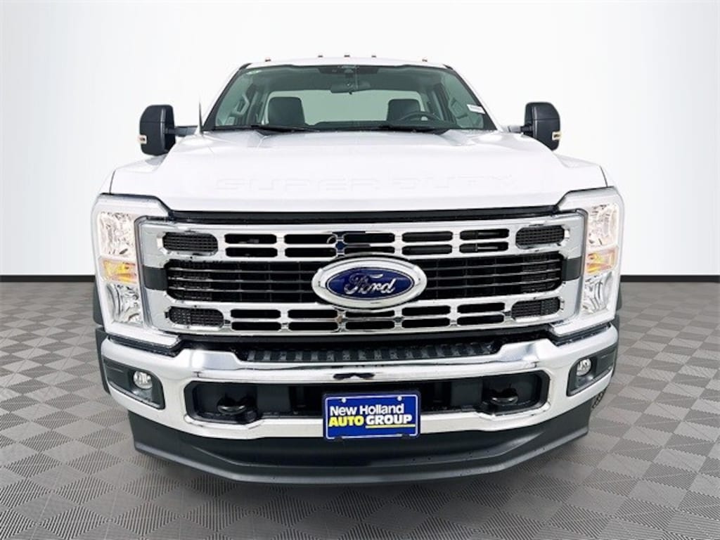 Oxford White 2026 Ford F-550SD XL DRW 4WD 7.3L V8 PFI OHV 16V Federal 335hp 10-Speed Automatic 4WD, 190 Amp Alternator, 4 Speakers, 4-Wheel Disc Brakes, 410 Amp Dual Alternators, 6-Ton Hydraulic Jack, ABS brakes, Air Conditioning, AM/FM radio, AM/FM Stereo w/MP3 Player, Brake assist, Compass, Delay-off headlights, Dual 68 AH/65 AGM Battery, Dual front impact airbags, Dual front side impact airbags, Dual rear wheels, Emergency communication system: SYNC 4 911 Assist, Ford Connectivity Package (1-Year Included), Front anti-roll bar, Front Center Armrest w/Storage, Front License Plate Bracket, Front reading lights, Fully automatic headlights, GVWR: 18,000 lbs Payload Package, GVWR: 19,550 lb Payload Plus Upgrade Package 2, HD Vinyl 40/20/40 Split Bench Seat, Heated door mirrors, Illuminated entry, Internet access capable: 5G Modem - Ford Connectivity Package, Low tire pressure warning, Order Code 660A, Outside temperature display, Overhead airbag, Overhead console, Panic alarm, Passenger cancellable airbag, Passenger vanity mirror, Platform Running Boards, Power door mirrors, Power steering, Power windows, Pro Power Onboard - 400W Outlet, Rear anti-roll bar, Rear View Camera & Prep Kit, Remote keyless entry, Security system, Snow Plow Prep Package, Speed control, Steering wheel mounted audio controls, SYNC 4 Communication & Entertainment System, Tachometer, Telescoping steering wheel, Tilt steering wheel, Traction control, Trailer Brake Controller, Trip computer, Turn signal indicator mirrors, Variably intermittent wipers, Wheels: 19.5" x 6" Argent Painted Steel, XL Chrome Package, 4WD.