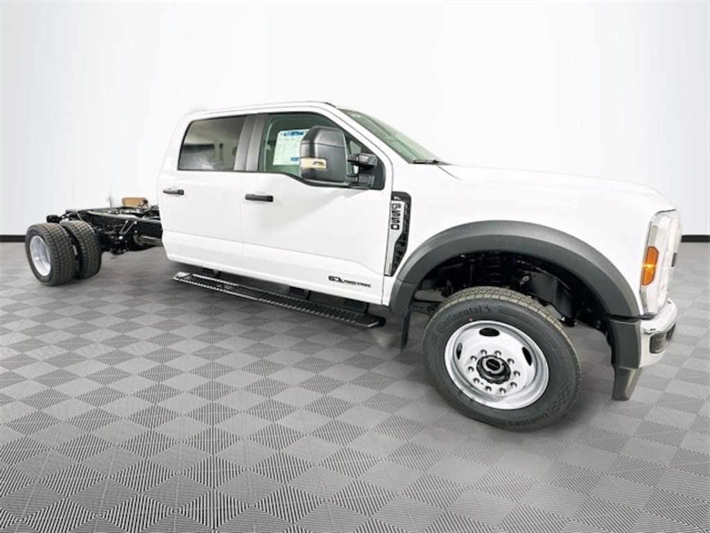 Oxford White 2026 Ford F-550SD XL DRW 4WD Power Stroke 6.7L V8 DI 32V OHV Turbodiesel 4D Crew Cab 10-Speed Automatic 4WD, 190 Amp Alternator, 350 Amp Dual Alternators, 4-Wheel Disc Brakes, 6 Speakers, 6-Ton Hydraulic Jack, ABS brakes, Air Conditioning, AM/FM radio, Brake assist, Bright Grille, Chrome Front Bumper, Compass, Delay-off headlights, Dual 68 AH/65 AGM Battery, Dual front impact airbags, Dual front side impact airbags, Dual rear wheels, Emergency communication system: SYNC 4 911 Assist, Engine Block Heater, Ford Connectivity Package (1-Year Included), Front anti-roll bar, Front Center Armrest w/Storage, Front License Plate Bracket, Front reading lights, Fully automatic headlights, GVWR: 18,000 lbs Payload Package, GVWR: 19,550 lb Payload Plus Upgrade Package 2, Halogen Fog Lamps, HD Vinyl 40/20/40 Split Bench Seat, Heated door mirrors, High Capacity Trailer Tow Package, Illuminated entry, Internet access capable: 5G Modem - Ford Connectivity Package, Low tire pressure warning, Order Code 660A, Outside temperature display, Overhead airbag, Overhead console, Panic alarm, Passenger vanity mirror, Platform Running Boards, Power door mirrors, Power steering, Power windows, Privacy Glass w/Power Sliding Rear Glass, Pro Power Onboard - 400W Outlet, Rear anti-roll bar, Rear reading lights, Rear View Camera & Prep Kit, Rear Window Defroster, Remote keyless entry, Remote Start, Security system, Snow Plow Prep Package, Speed control, Split folding rear seat, Steering wheel mounted audio controls, SYNC 4 Communication & Entertainment System, Tachometer, Telescoping steering wheel, Tilt steering wheel, Traction control, Trailer Brake Controller, Trip computer, Turn signal indicator mirrors, Variably intermittent wipers, Wheels: 19.5" x 6" Argent Painted Steel, XL Chrome Package, 4WD.