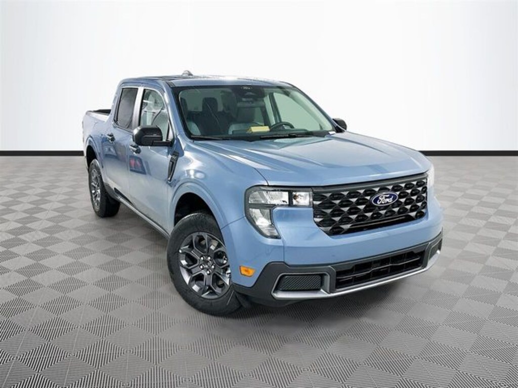 Azure 2026 Ford Maverick XLT AWD 2.5L I-4 Hybrid 4D Crew Cab CVT 2.5L I-4 Hybrid, 2.91 Axle Ratio, 4-Wheel Disc Brakes, 6 Speakers, ABS brakes, Air Conditioning, Alloy wheels, AM/FM radio: SiriusXM with 360L, Apple CarPlay/Android Auto, Auto High Beams, Auto High-beam Headlights, Automatic temperature control, Brake assist, Bumpers: body-color, Compass, Delay-off headlights, Driver door bin, Driver vanity mirror, Dual front impact airbags, Dual front side impact airbags, Electronic Stability Control, Emergency communication system: SYNC 4 911 Assist, Exterior Parking Camera Rear, Ford Connectivity Package (1-Year Included), Four wheel independent suspension, Front anti-roll bar, Front Bucket Seats, Front Center Armrest, Front reading lights, Fully automatic headlights, Illuminated entry, Internet access capable: 5G Modem - Ford Connectivity Package, Intersection Assist, Knee airbag, Lane-Keeping System, Low tire pressure warning, Occupant sensing airbag, Outside temperature display, Overhead airbag, Overhead console, Panic alarm, Passenger door bin, Passenger vanity mirror, Power door mirrors, Power steering, Power windows, Pre-Collision Assist with Automatic Emergency Braking, Radio data system, Radio: AM/FM Stereo with 6 Speakers, Rear anti-roll bar, Rear seat center armrest, Rear step bumper, Rear-View Camera, Remote keyless entry, Security system, SiriusXM with 360L, Speed control, Speed-sensing steering, Steering wheel mounted audio controls, SYNC 4 with Enhanced Voice Recognition, Telescoping steering wheel, Tilt steering wheel, Traction control, Trip computer, Unique Cloth Front Bucket Seats, Wheels: 17" Carbonized Gray Painted Aluminum, 2.5L I-4 Hybrid.