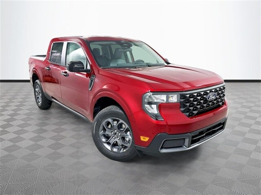 Ruby Red 2026 Ford Maverick XLT AWD 2.5L I-4 Hybrid 4D Crew Cab CVT 2.5L I-4 Hybrid, 2.91 Axle Ratio, 4-Wheel Disc Brakes, 6 Speakers, ABS brakes, Air Conditioning, Alloy wheels, AM/FM radio: SiriusXM with 360L, Apple CarPlay/Android Auto, Auto High Beams, Auto High-beam Headlights, Automatic temperature control, Bed Tie Down Locking Rails with 2 Locking Brackets, Brake assist, Bumpers: body-color, Compass, Delay-off headlights, Driver door bin, Driver vanity mirror, Dual front impact airbags, Dual front side impact airbags, Electronic Stability Control, Emergency communication system: SYNC 4 911 Assist, Equipment Group 301A, Exterior Parking Camera Rear, Ford Connectivity Package (1-Year Included), Four wheel independent suspension, Front and Rear Floor Liners Without Carpet Mats, Front anti-roll bar, Front Bucket Seats, Front Center Armrest, Front reading lights, Fully automatic headlights, Heated Mirror with Painted Black Skull Caps, Heated Seats, Illuminated entry, Internet access capable: 5G Modem - Ford Connectivity Package, Intersection Assist, Keyless-Entry Keypad (Wireless) - MIC, Knee airbag, Lane-Keeping System, LED Box Lighting, Low tire pressure warning, Occupant sensing airbag, Outside temperature display, Overhead airbag, Overhead console, Panic alarm, Passenger door bin, Passenger vanity mirror, Power door mirrors, Power steering, Power windows, Pre-Collision Assist with Automatic Emergency Braking, Pro Power Onboard - 400W, Radio data system, Radio: AM/FM Stereo with 6 Speakers, Rear anti-roll bar, Rear seat center armrest, Rear step bumper, Rear-View Camera, Remote keyless entry, Remote Start System, Security system, SiriusXM with 360L, SiriusXM with 360L (3-Year Plan), Soft Vinyl Wrapped Heated Steering Wheel, Speed control, Speed-sensing steering, Steering wheel mounted audio controls, SYNC 4 with Enhanced Voice Recognition, Telescoping steering wheel, Tilt steering wheel, Traction control, Trip computer, Unique Cloth Front Bucket Seats, Wheels: 17" Carbonized Gray Painted Aluminum, XLT Luxury Package, 2.5L I-4 Hybrid.