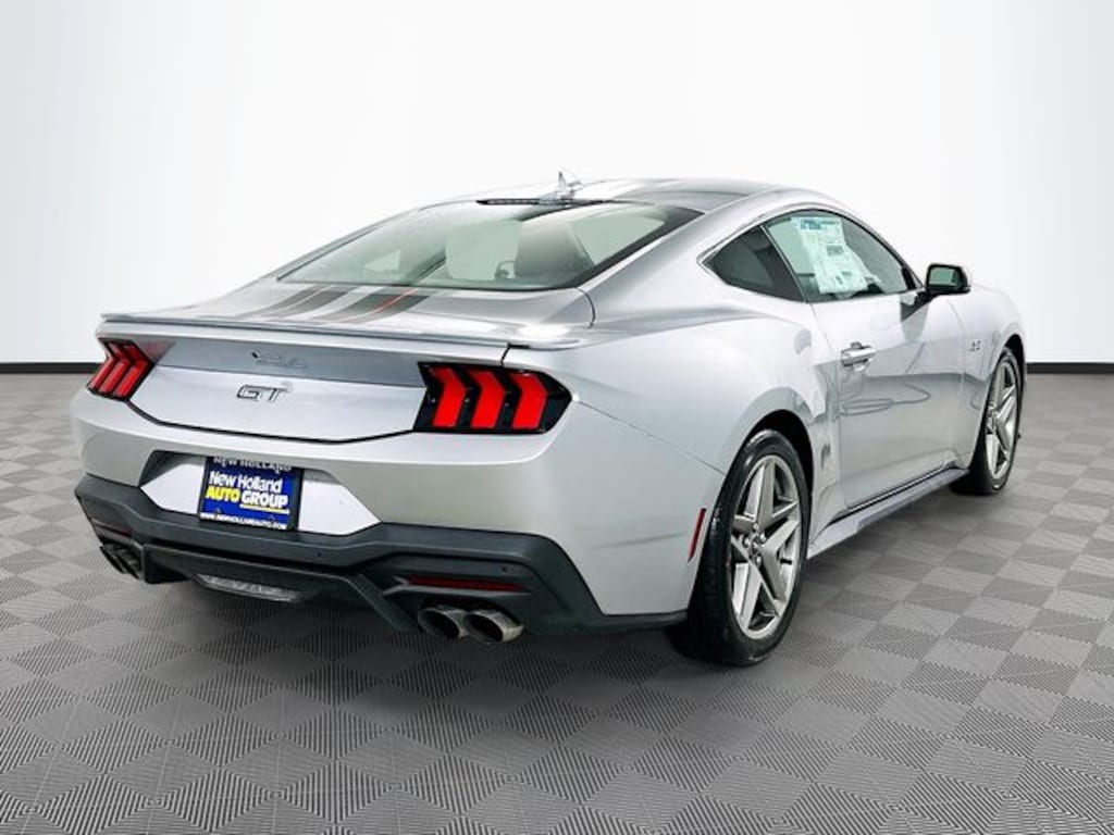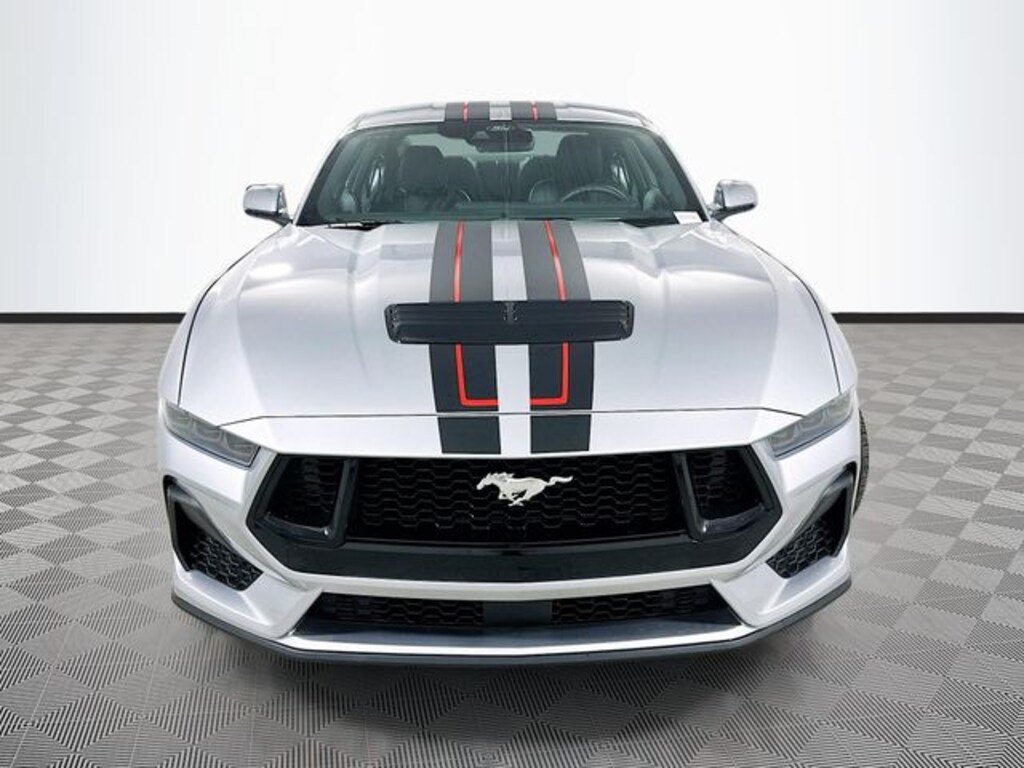 Iconic Silver Metallic 2026 Ford Mustang GT RWD 5.0L V8 Ti-VCT 2D Coupe 4-Wheel Disc Brakes, 6 Speakers, ABS brakes, Air Conditioning, Alloy wheels, AM/FM radio, Auto High-beam Headlights, Automatic temperature control, Brake assist, Bumpers: body-color, Cloth Bucket Seats, Compass, Delay-off headlights, Driver door bin, Driver vanity mirror, Dual front impact airbags, Dual front side impact airbags, Electronic Stability Control, Emergency communication system: 911 Assist, Exterior Parking Camera Rear, Four wheel independent suspension, Front anti-roll bar, Front Bucket Seats, Front Center Armrest, Front dual zone A/C, Front reading lights, Fully automatic headlights, Illuminated entry, Knee airbag, Leather Shift Knob, Leather steering wheel, Low tire pressure warning, Occupant sensing airbag, Outside temperature display, Overhead airbag, Overhead console, Panic alarm, Passenger door bin, Passenger vanity mirror, Power door mirrors, Power steering, Power windows, Radio data system, Rain sensing wipers, Rear anti-roll bar, Rear Parking Sensors, Rear window defroster, Remote keyless entry, Speed control, Speed-sensing steering, Speed-Sensitive Wipers, Split folding rear seat, Sport steering wheel, Steering wheel mounted audio controls, Tachometer, Telescoping steering wheel, Tilt steering wheel, Traction control, Trip computer, Variably intermittent wipers, Voltmeter.