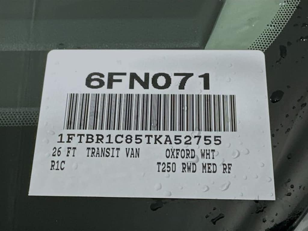 Oxford White 2026 Ford Transit-250 RWD 3.5L V6 Flex Fuel 3D Cargo Van 10-Speed Automatic with Overdrive 3.73 Axle Ratio, 4 Speakers, 4-Wheel Disc Brakes, ABS brakes, Air Conditioning, AM/FM radio, AM/FM Stereo, Apple CarPlay/Android Auto, Auto High-beam Headlights, Brake assist, Dark Palazzo Gray Vinyl Bucket Seats, Delay-off headlights, Driver door bin, Driver's Seat Mounted Armrest, Dual front impact airbags, Dual front side impact airbags, Electronic Stability Control, Emergency communication system: 911 Assist, Exterior Parking Camera Rear, Ford Connectivity Package (1-Year Included), Front anti-roll bar, Front Bucket Seats, Front reading lights, Front wheel independent suspension, Fully automatic headlights, Illuminated entry, Low tire pressure warning, Navigation system: Connected Navigation, Occupant sensing airbag, Overhead airbag, Panic alarm, Passenger cancellable airbag, Passenger door bin, Power door mirrors, Power steering, Power windows, Rain sensing wipers, Remote keyless entry, Speed control, Steering wheel mounted audio controls, SYNC 4, Tachometer, Telescoping steering wheel, Tilt steering wheel, Traction control, Variably intermittent wipers, Vinyl Front Bucket Seats, Wheels: 16" Silver Steel with Black Hubcap.