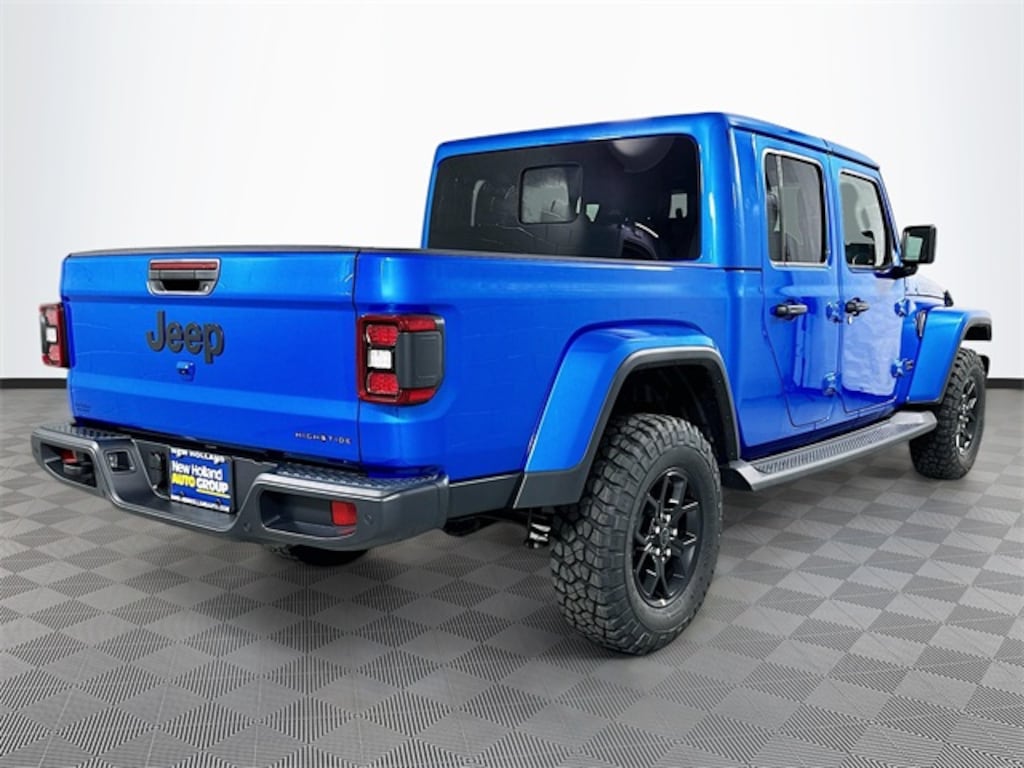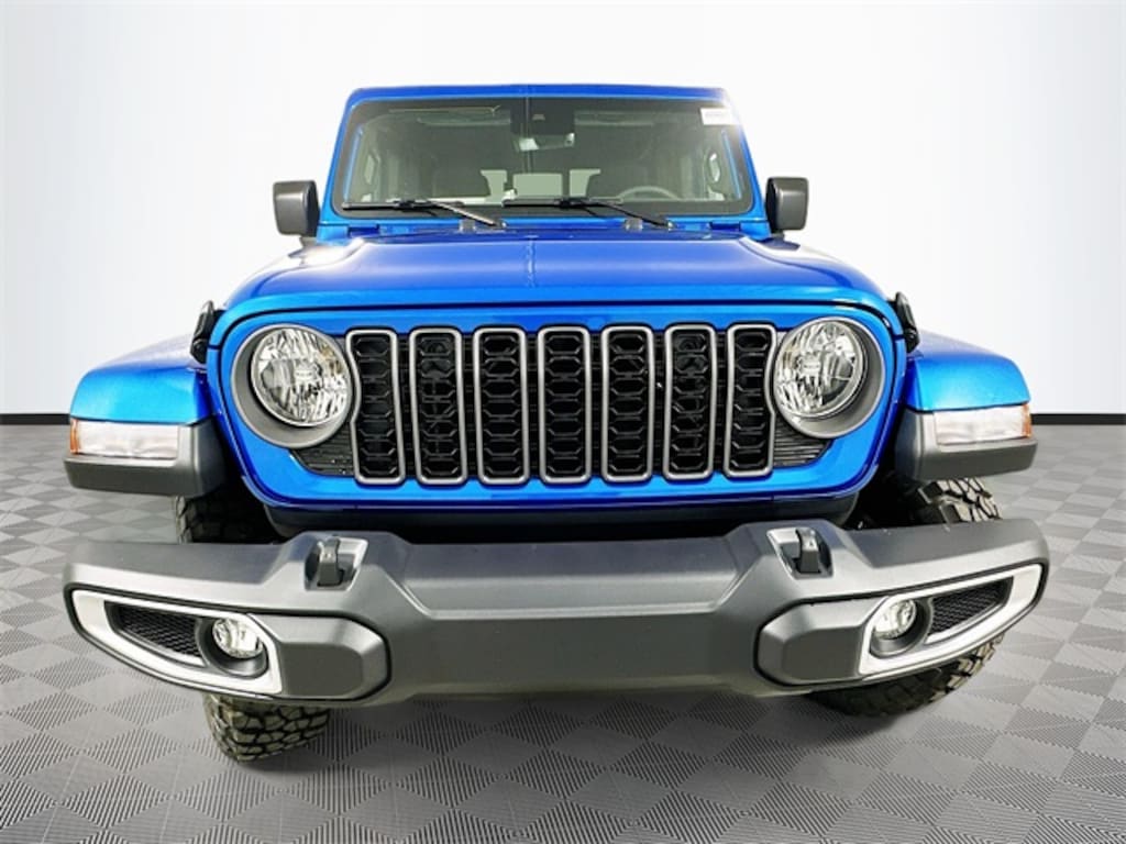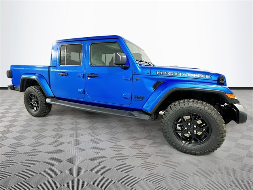 Hydro Blue Pearlcoat 2025 Jeep Gladiator Sport 4WD 3.6L V6 24V VVT 4D Crew Cab 8-Speed Automatic 97 MPH Vehicle Max Speed Calibration, ABS brakes, Advanced Brake Assist, Automatic Headlamps, Body Color 3-Piece Hard Top, Body Color Fender Flares (2-Piece), Compass, Daytime Running Lamp System, Deep Tint Sunscreen Windows, Electronic Stability Control, Freedom Panel Storage Bag, Full Length Floor Console Premium Armrest, Full Speed Forward Collision Warning Plus, Hard Seat Back, High Tide, High Tide Tailgate & Hood Decals, Illuminated entry, Integrated Radar Camera Module (IRCM), Leather Wrapped Park Brake Handle, Leather Wrapped Shift Knob, Low tire pressure warning, ParkView Rear Back-Up Camera, Power 4-Way Driver Lumbar Adjust, Power 4-Way Passenger Lumbar Adjust, Power Adjust 8-Way Driver Seat, Power Adjust 8-Way Front Passenger Seat, Power Heated Mirrors, Premium Door Trim Panel, Premium McKinley Trimmed Seats, Premium Wrapped Steering Wheel, Quick Order Package 24Q High Tide, Rear Armrest w/Cupholder Seat, Rear Sliding Window, Rear Window Defroster, Remote keyless entry, Security Alarm, Sun Visors w/Illuminated Vanity Mirrors, Traction control, Wheels: 17" x 7.5" Painted Black, Willys Suspension.