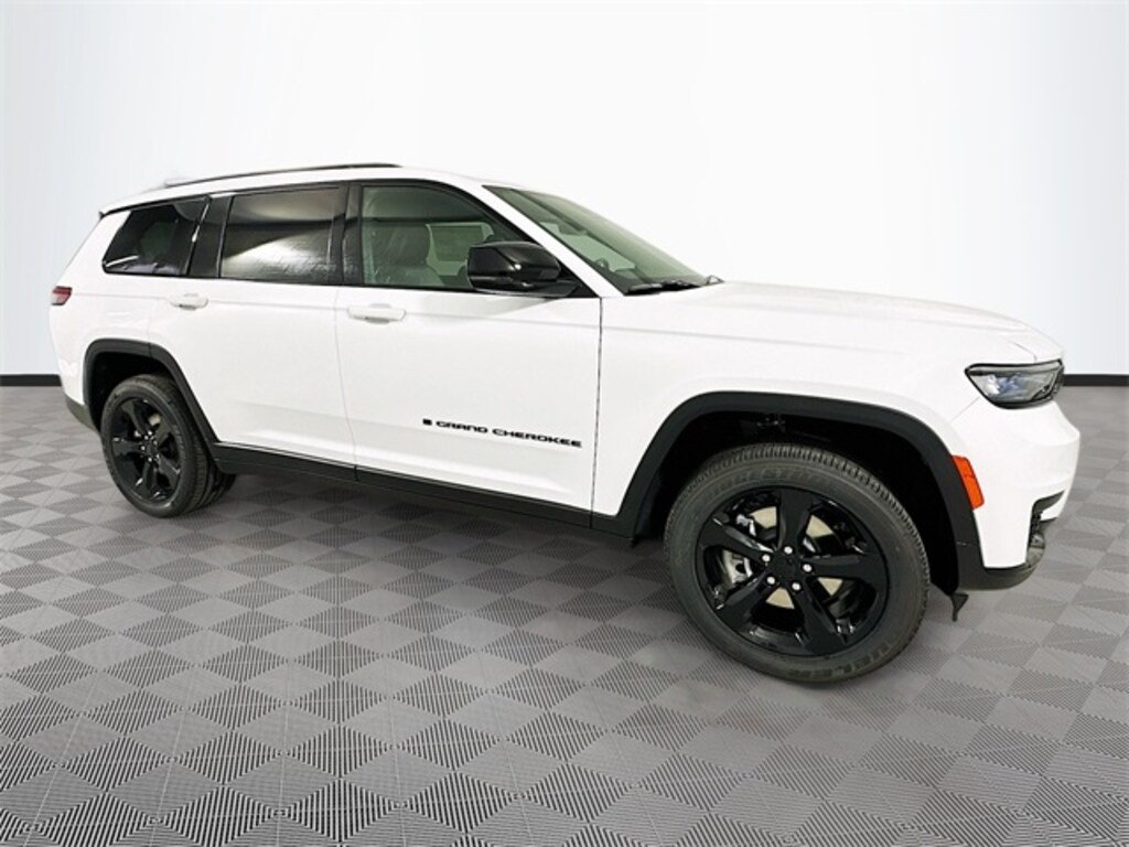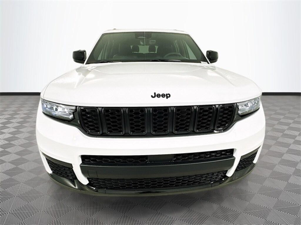 Bright White Clearcoat 2025 Jeep Grand Cherokee L Altitude X 4WD 3.6L V6 24V VVT 4D Sport Utility 8-Speed Automatic 115V Auxiliary Power Outlet, 180 Amp Alternator, 3.45 Rear Axle Ratio, 3rd Row Charge-Only USB Ports, 3rd row seats: split-bench, 4-Wheel Disc Brakes, 6 Speakers, 7 & 4 Pin Wiring Harness, ABS brakes, Air Conditioning, Alloy wheels, Altitude X, AM/FM radio: SiriusXM, Anti-whiplash front head restraints, Automatic Headlamp Leveling System, Automatic temperature control, Black Headliner, Brake assist, Bumpers: body-color, Capri Leatherette/Suede Seats, Class IV Receiver Hitch, Cloth Seats, Compass, Delay-off headlights, Delete Laredo Badge, Driver door bin, Driver vanity mirror, Dual Exhaust Tips, Dual front impact airbags, Dual front side impact airbags, Electronic Stability Control, Emergency communication system, Four wheel independent suspension, Front anti-roll bar, Front Bucket Seats, Front Center Armrest w/Storage, Front dual zone A/C, Front License Plate Bracket, Front reading lights, Fully automatic headlights, Gloss Black Exterior Accents, Heated door mirrors, Heated Front Seats, Heated Steering Wheel, Heavy-Duty Engine Cooling, Illuminated entry, Knee airbag, Low tire pressure warning, Manual Fold Seatbacks, Model Year Tracking, Normal Duty Suspension, Occupant sensing airbag, Outside temperature display, Overhead airbag, Overhead console, Panic alarm, ParkView Rear Back-Up Camera, Passenger door bin, Passenger vanity mirror, Power door mirrors, Power driver seat, Power Liftgate, Power steering, Power Sunroof, Power windows, Quick Order Package 23M Altitude X, Radio data system, Radio: Uconnect 5 w/8.4" Display, Rain Sensitive Windshield Wipers, Rear air conditioning, Rear anti-roll bar, Rear Load Leveling Suspension, Rear reading lights, Rear window defroster, Rear window wiper, Reclining 3rd row seat, Remote keyless entry, Remote Start System, Security system, Selectable Tire Fill Alert, Speed control, Speed-Sensitive Wipers, Split folding rear seat, Spoiler, Steering wheel mounted audio controls, Tachometer, Telescoping steering wheel, Tilt steering wheel, Traction control, Trailer Hitch Zoom, Trailer Tow Package, Trip computer, Variably intermittent wipers, Voltmeter, Wheels: 18" x 8.0" Fully Painted Aluminum, Wheels: 18" x 8.0" Fully Painted Aluminum 1, Wheels: 20" x 8.5" Gloss Black Painted Aluminum, Wireless Charging Pad.