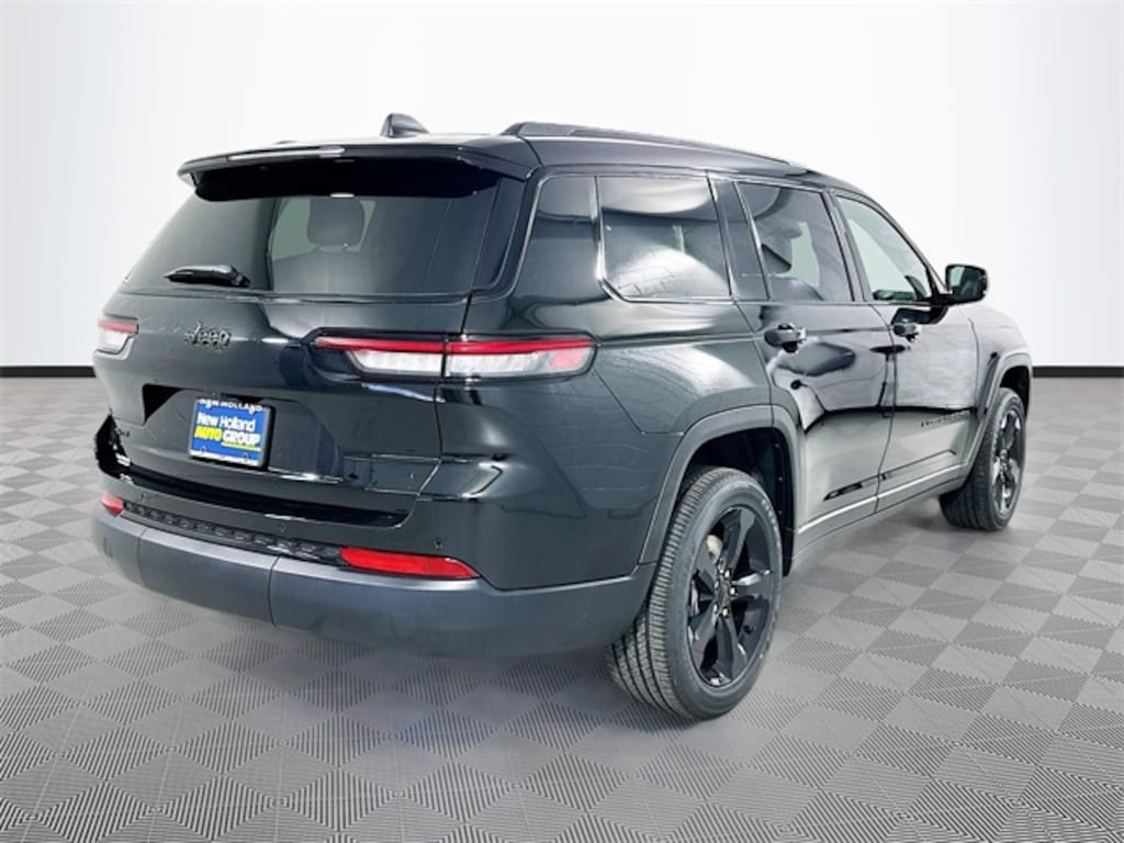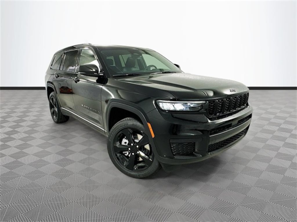 Diamond Black Crystal Pearlcoat 2025 Jeep Grand Cherokee L Altitude X 4WD 3.6L V6 24V VVT 4D Sport Utility 8-Speed Automatic 115V Auxiliary Power Outlet, 180 Amp Alternator, 3.45 Rear Axle Ratio, 3rd Row Charge-Only USB Ports, 3rd row seats: split-bench, 4-Wheel Disc Brakes, 6 Speakers, 7 & 4 Pin Wiring Harness, ABS brakes, Air Conditioning, Alloy wheels, Altitude X, AM/FM radio: SiriusXM, Anti-whiplash front head restraints, Automatic Headlamp Leveling System, Automatic temperature control, Black Headliner, Brake assist, Bumpers: body-color, Capri Leatherette/Suede Seats, Class IV Receiver Hitch, Cloth Seats, Compass, Delay-off headlights, Delete Laredo Badge, Driver door bin, Driver vanity mirror, Dual Exhaust Tips, Dual front impact airbags, Dual front side impact airbags, Electronic Stability Control, Emergency communication system, Four wheel independent suspension, Front anti-roll bar, Front Bucket Seats, Front Center Armrest w/Storage, Front dual zone A/C, Front License Plate Bracket, Front reading lights, Fully automatic headlights, Gloss Black Exterior Accents, Heated door mirrors, Heated Front Seats, Heated Steering Wheel, Heavy-Duty Engine Cooling, Illuminated entry, Knee airbag, Low tire pressure warning, Manual Fold Seatbacks, Model Year Tracking, Normal Duty Suspension, Occupant sensing airbag, Outside temperature display, Overhead airbag, Overhead console, Panic alarm, ParkView Rear Back-Up Camera, Passenger door bin, Passenger vanity mirror, Power door mirrors, Power driver seat, Power Liftgate, Power steering, Power Sunroof, Power windows, Quick Order Package 23M Altitude X, Radio data system, Radio: Uconnect 5 w/8.4" Display, Rain Sensitive Windshield Wipers, Rear air conditioning, Rear anti-roll bar, Rear Load Leveling Suspension, Rear reading lights, Rear window defroster, Rear window wiper, Reclining 3rd row seat, Remote keyless entry, Remote Start System, Security system, Selectable Tire Fill Alert, Speed control, Speed-Sensitive Wipers, Split folding rear seat, Spoiler, Steering wheel mounted audio controls, Tachometer, Telescoping steering wheel, Tilt steering wheel, Traction control, Trailer Hitch Zoom, Trailer Tow Package, Trip computer, Variably intermittent wipers, Voltmeter, Wheels: 18" x 8.0" Fully Painted Aluminum, Wheels: 18" x 8.0" Fully Painted Aluminum 1, Wheels: 20" x 8.5" Gloss Black Painted Aluminum, Wireless Charging Pad.