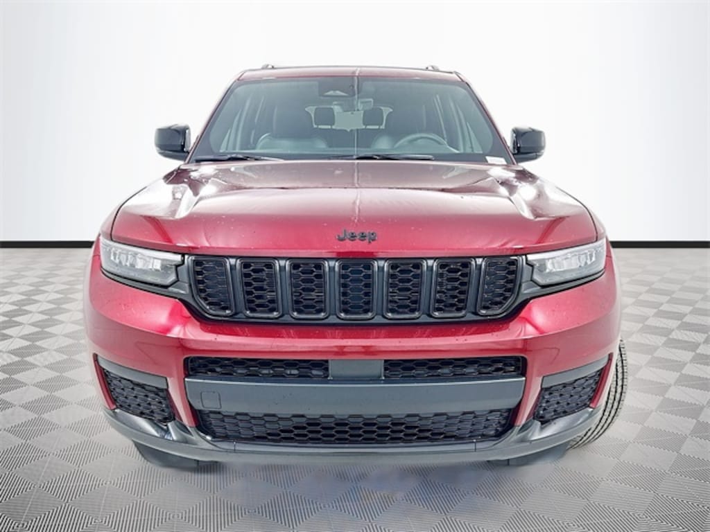 Velvet Red Pearlcoat 2025 Jeep Grand Cherokee L Altitude X 4WD 3.6L V6 24V VVT 4D Sport Utility Automatic 115V Auxiliary Power Outlet, 180 Amp Alternator, 3.45 Rear Axle Ratio, 3rd Row Charge-Only USB Ports, 3rd row seats: split-bench, 4-Wheel Disc Brakes, 6 Speakers, 7 & 4 Pin Wiring Harness, ABS brakes, Air Conditioning, Alloy wheels, Altitude X, AM/FM radio: SiriusXM, Anti-whiplash front head restraints, Automatic Headlamp Leveling System, Automatic temperature control, Black Headliner, Brake assist, Bumpers: body-color, Capri Leatherette/Suede Seats, Class IV Receiver Hitch, Cloth Seats, Compass, Delay-off headlights, Delete Laredo Badge, Driver door bin, Driver vanity mirror, Dual Exhaust Tips, Dual front impact airbags, Dual front side impact airbags, Electronic Stability Control, Emergency communication system, Four wheel independent suspension, Front anti-roll bar, Front Bucket Seats, Front Center Armrest w/Storage, Front dual zone A/C, Front License Plate Bracket, Front reading lights, Fully automatic headlights, Gloss Black Exterior Accents, Heated door mirrors, Heated Front Seats, Heated Steering Wheel, Heavy-Duty Engine Cooling, Illuminated entry, Knee airbag, Low tire pressure warning, Manual Fold Seatbacks, Model Year Tracking, Normal Duty Suspension, Occupant sensing airbag, Outside temperature display, Overhead airbag, Overhead console, Panic alarm, ParkView Rear Back-Up Camera, Passenger door bin, Passenger vanity mirror, Power door mirrors, Power driver seat, Power Liftgate, Power steering, Power Sunroof, Power windows, Quick Order Package 23M Altitude X, Radio data system, Radio: Uconnect 5 w/8.4" Display, Rain Sensitive Windshield Wipers, Rear air conditioning, Rear anti-roll bar, Rear Load Leveling Suspension, Rear reading lights, Rear window defroster, Rear window wiper, Reclining 3rd row seat, Remote keyless entry, Remote Start System, Security system, Selectable Tire Fill Alert, Speed control, Speed-Sensitive Wipers, Split folding rear seat, Spoiler, Steering wheel mounted audio controls, Tachometer, Telescoping steering wheel, Tilt steering wheel, Traction control, Trailer Hitch Zoom, Trailer Tow Package, Trip computer, Variably intermittent wipers, Voltmeter, Wheels: 18" x 8.0" Fully Painted Aluminum, Wheels: 18" x 8.0" Fully Painted Aluminum 1, Wheels: 20" x 8.5" Gloss Black Painted Aluminum, Wireless Charging Pad.