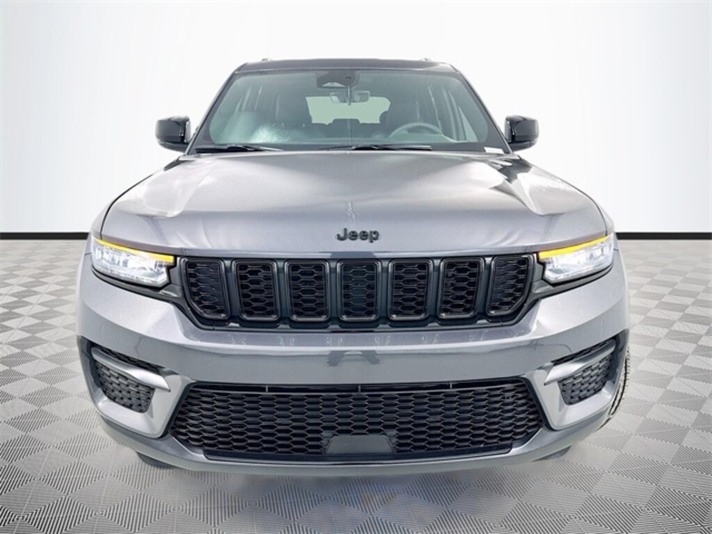 Gray 2025 Jeep Grand Cherokee 4WD 3.6L V6 24V VVT 4D Sport Utility 8-Speed Automatic 4WD, 180 Amp Alternator, 4-Wheel Disc Brakes, 6 Speakers, 7 & 4-Pin Wiring Harness, ABS brakes, Air Conditioning, Alloy wheels, AM/FM radio: SiriusXM, Anti-whiplash front head restraints, Automatic Headlamp Levelling System, Automatic temperature control, Brake assist, Bumpers: body-color, Class IV Receiver Hitch, Cloth Seats, Compass, Delay-off headlights, Driver door bin, Driver vanity mirror, Dual front impact airbags, Dual front side impact airbags, Electronic Stability Control, Emergency communication system, Four wheel independent suspension, Front anti-roll bar, Front Bucket Seats, Front Center Armrest w/Storage, Front dual zone A/C, Front reading lights, Fully automatic headlights, Heated door mirrors, Heavy-Duty Engine Cooling, Illuminated entry, Knee airbag, Low tire pressure warning, Normal Duty Suspension, Occupant sensing airbag, Outside temperature display, Overhead airbag, Overhead console, Panic alarm, ParkView Rear Back-Up Camera, Passenger door bin, Passenger vanity mirror, Power door mirrors, Power driver seat, Power steering, Power windows, Radio data system, Radio: Uconnect 5 w/8.4" Display, Rear anti-roll bar, Rear Load Levelling Suspension, Rear reading lights, Rear window defroster, Rear window wiper, Remote keyless entry, Security system, Speed control, Speed-Sensitive Wipers, Split folding rear seat, Spoiler, Steering wheel mounted audio controls, Tachometer, Telescoping steering wheel, Tilt steering wheel, Traction control, Trailer Hitch Zoom, Trailer Tow Package, Trip computer, Variably intermittent wipers, Voltmeter, Wheels: 17" x 6.5" Fully Painted Aluminum, 4WD.