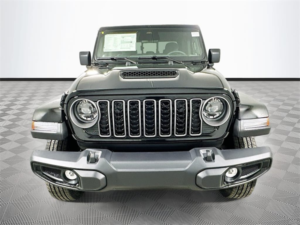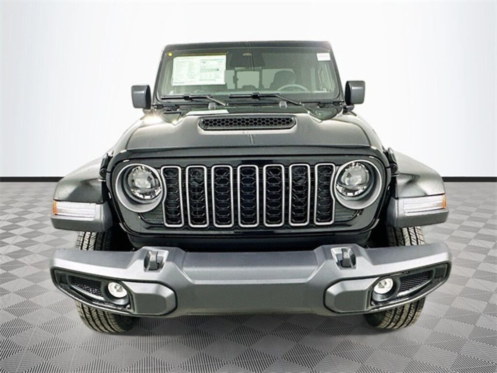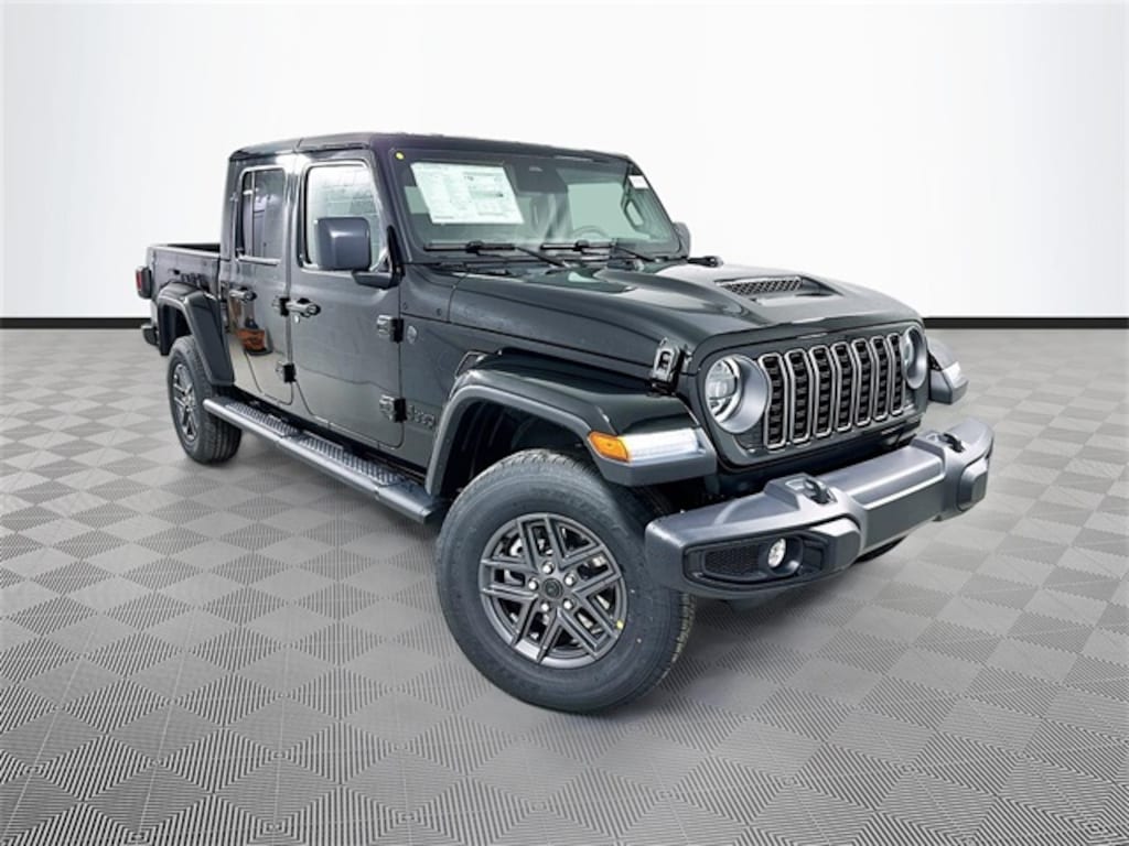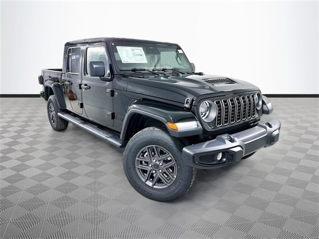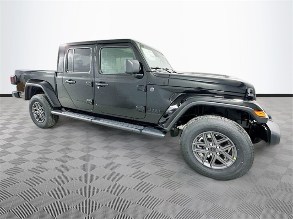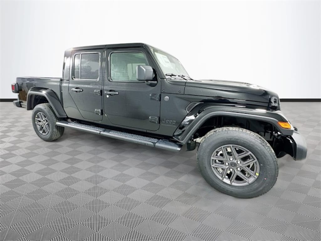 black clearcoat 2026 Jeep Gladiator Sport S 4WD 3.6L V6 24V VVT 4D Crew Cab 8-Speed Automatic 110 Mph Vehicle Max Speed Calibration, 12.3" Touchscreen Display, 2-Piece Body Color Fender Flares, 3.73 Rear Axle Ratio, 4-Wheel Disc Brakes, 4G LTE Wi-Fi Hot Spot, 8 Speakers, ABS brakes, Advanced Brake Assist, Air Conditioning, Air Conditioning with Auto Temp Control, Alexa Built-in, AM/FM radio: SiriusXM with 360L, Apple CarPlay, Apple CarPlay/Android Auto, Automatic Headlamps, Body Color 3-Piece Hard Top, Brake assist, Cluster 7.0" TFT Color Display, Compass, Connectivity - US/Canada, Convenience Group, Corning Gorilla Glass, Dark Sky Appearance Package, Daytime Running Lamp System, Daytime Running Lamps LED Accents, Deep Tint Sunscreen Windows, Delay-off headlights, Driver door bin, Driver vanity mirror, Dual front impact airbags, Dual front side impact airbags, Electronic Stability Control, Emergency/Assistance Call, Freedom Panel Storage Bag, Front anti-roll bar, Front Bucket Seats, Front Center Armrest w/Storage, Front Door Locks 2-Door Passive Entry, Front fog lights, Front LED Fog Lamps, Front reading lights, Full Speed Forward Collision Warning Plus, Google Android Auto, Heated Front Seats, Heated Steering Wheel, Illuminated entry, Integrated roll-over protection, LED Headlamp and Fog Lamp Group, LED Premium Reflector Headlamps, Low tire pressure warning, Manufacturer's Statement of Origin, Mold in Color Bumper with Gloss Black, MOPAR All-Weather Slush Mats, Mopar Black Tubular Side Steps, MOPAR Spray in Bedliner, Normal Duty Plus Suspension, Normal Duty Suspension, Occupant sensing airbag, Outside temperature display, Overhead airbag, Panic alarm, ParkView Rear Back-Up Camera, Passenger door bin, Passenger vanity mirror, Performance Hood, Power Heated Mirrors, Power steering, Power windows, Premium Wrapped Steering Wheel, Quick Order Package 24S Sport S, Radio data system, Radio: Uconnect 5 with 12.3" Display, Rear anti-roll bar, Rear reading lights, Rear Sliding Window, Rear Window Defroster, Remote keyless entry, Remote Start System, Security Alarm, Speed control, Split folding rear seat, Steering wheel mounted audio controls, Sun Visors with Illuminated Vanity Mirrors, Tachometer, Telescoping steering wheel, Tilt steering wheel, Traction control, Trip computer, Universal Garage Door Opener, USB Host Flip, Variably intermittent wipers, Voltmeter, Wheels: 17" x 7.5" Black Steel Styled, Wheels: 17" x 7.5" Gray.