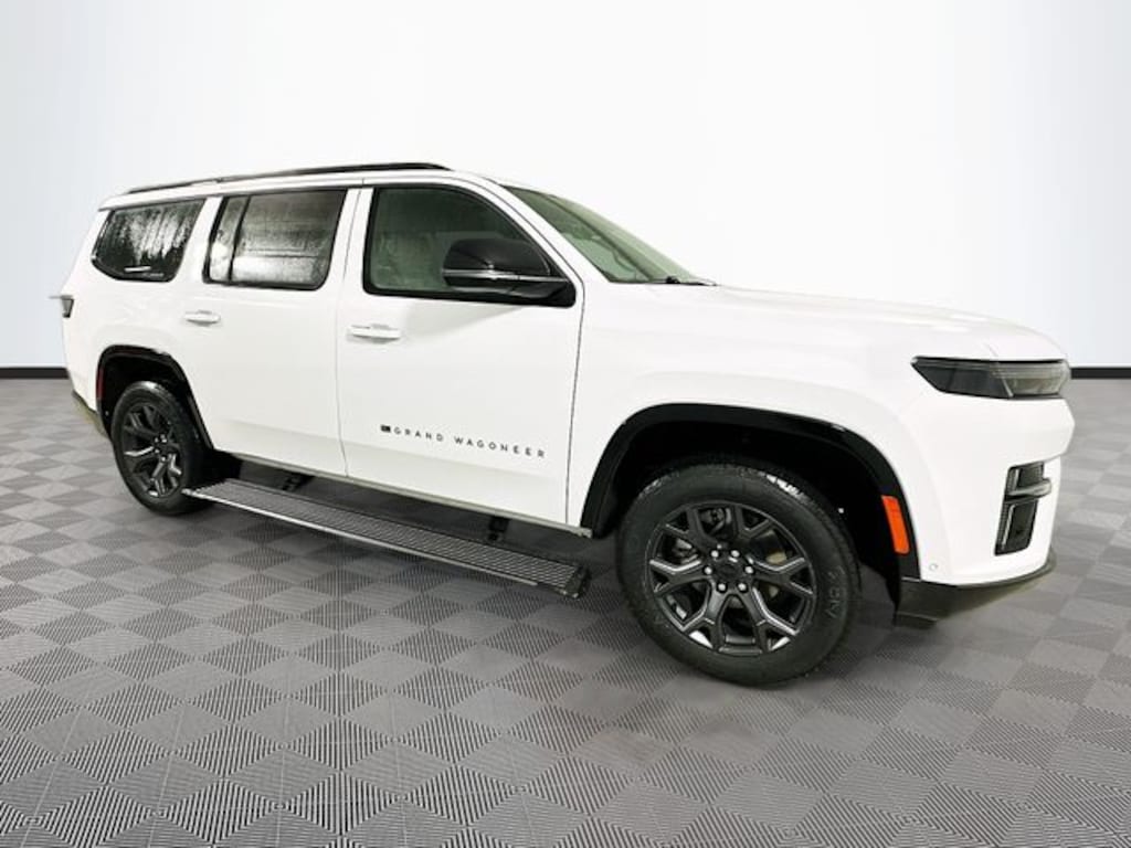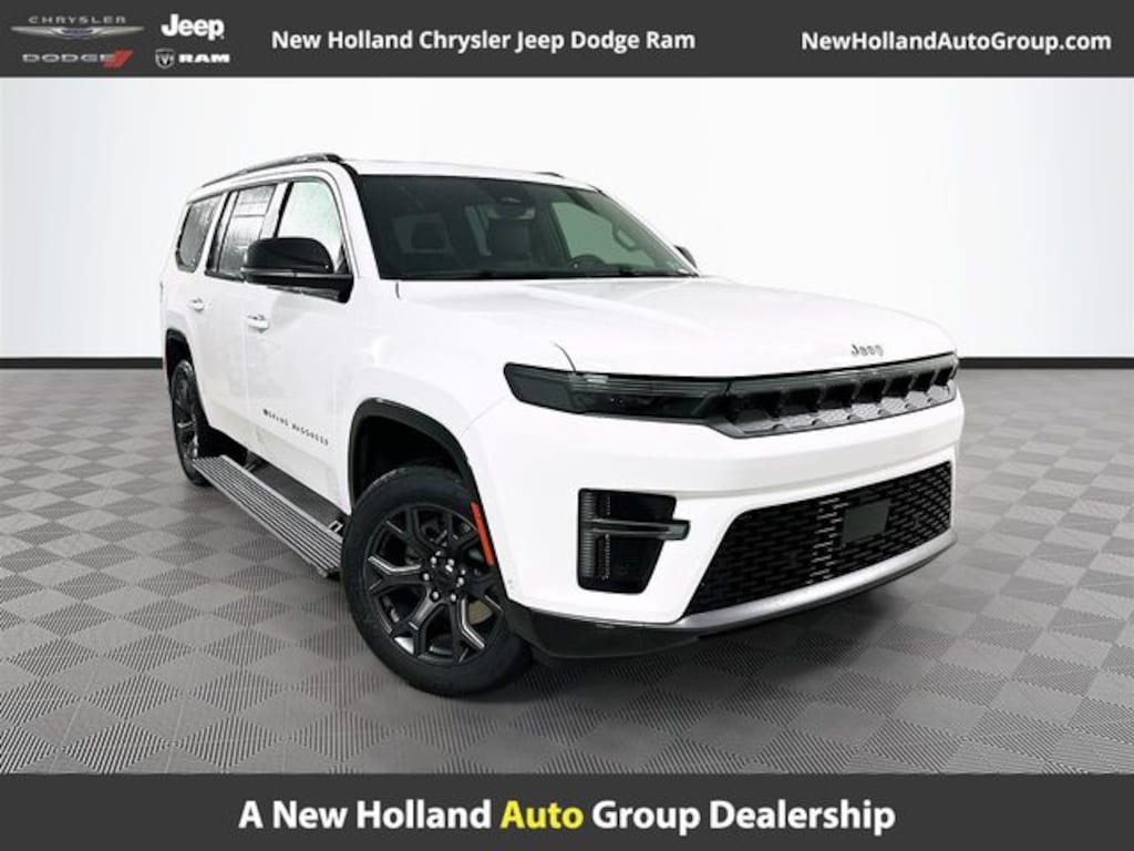 Bright White Clearcoat 2026 Jeep Grand Wagoneer Limited 4WD 3.0L I6 4D Sport Utility 8-Speed Automatic 118 Mph Maximum Speed Calibration, 19 Speaker McIntosh Audio System, 3 Panel Sunroof, 3.55 Rear Axle Ratio, 3rd row seats: bench, 4-Wheel Disc Brakes, 9 Speakers, ABS brakes, Air Conditioning, Alloy wheels, Altitude Appearance Package, AM/FM radio: SiriusXM with 360L, Anti-whiplash front head restraints, Apple CarPlay/Android Auto, Audio memory, Auto Adjust in Reverse Exterior Mirrors, Auto High-beam Headlights, Auto-dimming door mirrors, Auto-Dimming Exterior Driver Mirror, Auto-dimming Rear-View mirror, Auto-leveling suspension, Automatic temperature control, Black Exterior Accents, Brake assist, Bumpers: body-color, Cargo Cover, Compass, Delay-off headlights, Driver door bin, Driver vanity mirror, Driver's Seat Mounted Armrest, Dual front impact airbags, Dual front side impact airbags, Electronic Stability Control, Emergency communication system: Jeep Connect, Exterior Mirrors Approach Lamps, Exterior Mirrors with Memory, Exterior Mirrors with Supplemental Signals, Exterior Parking Camera Rear, Four wheel independent suspension, Front anti-roll bar, Front Bucket Seats, Front Center Armrest w/Storage, Front dual zone A/C, Front fog lights, Front reading lights, Fully automatic headlights, Garage door transmitter, Heated door mirrors, Heated Exterior Mirrors, Heated front seats, Heated rear seats, Heated steering wheel, Illuminated entry, Interior Rear Facing Camera, Knee airbag, Leather Trimmed Bucket Seats, Low tire pressure warning, Luxury Front and Rear Floor Mats, Manufacturer Statement of Origin, Memory seat, Navigation System, Normal Duty Suspension, Occupant sensing airbag, Outside temperature display, Overhead airbag, Overhead console, Panic alarm, Passenger door bin, Passenger seat mounted armrest, Passenger vanity mirror, Power Deployable Running Boards, Power door mirrors, Power driver seat, Power Liftgate, Power passenger seat, Power steering, Power windows, Premium Group II, Quick Order Package 29X Altitude, Radio data system, Radio: Uconnect 5 Nav with 12.0" Display, Rain sensing wipers, Rear air conditioning, Rear anti-roll bar, Rear reading lights, Rear seat center armrest, Rear window defroster, Rear window wiper, Reclining 3rd row seat, Remote keyless entry, Reversible Carpet/Vinyl Cargo Mat, Security system, Speed control, Speed-sensing steering, Speed-Sensitive Wipers, Split folding rear seat, Steering wheel memory, Steering wheel mounted audio controls, Tachometer, Telescoping steering wheel, Tilt steering wheel, Titanium Daylight Opening Upper, Titanium Upper Grille Applique, Traction control, Trip computer, Turn signal indicator mirrors, Variably intermittent wipers, Ventilated front seats, Ventilated rear seats, Voltmeter, Wheels: 20" x 9" Aluminum Painted.