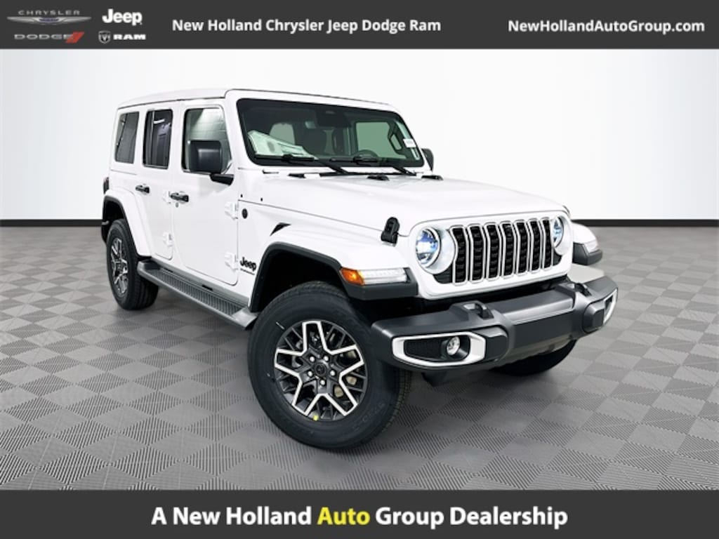 Bright White Clearcoat 2026 Jeep Wrangler Sahara 4WD 3.6L V6 24V VVT 4D Sport Utility 8-Speed Automatic 12.3" Touchscreen Display, 3.45 Overall Top Gear Ratio, 4-Wheel Disc Brakes, 4G LTE Wi-Fi Hot Spot, 7 & 4 Pin Wiring Harness, 8 Speakers, ABS brakes, Air Conditioning, Alloy wheels, Alpine Premium Audio System, AM/FM radio: SiriusXM with 360L, Apple CarPlay, Apple CarPlay/Android Auto, Auto High Beam Headlamp Control, Auto-Dimming Rear-View Mirror, Automatic temperature control, Aux Battery, Auxiliary Switches, Blind Spot & Cross Path Detection, Brake assist, Class II Receiver Hitch, Cloth Low-Back Bucket Seats, Compass, Connected Travel & Traffic Services, Connectivity - US/Canada, Delay-off headlights, Driver door bin, Driver vanity mirror, Dual front impact airbags, Dual front side impact airbags, Electronic Stability Control, Emergency communication system: Jeep Connect, For More Info, Call 800-643-2112, Front anti-roll bar, Front Bucket Seats, Front Center Armrest w/Storage, Front dual zone A/C, Front fog lights, Front License Plate Bracket, Front reading lights, Fully automatic headlights, Google Android Auto, GPS Navigation, Hard Seat Back, HD Radio, Heated door mirrors, Heated front seats, Heated steering wheel, Heavy Duty Suspension w/Gas Shocks, Illuminated entry, Integrated Center Stack Radio, Integrated Off-Road Camera, Integrated roll-over protection, Integrated Voice Command w/Bluetooth, Leather Wrapped Park Brake Handle, Leather Wrapped Shift Knob, Low tire pressure warning, McKinley Trimmed Seats, MOPAR All-Weather Floor Mats, Non-Lock Fuel Cap w/o Discriminator, Occupant sensing airbag, Outside temperature display, Overhead airbag, Panic alarm, ParkSense Rear Park Assist System, ParkView Rear Back-Up Camera, Passenger door bin, Passenger vanity mirror, Power 4-Way Driver Lumbar Adjust, Power 4-Way Passenger Lumbar Adjust, Power Adjust 8-Way Driver Seat, Power Adjust 8-Way Front Passenger Seat, Power door mirrors, Power steering, Power Top Quarter Window Storage Bag, Power windows, Quick Order Package 24G, Radio data system, Radio: Uconnect 5 Nav w/12.3" Display, Radio: Uconnect 5 w/12.3" Display, Rear anti-roll bar, Rear reading lights, Rear Window Defroster, Rear Window Wiper/Washer, Remote keyless entry, Removable Rear Quarter Windows, Sahara Popular Equipment Group, Security system, Side Steps, SiriusXM Radio Service, SiriusXM w/360L, Sky 1-Touch Power Top, Speed control, Split folding rear seat, Steering wheel mounted audio controls, Stop-Start Dual Battery System, Tachometer, Telescoping steering wheel, Tilt steering wheel, Traction control, Trailer Tow & Aux Switch Group, Trip computer, Universal Garage Door Opener, Variably intermittent wipers, Voltmeter, Wheels: 18" x 7.5" Machine/Painted Gray.