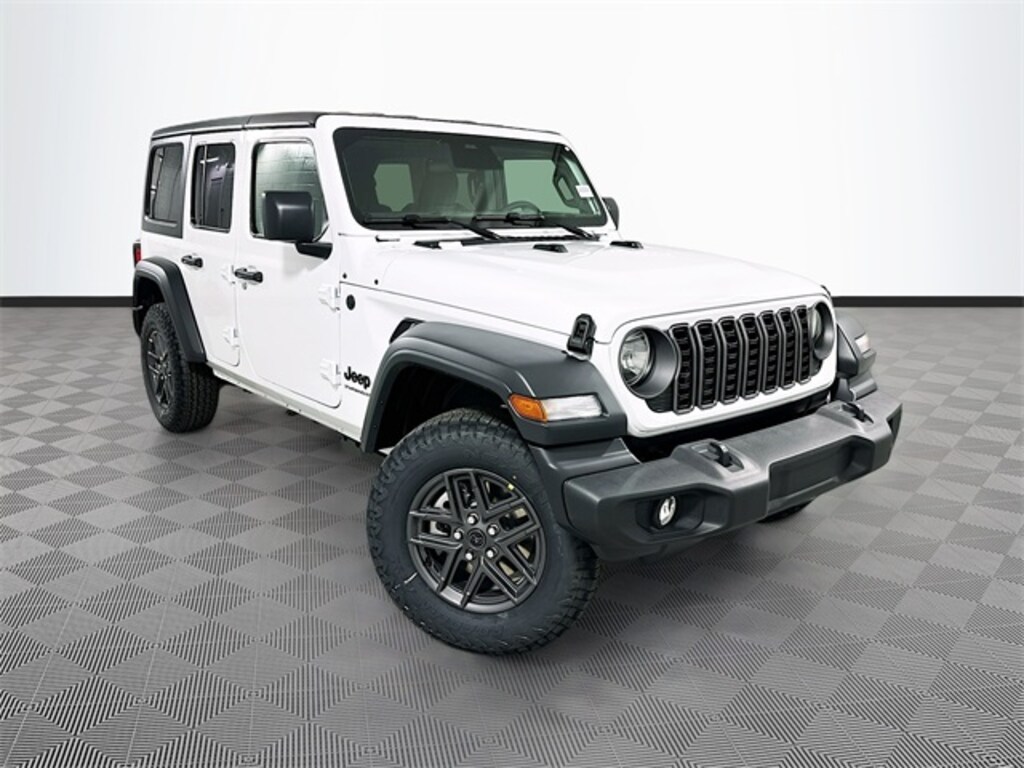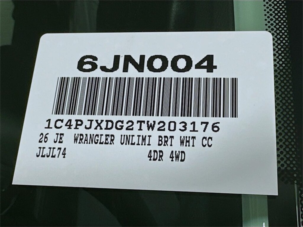 Bright White Clearcoat 2026 Jeep Wrangler Sport S 4WD 3.6L V6 24V VVT 4D Sport Utility 8-Speed Automatic 2-Door Passive Entry, Front Door Locks, 3.45 Overall Top Gear Ratio, 4-Wheel Disc Brakes, 8 Speakers, ABS brakes, Advanced Brake Assist, Air Conditioning, Air Conditioning w/Auto Temperature Control, Air Filtering, AM/FM radio: SiriusXM with 360L, Apple CarPlay/Android Auto, Automatic Headlamps, Aux Battery, Black 3-Piece Hard Top, Brake assist, Cloth Low-Back Bucket Seats, Cluster 7.0" TFT Color Display, Compass, Convenience Group, Corning Gorilla Glass, Deep Tint Sunscreen Windows, Delay-off headlights, Driver door bin, Driver vanity mirror, Dual front impact airbags, Dual front side impact airbags, Electronic Stability Control, Emergency/Assistance Call, Enhanced Adaptive Cruise Control, Freedom Panel Storage Bag, Front anti-roll bar, Front Bucket Seats, Front Center Armrest w/Storage, Front fog lights, Front reading lights, Full Speed Forward Collision Warning Plus, Heated Front Seats, Heated Steering Wheel, Illuminated entry, Integrated roll-over protection, Low tire pressure warning, MOPAR All-Weather Floor Mats, Non-Lock Fuel Cap w/o Discriminator, Normal Duty Suspension, Occupant sensing airbag, Outside temperature display, Overhead airbag, Panic alarm, ParkView Rear Back-Up Camera, Passenger door bin, Passenger vanity mirror, Power Heated Mirrors, Power steering, Power windows, Premium Wrapped Steering Wheel, Quick Order Package 24S Sport S, Radio data system, Radio: Uconnect 5 w/12.3" Display, Rear anti-roll bar, Rear reading lights, Rear Window Defroster, Rear Window Wiper/Washer, Remote keyless entry, Remote Start System, Security Alarm, Speed control, Split folding rear seat, Steering wheel mounted audio controls, Stop-Start Dual Battery System, Sun Visors w/Illuminated Vanity Mirrors, Tachometer, Telescoping steering wheel, Tilt steering wheel, Traction control, Trip computer, Universal Garage Door Opener, Variably intermittent wipers, Wheels: 17" x 7.5" Black Steel Styled, Wheels: 17" x 7.5" Gray.