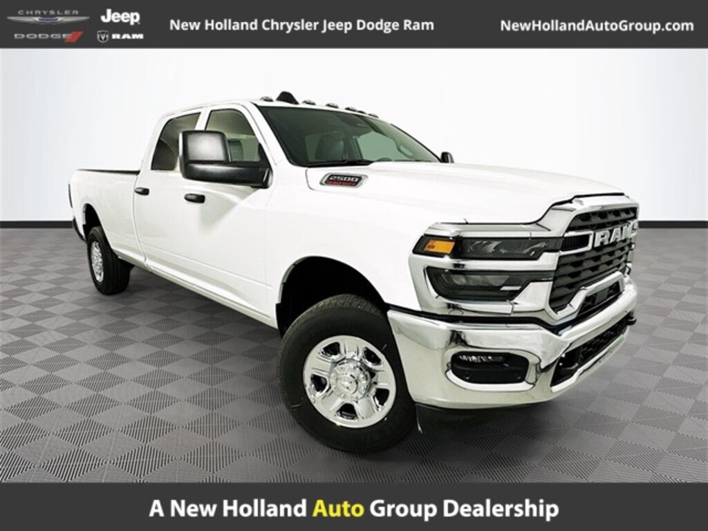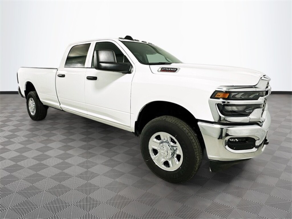 Bright White Clearcoat 2026 Ram 2500 Tradesman 4WD 6.4L V8 4D Crew Cab 8-Speed Automatic 115-Volt Auxiliary Front Power Outlet, 2 Way Rear Headrest Seat, 3.73 Axle Ratio, 4 Way Front Headrests, 4-Wheel Disc Brakes, 40/20/40 Split Bench Seat, 400W Inverter, 4G LTE Wi-Fi Hot Spot, 6 Speakers, ABS brakes, Air Conditioning, AM/FM radio: SiriusXM, Apple CarPlay, Apple CarPlay/Android Auto, Bed Utility Group, Black Exterior Mirrors, Black Wheel Center Hub, Brake assist, Bright Front Bumper, Bright Rear Bumper, Center Hub, Chrome Appearance Group, Chrome Grille Surround, Clearance Lamps, Commercial Features Package, Compass, Connectivity - US/Canada, Dash Pass Thru Wire Circuits, Delay-off headlights, Driver door bin, Dual front impact airbags, Dual front side impact airbags, Electronic Stability Control, Exterior 115V AC Outlet, For Details, Visit DriveUconnect.com, For More Info, Call 800-643-2112, Front anti-roll bar, Front Armrest with Cupholders, Front Center Armrest w/Storage, Front fog lights, Front License Plate Bracket, Front reading lights, Fully automatic headlights, Global Telematics Box Module, Google Android Auto, GPS Antenna Input, Illuminated entry, Instrument Panel Mounted Auxiliary Switches, Integrated Voice Command with Bluetooth, LED Bed Lighting, Low tire pressure warning, Manual Adjust 4-Way Driver Seat, Manual Adjust 4-Way Front Passenger Seat, Manual Folding Exterior Mirrors, Manuarl Telescoping Mirrors, Manufacturer's Statement of Origin, Matte Black Mesh Grille with Chrome, MOPAR Deployable Bed Step, MOPAR Spray in Bedliner, Occupant sensing airbag, Outside temperature display, Overhead airbag, Overhead console, Panic alarm, ParkView Rear Back-Up Camera, Passenger door bin, Passenger vanity mirror, Power steering, Power windows, Quick Order Package 2UA Tradesman, Radio data system, Radio: Uconnect 5 with 8.4" Display, Rear anti-roll bar, Rear Folding Seat, Rear step bumper, Rear window defroster, Remote keyless entry, Remote USB Port - Charge Only, Selectable Tire Fill Alert, SiriusXM Radio Service, Speed control, Storage Tray, Tachometer, Tilt steering wheel, Traction control, Variably intermittent wipers, Voltmeter, Wheels: 17" x 7.5" Black Steel Styled, Wheels: 18" x 8.0" Steel Chrome Clad.