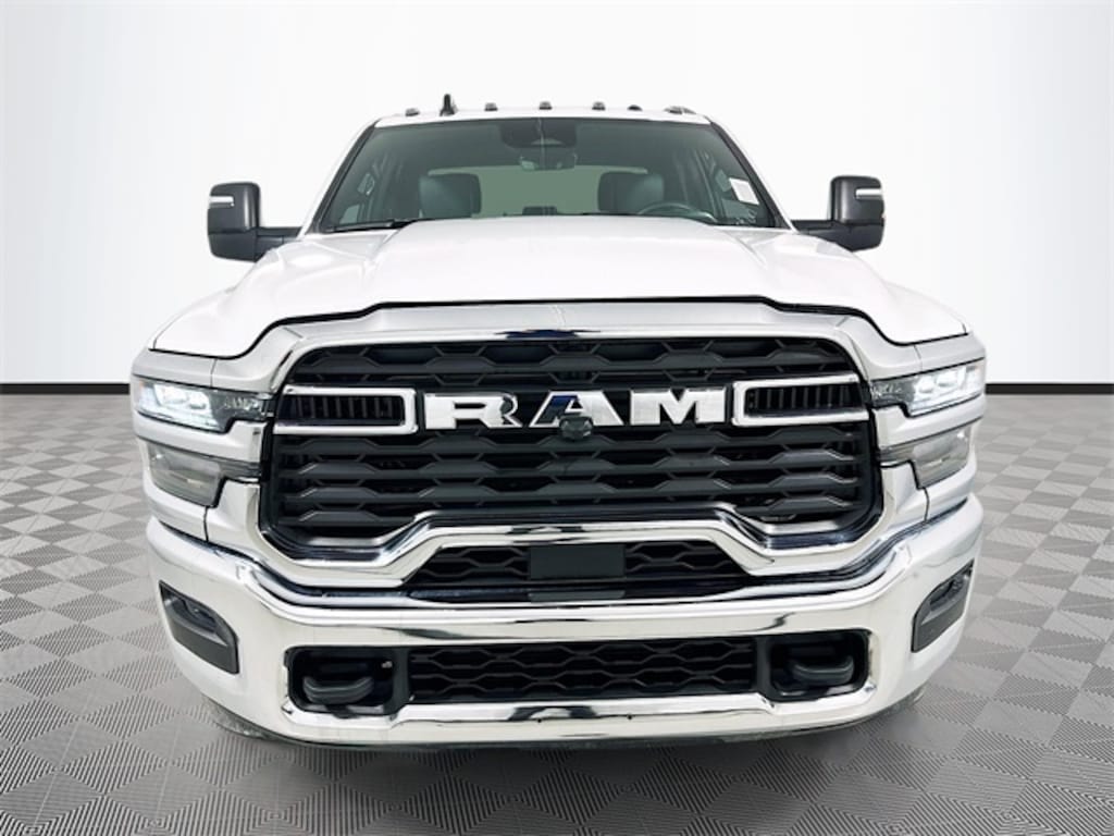 Bright White Clearcoat 2026 Ram 3500 Tradesman 4WD Cummins 6.7L I6 Turbodiesel 4D Crew Cab 8-Speed Automatic 11.50" Dual Wheels Rear Axle, 2 Way Rear Headrest Seat, 4-Wheel Disc Brakes, 40/20/40 Split Bench Seat, 4G LTE Wi-Fi Hot Spot, 6 Speakers, 6000# Front Axle w/Hub Ext, ABS brakes, Air Conditioning, AM/FM radio: SiriusXM, Apple CarPlay, Apple CarPlay/Android Auto, Black Exterior Mirrors, Black Power Heated Fold Telescope Mirrors, Black Tubular Side Steps, Black Wheel Center Hub, Bright Front Bumper, Center Hub, Chrome Appearance Group (DISC), Chrome Grille Surround, Cold Weather Group, Compass, Connectivity - US/Canada, Delay-off headlights, Driver door bin, Dual front impact airbags, Dual Rear Wheels, Electronic Stability Control, Emergency communication system: RAM Connect, Engine Block Heater, Exterior Mirrors Courtesy Lamps, Exterior Mirrors w/Heating Element, Exterior Mirrors w/Supplemental Signals, For Details, Visit DriveUconnect.com, Front anti-roll bar, Front Armrest w/Cupholders, Front Center Armrest w/Storage, Front fog lights, Front License Plate Bracket, Front reading lights, Fully automatic headlights, Global Telematics Box Module (TBM), Google Android Auto, GPS Antenna Input, HD Vinyl 40/20/40 Split Bench Seat, Illuminated entry, Integrated Voice Command w/Bluetooth, Manual Adjust 4-Way Driver Seat, Manual Adjust 4-Way Front Passenger Seat, Manual Folding Exterior Mirrors, Manual Telescoping Mirrors, Manufacturer's Statement of Origin, Matte Black Mesh Grille w/Chrome, Mirror Running Lights, MOPAR Winter Front Grille Cover, Nexen Brand Tires, Occupant sensing airbag, Outside temperature display, Overhead console, Panic alarm, ParkView Rear Back-Up Camera, Passenger door bin, Passenger vanity mirror, Power Adjust Mirrors, Power steering, Power windows, Power-Adjustable Convex Aux Mirrors, Quick Order Package 25A Tradesman, Radio data system, Radio: Uconnect 5 w/8.4" Display, Rear anti-roll bar, Rear Folding Seat, Rear Window Defroster, Remote keyless entry, Remote USB Port - Charge Only, Speed control, Storage Tray, Tachometer, Temperature & Compass Gauge, Tilt steering wheel, Traction control, Tradesman Level 1 Equipment Group, Trailer Brake Control, Trailer Light Check, Variably intermittent wipers, Voltmeter, Wheels: 17" x 6.0" Polished Aluminum, Wheels: 18" x 8.0" Polished Aluminum, Wheels: 18" x 8.0" Steel Painted.