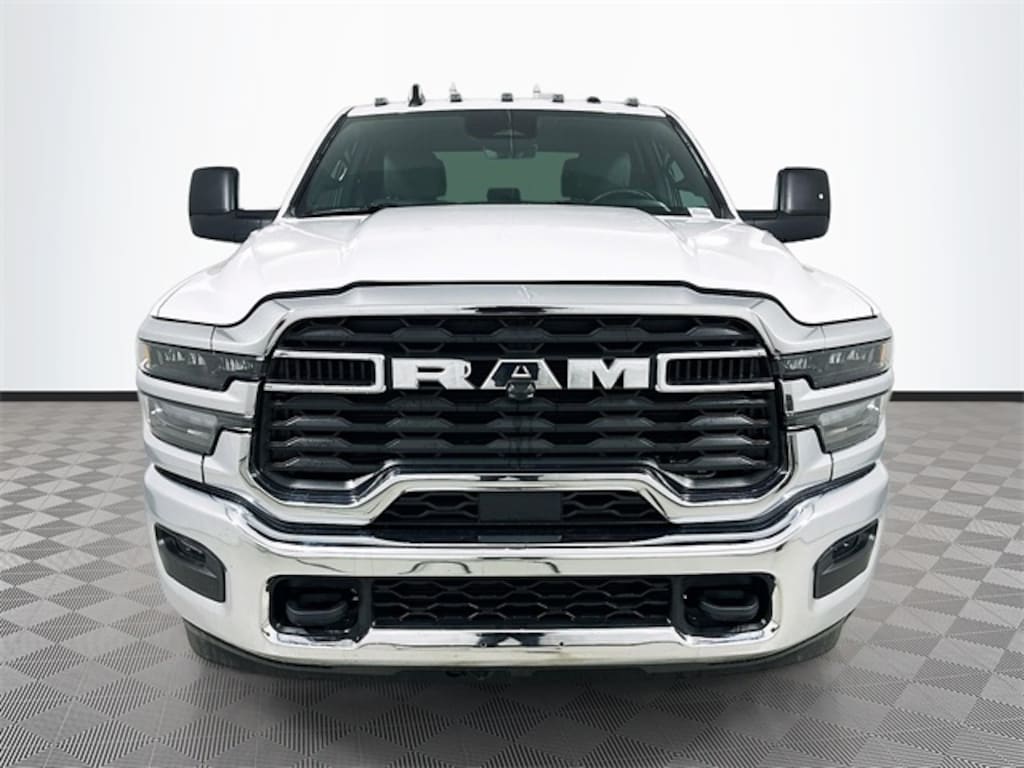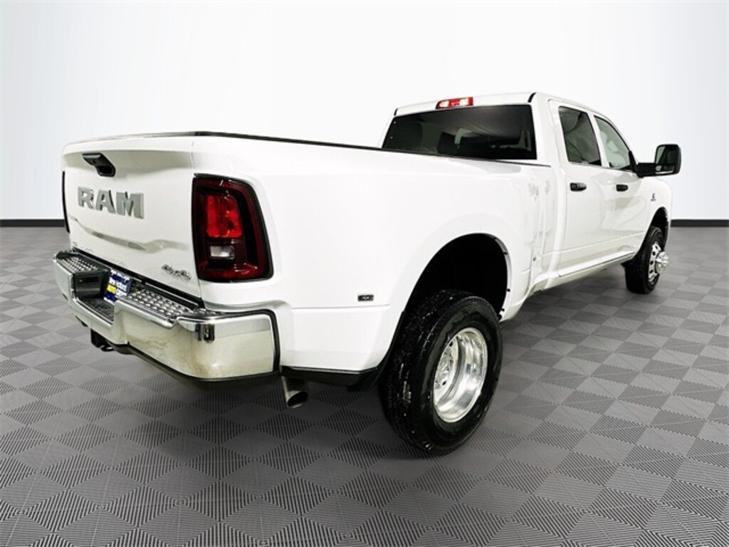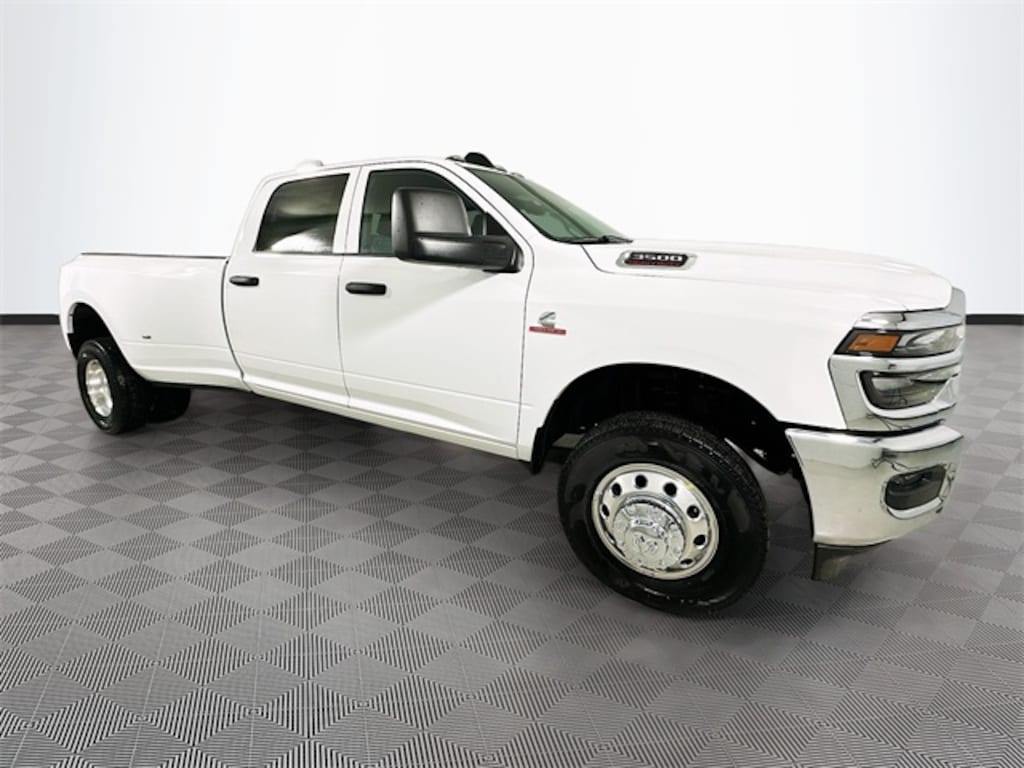 Bright White Clearcoat 2026 Ram 3500 Tradesman 4WD 6.7L I6 4D Crew Cab 8-Speed Automatic 115-Volt Auxiliary Front Power Outlet, 2 Way Rear Headrest Seat, 4 Way Front Headrests, 4-Wheel Disc Brakes, 40/20/40 Split Bench Seat, 400W Inverter, 4G LTE Wi-Fi Hot Spot, 50 Gallon Fuel Tank, 5th Wheel/Gooseneck Towing Prep Group, 6 Speakers, 6000# Front Axle with Hub Extension, ABS brakes, Air Conditioning, AM/FM radio: SiriusXM, Apple CarPlay, Apple CarPlay/Android Auto, Black Exterior Mirrors, Black Wheel Center Hub, Box and Rear Fender Clearance Lamps, Brake assist, Bright Front Bumper, Bright Rear Bumper, Center Hub, Chrome Appearance Group, Chrome Grille Surround, Clearance Lamps, Cold Weather Group, Compass, Connectivity - US/Canada, Dash Pass Thru Wire Circuits, Delay-off headlights, Driver door bin, Dual front impact airbags, Dual front side impact airbags, Dual Rear Wheels, Electronic Stability Control, Engine Block Heater, Exterior 115V AC Outlet, Front anti-roll bar, Front Armrest with Cupholders, Front Center Armrest w/Storage, Front fog lights, Front License Plate Bracket, Front reading lights, Fully automatic headlights, Global Telematics Box Module, Google Android Auto, GPS Antenna Input, Illuminated entry, Instrument Panel Mounted Auxiliary Switches, Integrated Voice Command with Bluetooth, Low tire pressure warning, Manual Adjust 4-Way Driver Seat, Manual Adjust 4-Way Front Passenger Seat, Manual Folding Exterior Mirrors, Manual Telescoping Mirrors, Manufacturer's Statement of Origin, Matte Black Mesh with Chrome Grille, MOPAR Winter Front Grille Cover, Nexen Brand Tires, Occupant sensing airbag, Outside temperature display, Overhead airbag, Overhead console, Panic alarm, ParkView Rear Back-Up Camera, Passenger door bin, Passenger vanity mirror, Power steering, Power windows, Quick Order Package 24A Tradesman, Radio data system, Radio: Uconnect 5 with 8.4" Display, Rear Folding Seat, Rear step bumper, Rear Wheelhouse Liners, Rear window defroster, Remote keyless entry, Remote USB Port - Charge Only, Selectable Tire Fill Alert, SiriusXM Radio Service, Speed control, Storage Tray, Tachometer, Tilt steering wheel, Traction control, Variably intermittent wipers, Voltmeter, Wheels: 17" x 6.0" Polished Aluminum, Wheels: 18" x 8.0" Black Painted Steel.