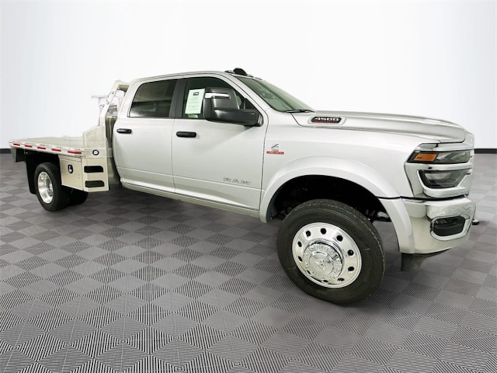 Pse 2026 Ram 4500HD Tradesman 4WD Cummins 6.7L I6 Turbodiesel 4D Crew Cab 8-Speed Automatic 115V Auxiliary Power Outlet, 12.0" Touchscreen Display, 19.5" x 6.0" Steel Wheels, 2 Way Rear Headrest Seat, 4 Way Front Headrests, 4-Wheel Disc Brakes, 4.44 Axle Ratio, 40/20/40 Split Bench Seat, 400W Inverter, 4G LTE Wi-Fi Hot Spot, 6 Speakers, ABS brakes, Acoustic Front Door Glass, Air Conditioning, AM/FM radio: SiriusXM, Apple CarPlay, Apple CarPlay/Android Auto, Big Horn Level 1 Equipment Group, Black Exterior Mirrors, Black-Out Tape, Body Color Fender Flares, Body Insulation, Bright Front Bumper, Center Hub, Chrome Grille Surround, Cloth 40/20/40 Bench Seat, Cluster 7.0" TFT Color Display, Cold Weather Group, Compass, Connectivity - US/Canada, Courtesy Lamps, Delay-off headlights, Digital Rearview Mirror, Disassociated Touchscreen Display, Driver door bin, Dual front impact airbags, Dual Glove Boxes, Dual rear wheels, Electronic Stability Control, Emergency communication system: RAM Connect, Engine Block Heater, Exterior Mirrors Courtesy Lamps, For Details, Visit DriveUconnect.com, For More Info, Call 800-643-2112, Front anti-roll bar, Front Center Armrest w/Storage, Front fog lights, Front License Plate Bracket, Front reading lights, Fully automatic headlights, Glove Box Lamp, Google Android Auto, GPS Antenna Input, GPS Navigation, HD Radio, Heavy Duty Front Suspension Group, Heavy Duty Snow Plow Prep Group, Illuminated entry, Locking Lower Glove Box, Luxury Steering Wheel, Manual Adjust 4-Way Driver Seat, Manual Adjust 4-Way Front Passenger Seat, Manual Folding Exterior Mirrors, Manufacturer's Statement of Origin, Mirror Power Heat Fold Telescope Black, Mirror Running Lights, MOPAR Winter Front Grille Cover, Occupant sensing airbag, Off-Road Info Pages, Outside temperature display, Overhead console, Panic alarm, ParkView Rear Back Up Camera, Passenger door bin, Passenger vanity mirror, Power Adjust Mirrors, Power steering, Power Take-Off Right/Left, Power windows, Power-Adjustable Convex Aux Mirrors, Quick Order Package 25Z Big Horn, Radio data system, RAM Door Badges, Rear anti-roll bar, Rear Folding Seat, Rear Power Sliding Window, Rear Window Defroster, Remote keyless entry, Remote Start System, Remote USB Port - Charge Only, Satin Chrome Key Fob, SiriusXM Radio Service, Speed control, Steering Wheel Mounted Audio Controls, Storage Tray, Tachometer, Tilt steering wheel, Tinted Acoustic Windshield Glass, Traction control, Trailer Brake Control, Trailer Light Check, Trailer Tow Pages, Traveler/Mini Trip Computer, Upgraded Rear HD Stabilizer Bar, Variably intermittent wipers, Voltmeter, Wheels: 19.5" x 6.0" Black Painted Steel, Wheels: 19.5" x 6.0" Forged Aluminum Polished, 9' MARTIN ALUMINUM FLATBED, CURBSIDE TOOLBOX, ROADSIDE TOOLBOX, REAR HITCH PLATE W/2 1/2" RECEIVER, 7 PIN RV PLUG, LED LIGHTING, OEM BACKUP CAMERA, 4WD.