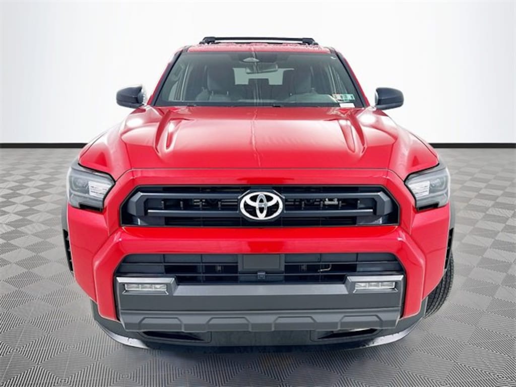 Supersonic Red 2025 Toyota 4Runner SR5 4WD 2.4L 4-Cylinder 4D Sport Utility 8-Speed Automatic 4WD, 20 Cloth, 4-Wheel Disc Brakes, 4Runner All Weather Cargo Tray (TMS), 4Runner All Weather Floor Mats (TMS), 8 Speakers, ABS brakes, Air Conditioning, Alloy wheels, AM/FM radio: SiriusXM, Anti-whiplash front head restraints, Apple CarPlay/Android Auto, Auto High-beam Headlights, Automatic temperature control, Badge Inserts, Rear TOYOTA Reflect Black(TMS), Brake assist, Bumpers: body-color, Driver door bin, Driver vanity mirror, Dual front impact airbags, Dual front side impact airbags, Electronic Stability Control, Emergency communication system: Safety Connect (1-year trial), Exterior Parking Camera Rear, Fabric Seat Trim (FA), Front & Rear Molded Black 4Runner Mudguards (TMS), Front anti-roll bar, Front Bucket Seats, Front Center Armrest, Front Color Keyed Door Edge Guards (TMS), Front dual zone A/C, Front fog lights, Front reading lights, Front wheel independent suspension, Gloss Black Roof Rail Cross Bars (TMS), Heated door mirrors, Illuminated entry, Knee airbag, Leather Shift Knob, Leather steering wheel, Low tire pressure warning, Occupant sensing airbag, Outside temperature display, Overhead airbag, Overhead console, Panic alarm, Passenger door bin, Passenger vanity mirror, Power door mirrors, Power steering, Power windows, Radio: 8 Audio, Rear anti-roll bar, Rear seat center armrest, Rear side impact airbag, Rear window defroster, Rear window wiper, Remote keyless entry, Security system, Speed control, Speed-sensing steering, Split folding rear seat, Spoiler, Steering wheel mounted audio controls, Tachometer, Telescoping steering wheel, Third Row Seating - Fabric, Tilt steering wheel, Traction control, Trip computer, Variably intermittent wipers, Wheels: 17 Dark-Gray Painted Alloy, 4WD, 20 Cloth.